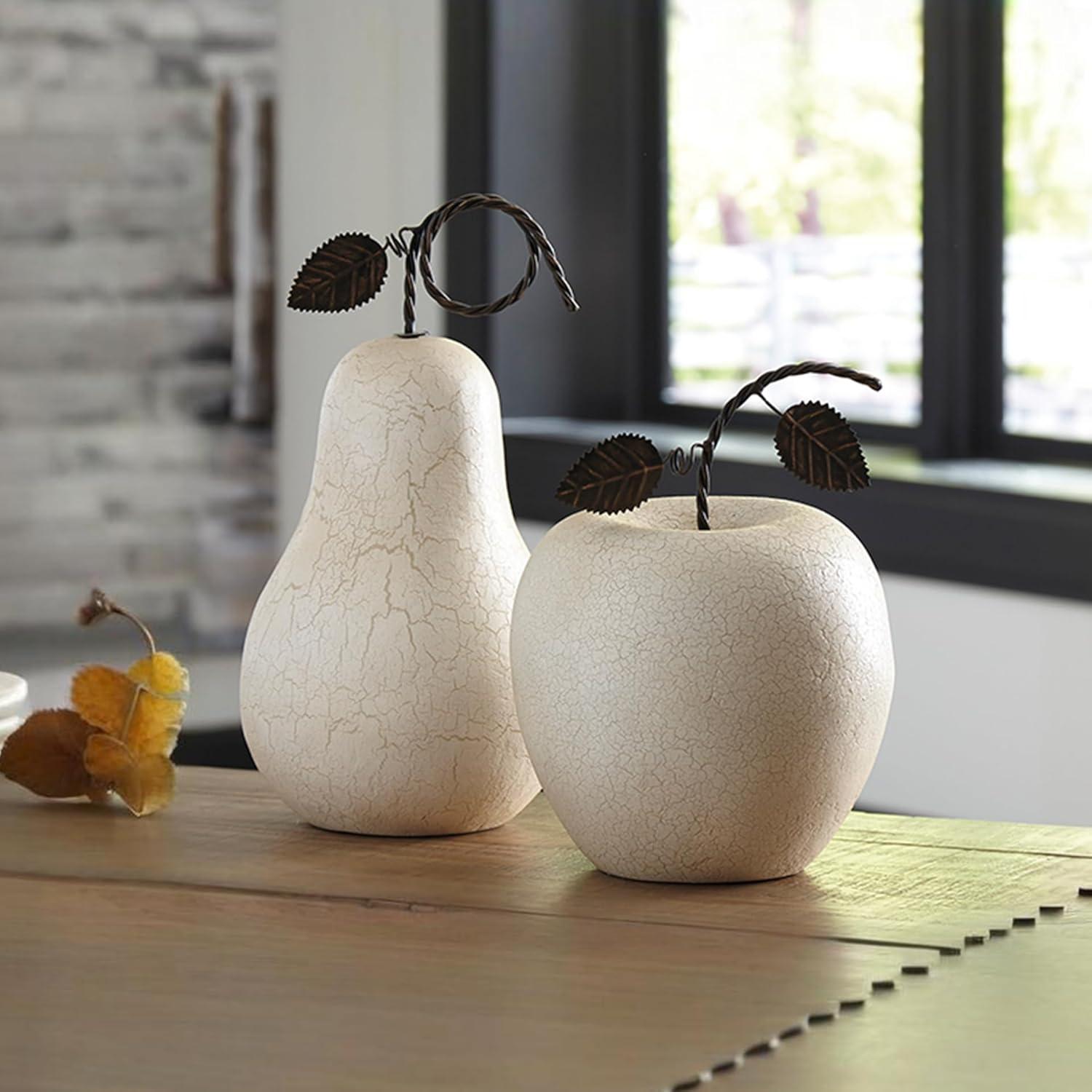 What a perfect pair. These apple and pear sculptures are artfully aged and scaled to fit almost anywhere. Display this delicious duo to give your space vintage appeal. Whether you're tackling a small space or a grand room, home accents are the pieces that tie your home together. These unique details transform spaces from drab to fab in a pinch by adding pops of color and life to your canvas. From functional yet stylish vases to one-of-a-kind sculptures to stunning candle holders, we have whatever you need to bring your home’s unique style to life. And we go the extra mile to package, protect and deliver your purchase in a timely manner.