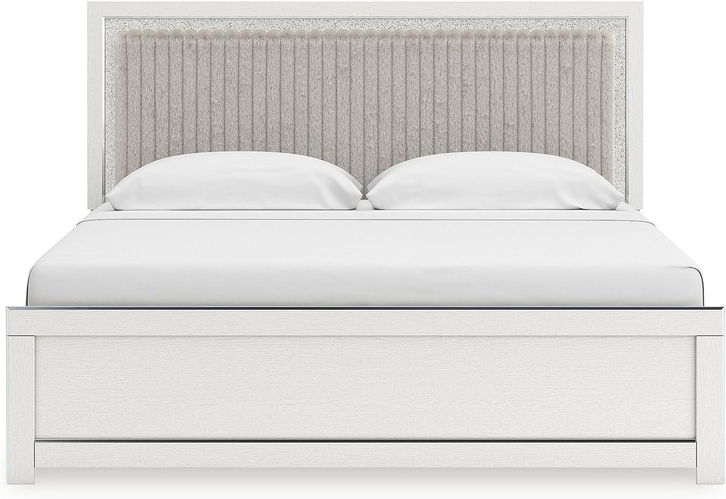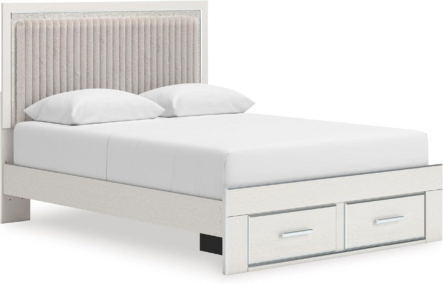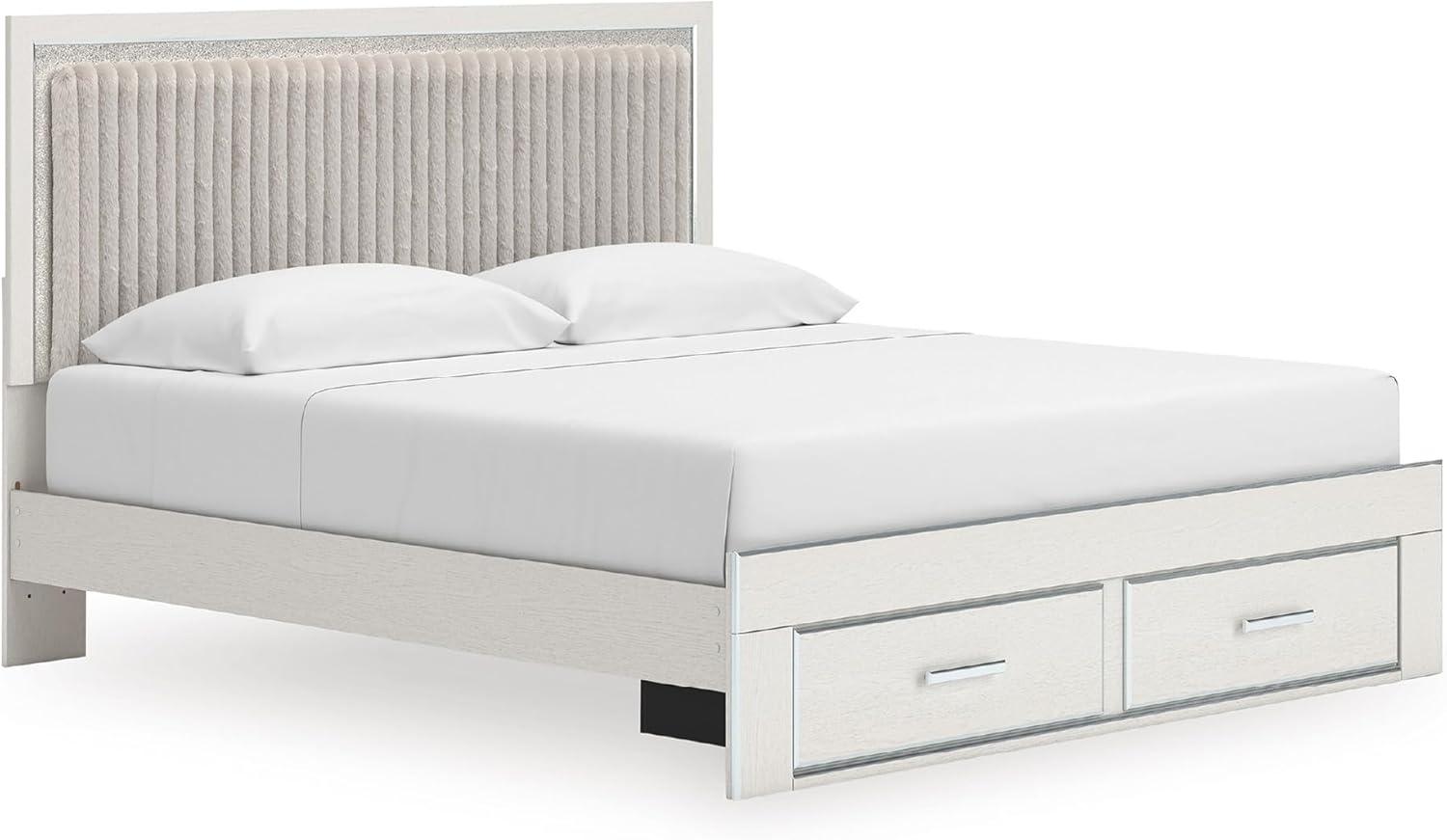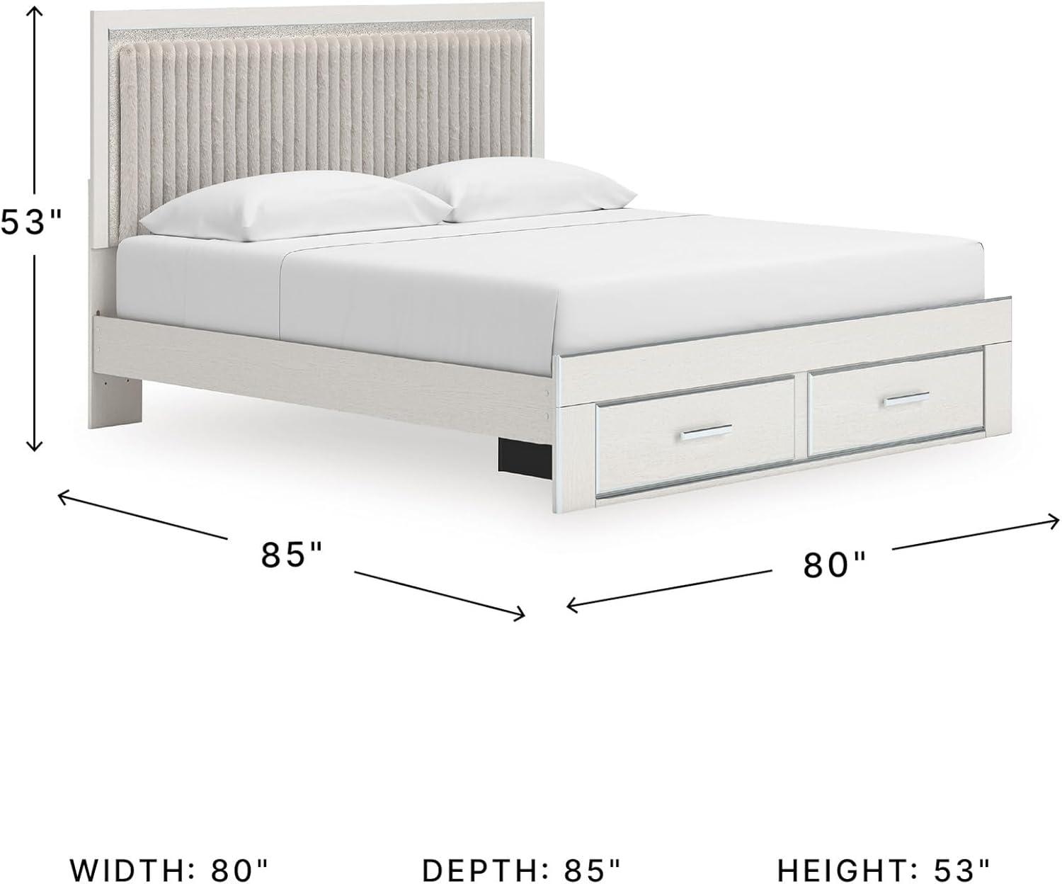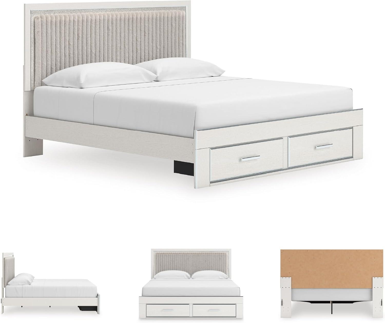 Signature Design by Ashley Birmonton Glam Upholstered Panel Storage Bed, Foundation or Box Spring Needed, King, White(White)