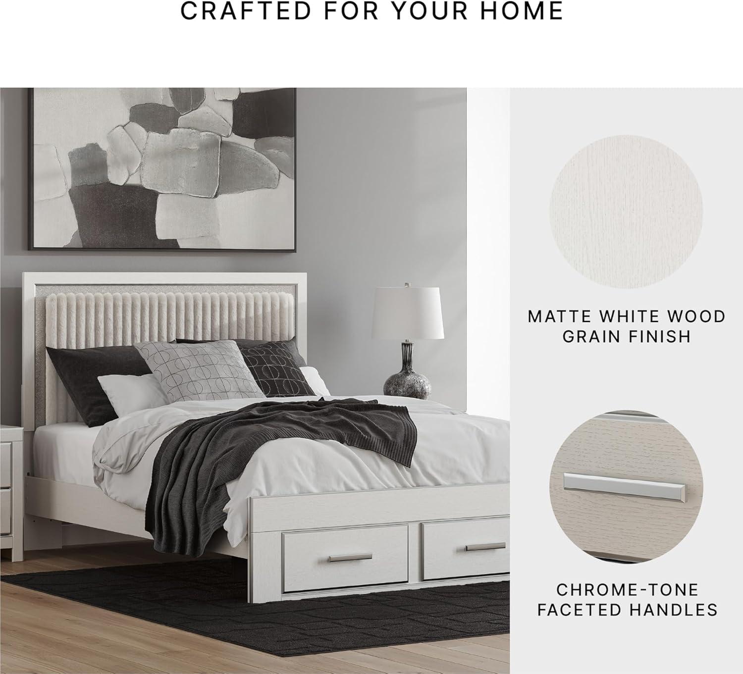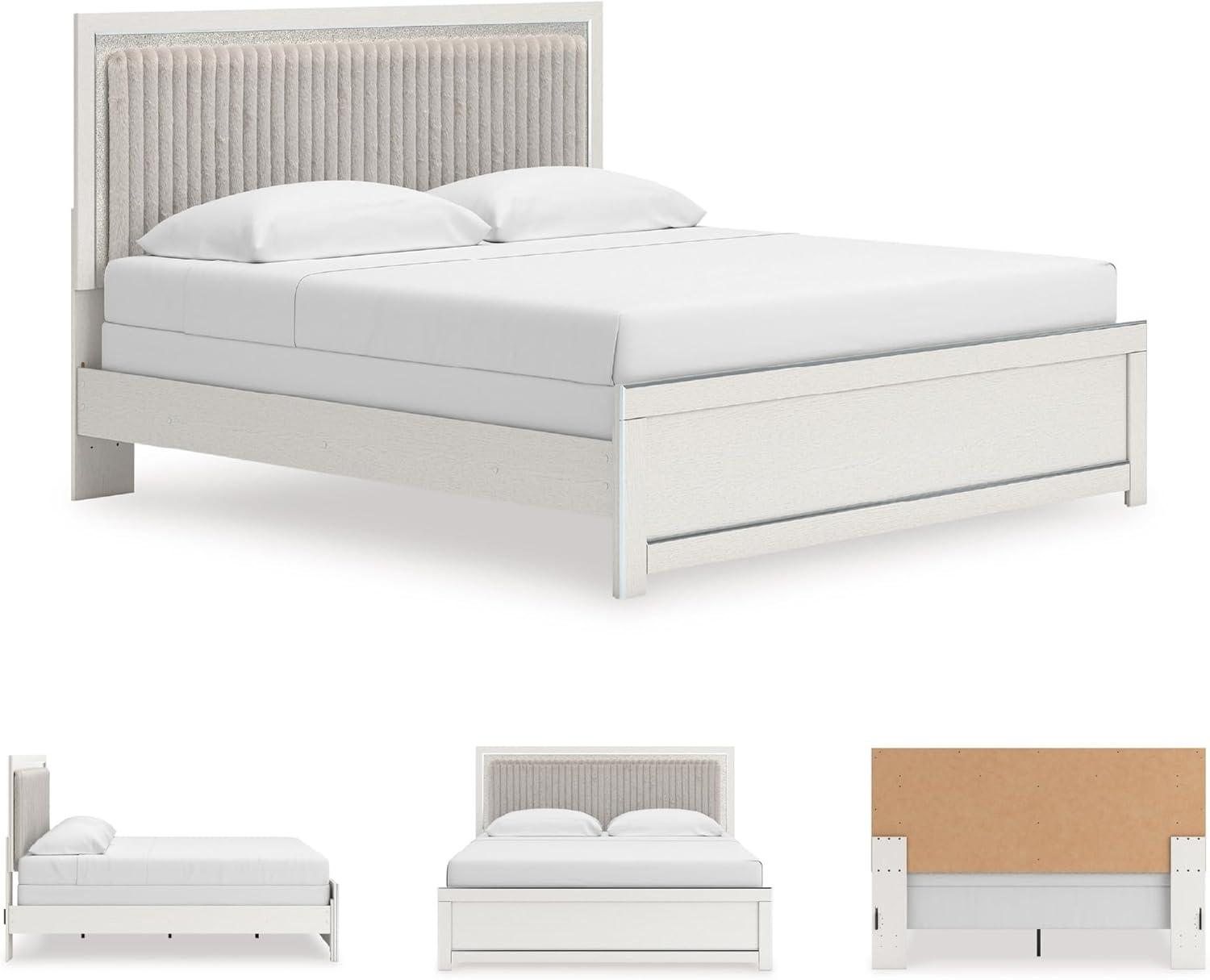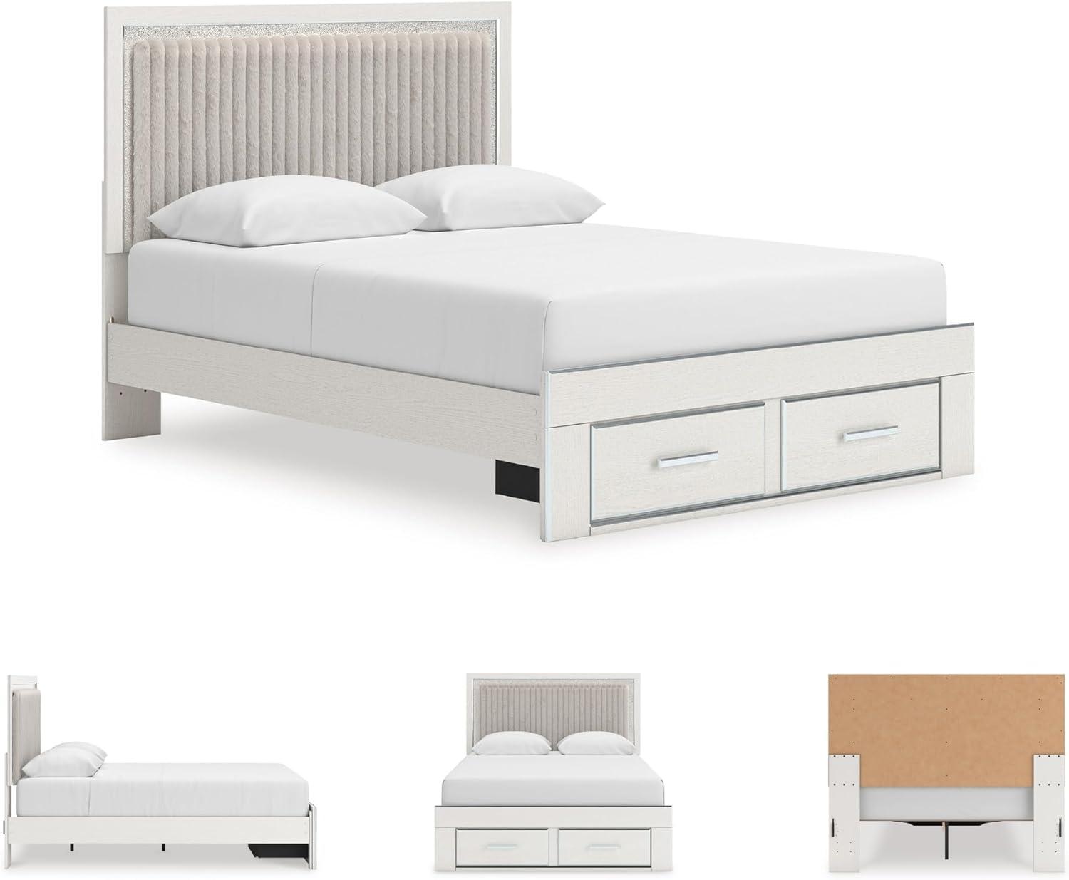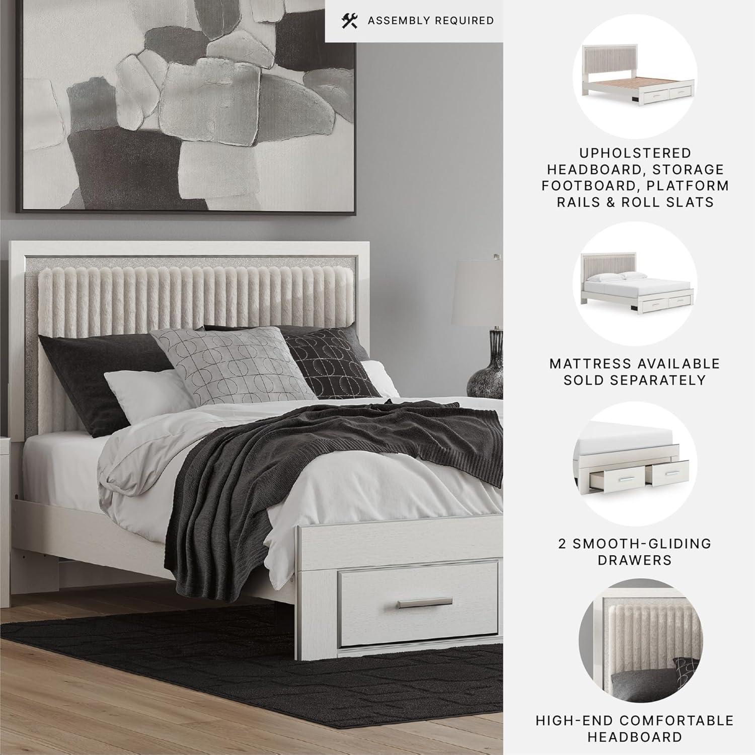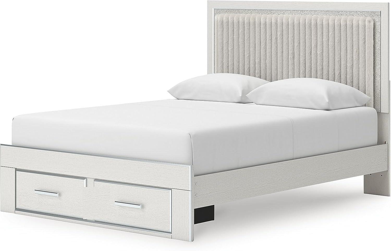 Signature Design by Ashley Birmonton Glam Upholstered Panel Storage Bed, Foundation or Box Spring Needed, King, White(White)