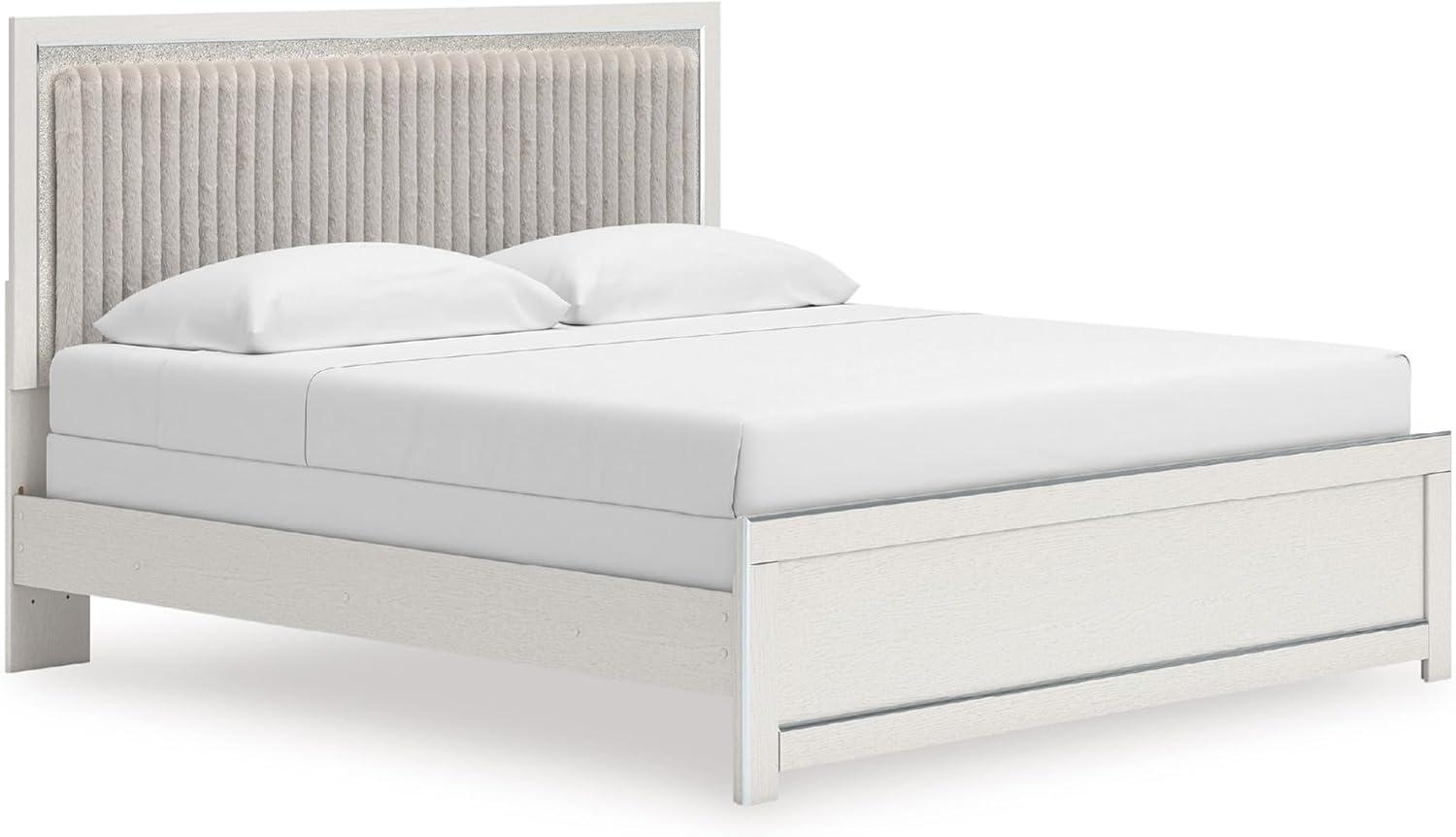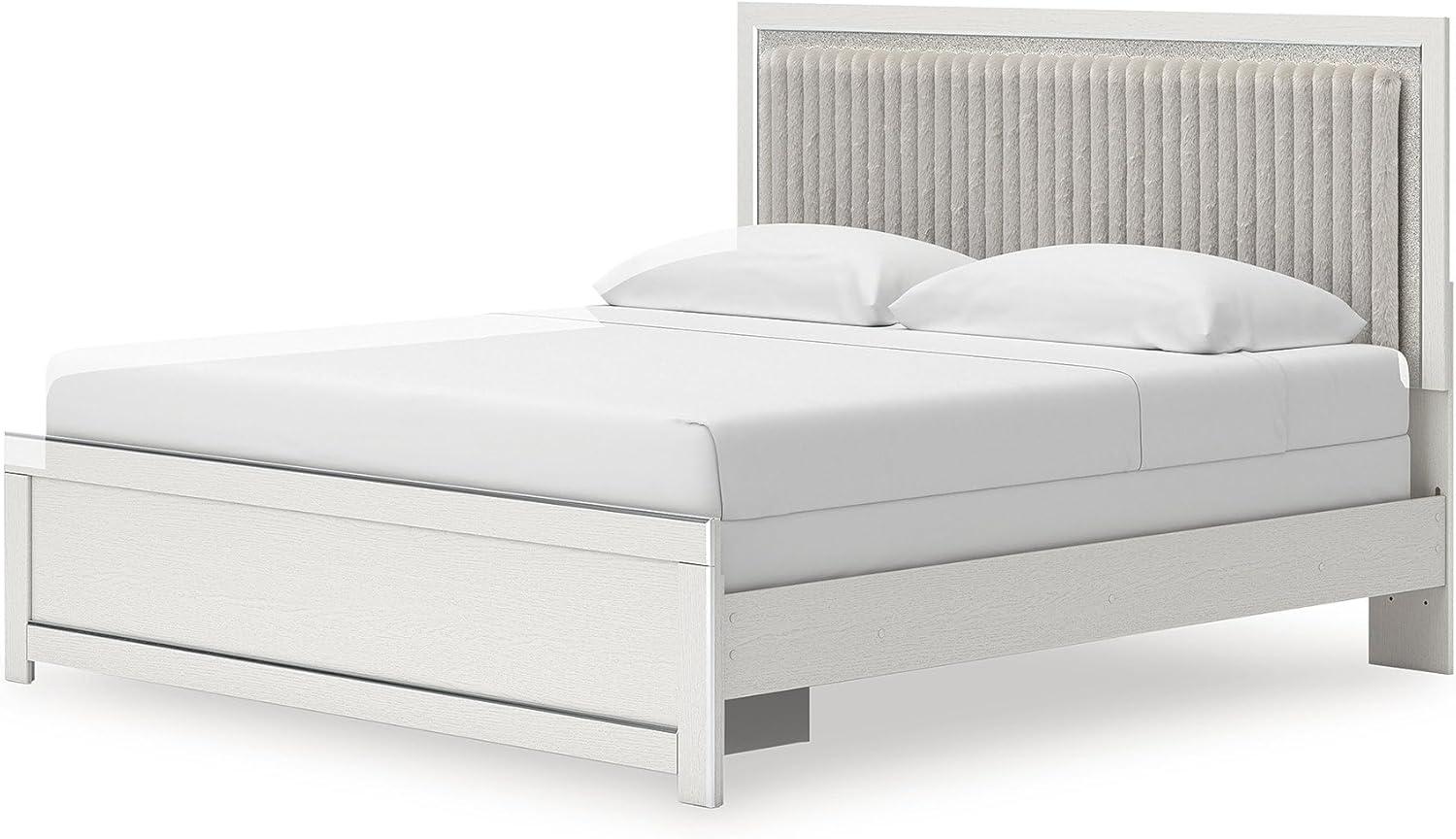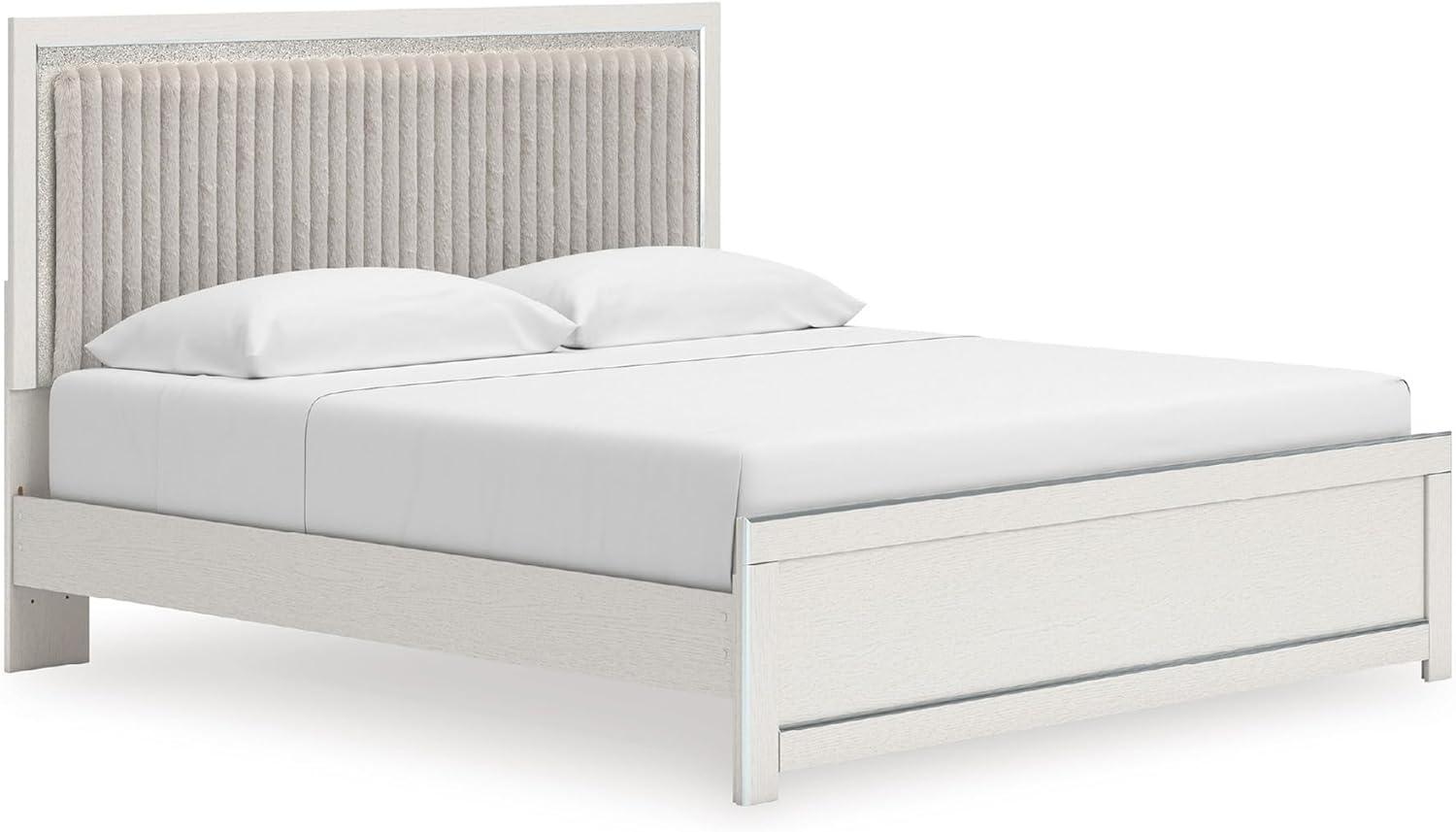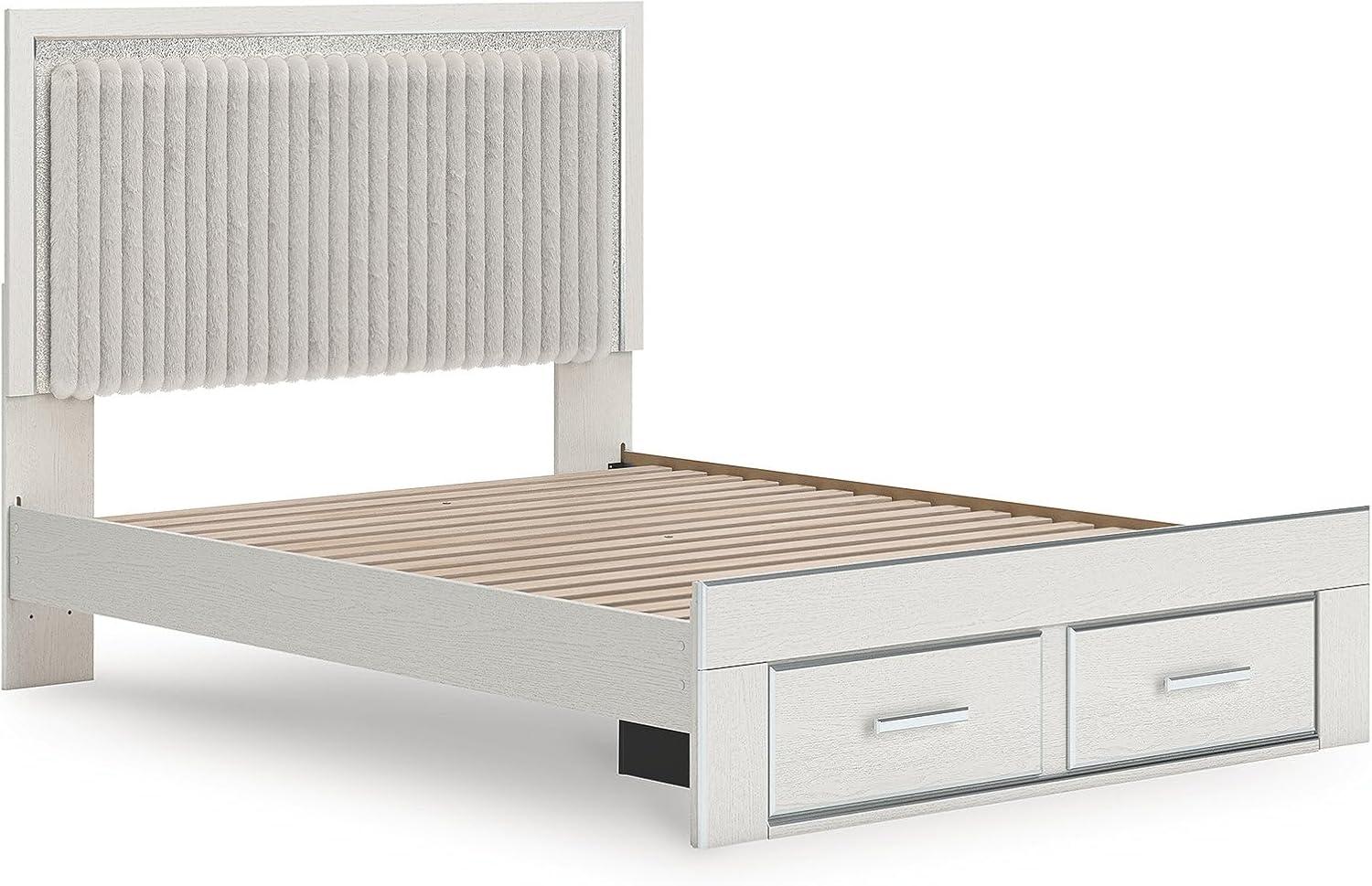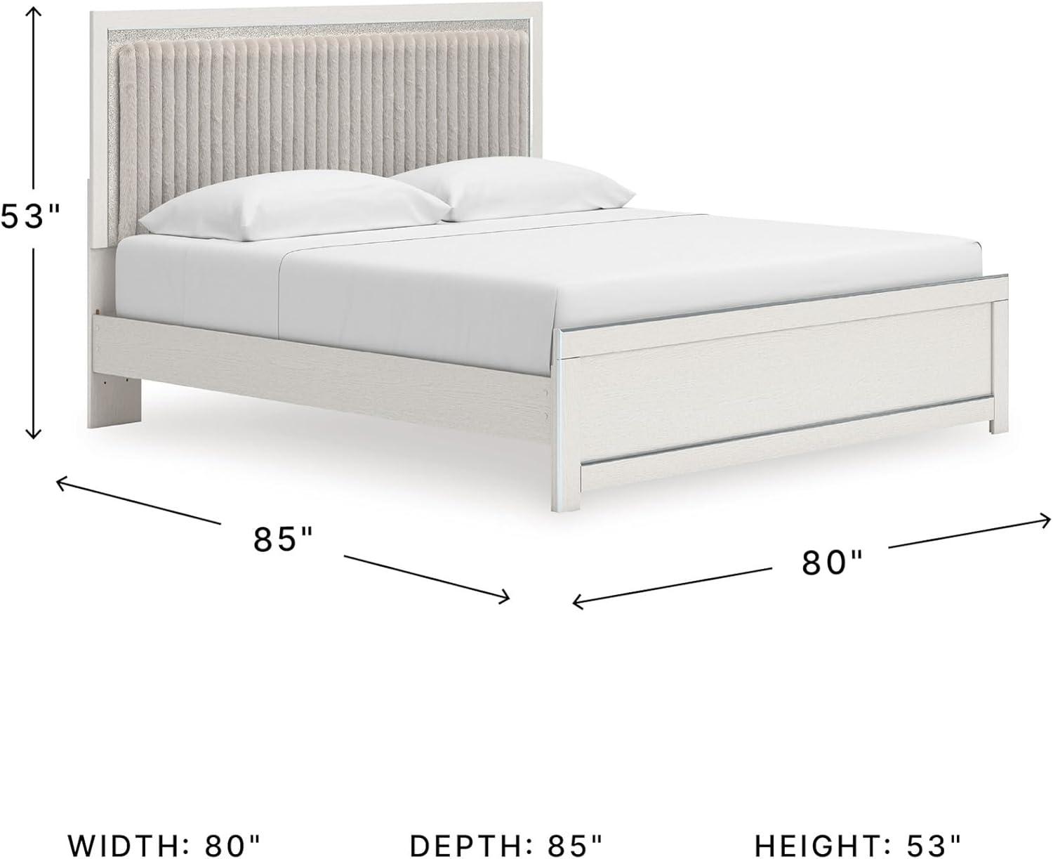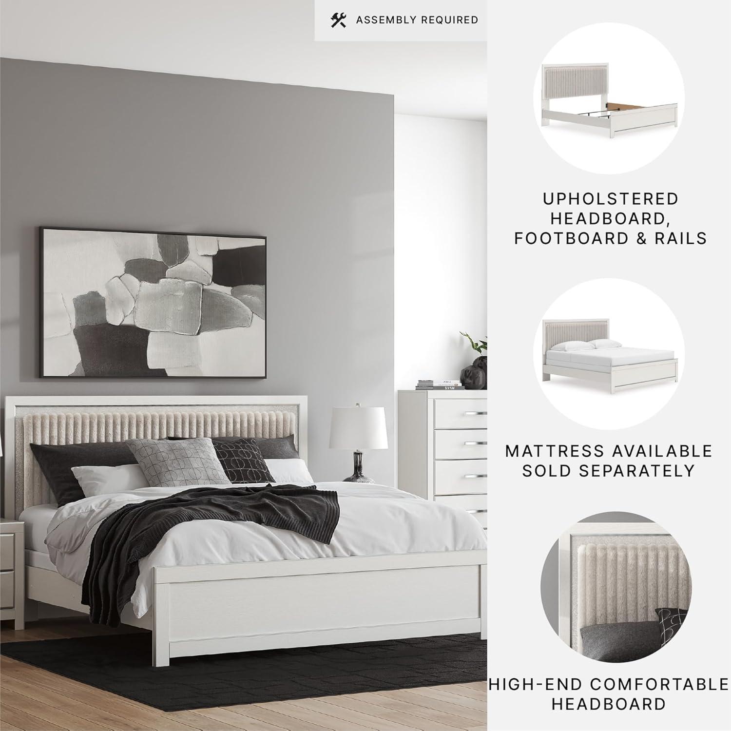 Signature Design by Ashley Birmonton Glam Upholstered Panel Storage Bed, Foundation or Box Spring Needed, King, White(White)