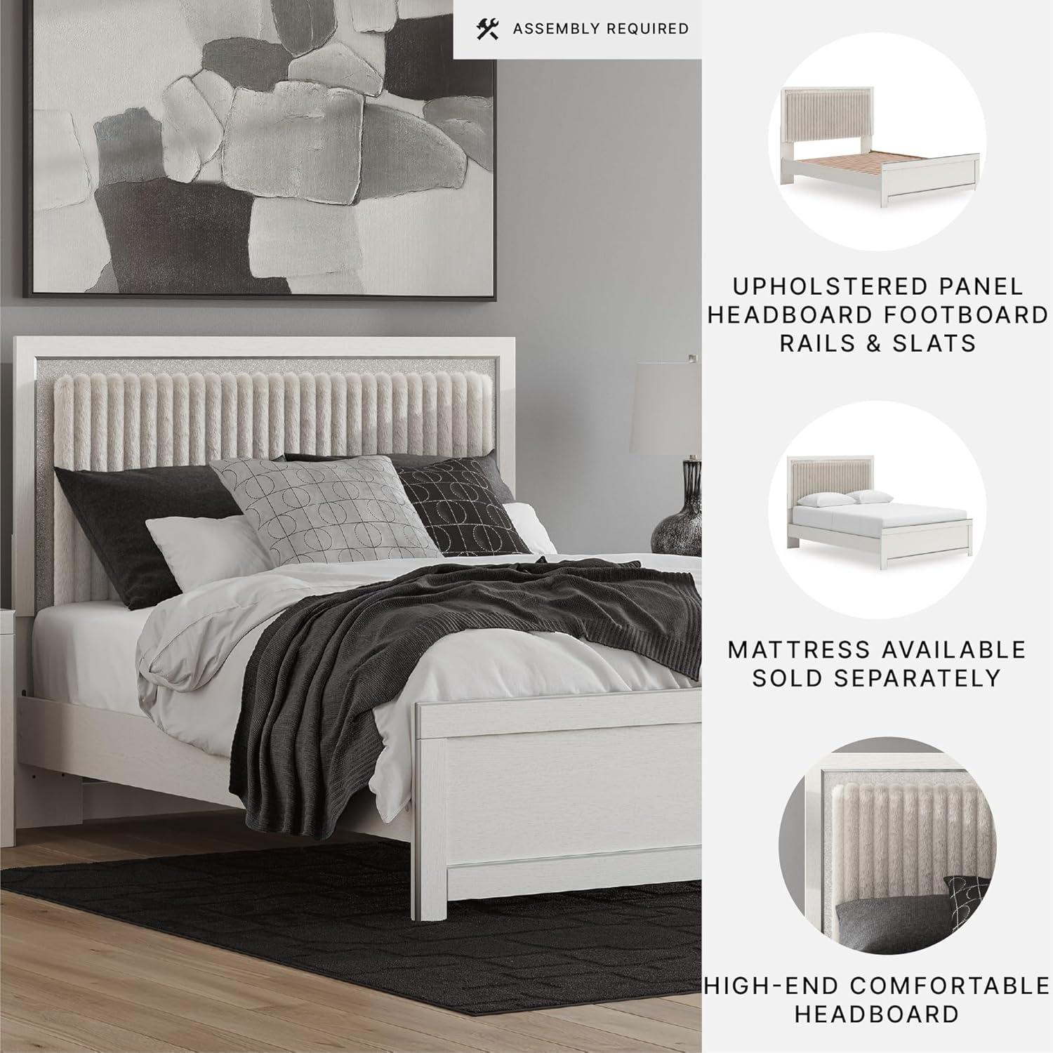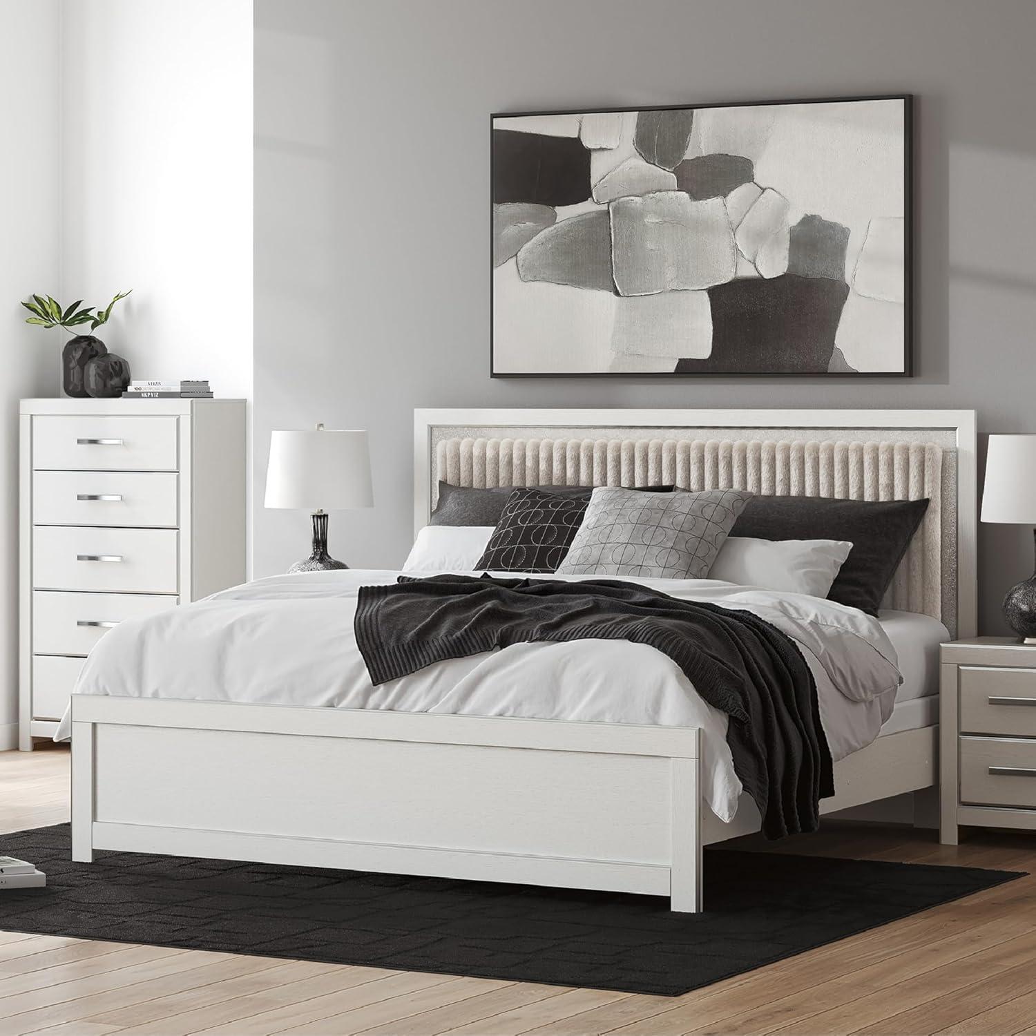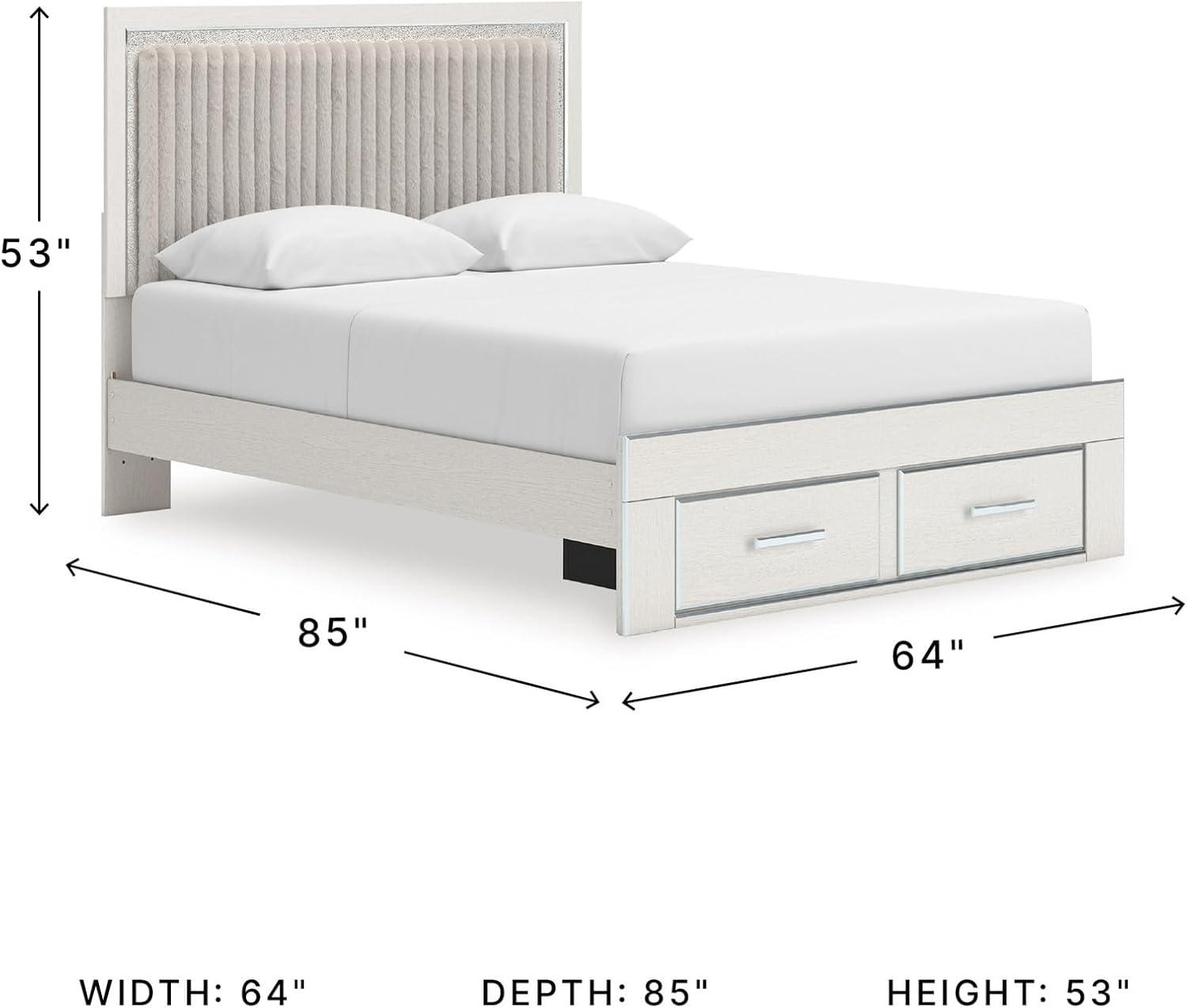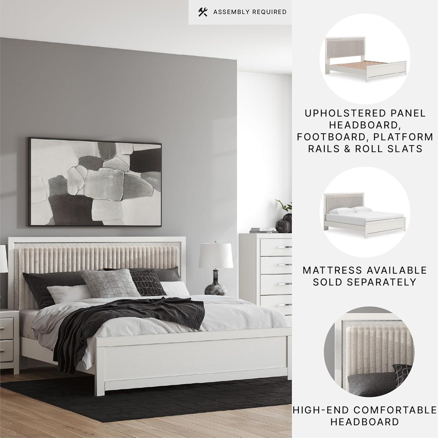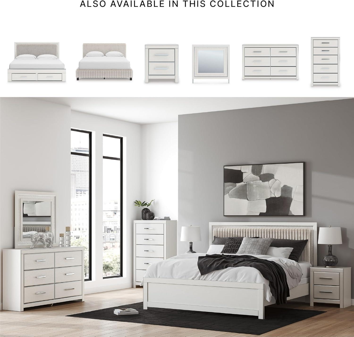Signature Design by Ashley Birmonton Glam Upholstered Panel Storage Bed, Foundation or Box Spring Needed, King, White(White)
