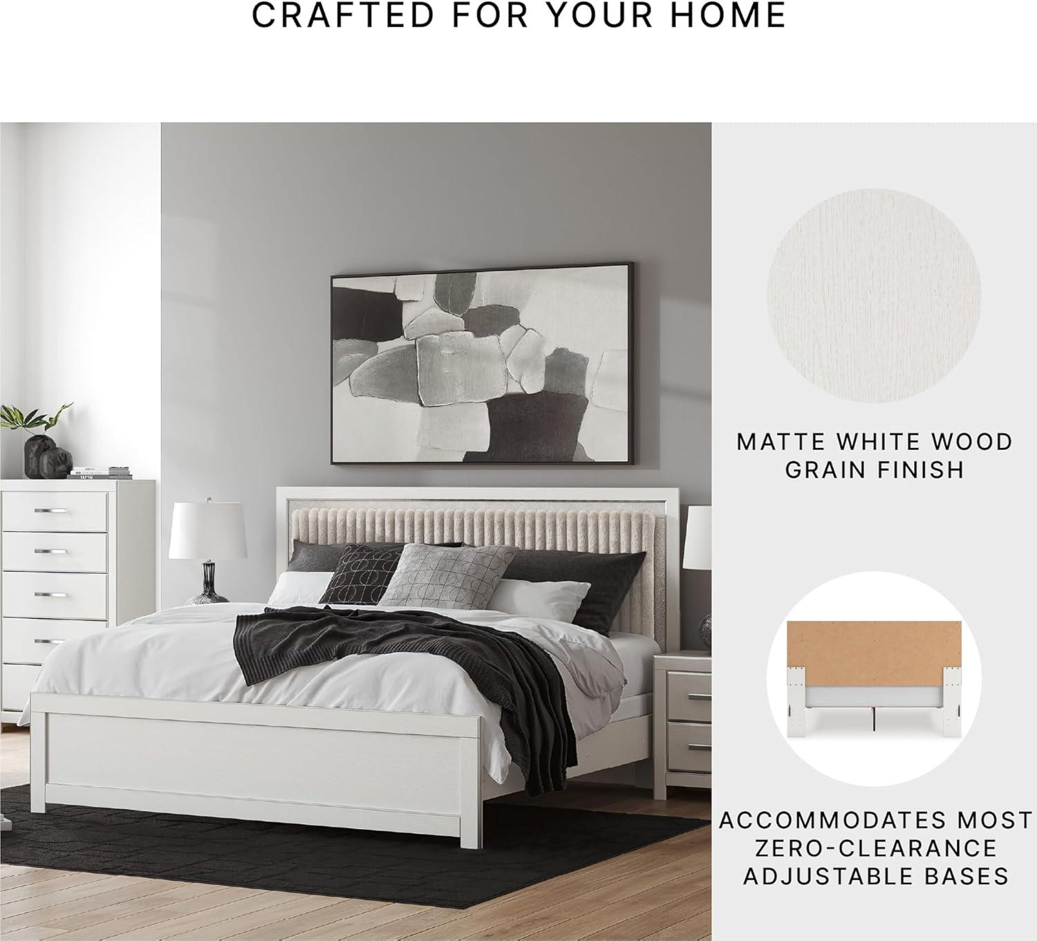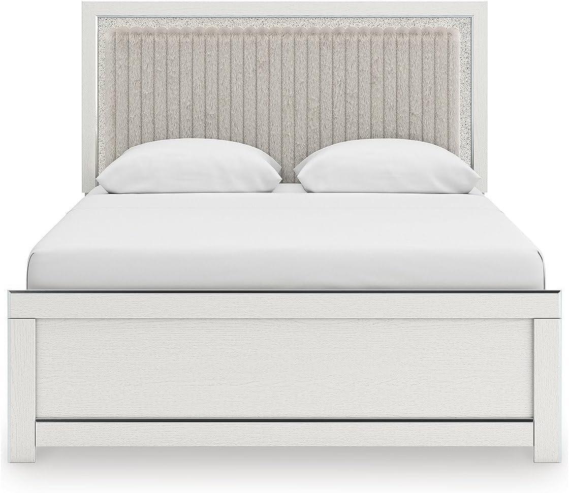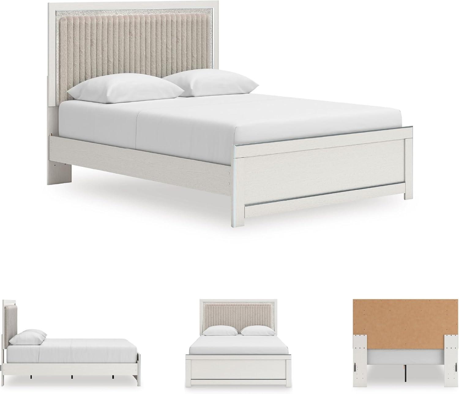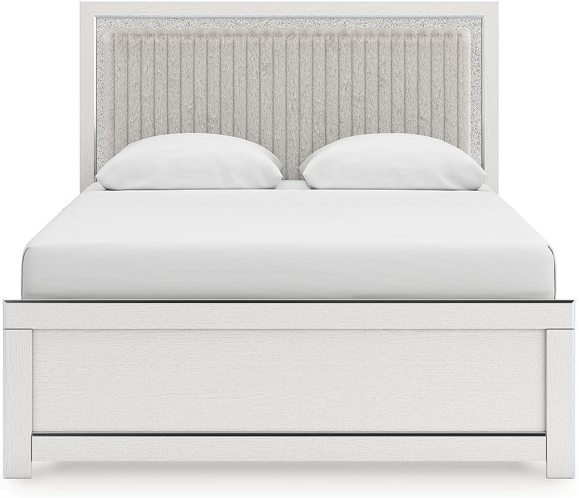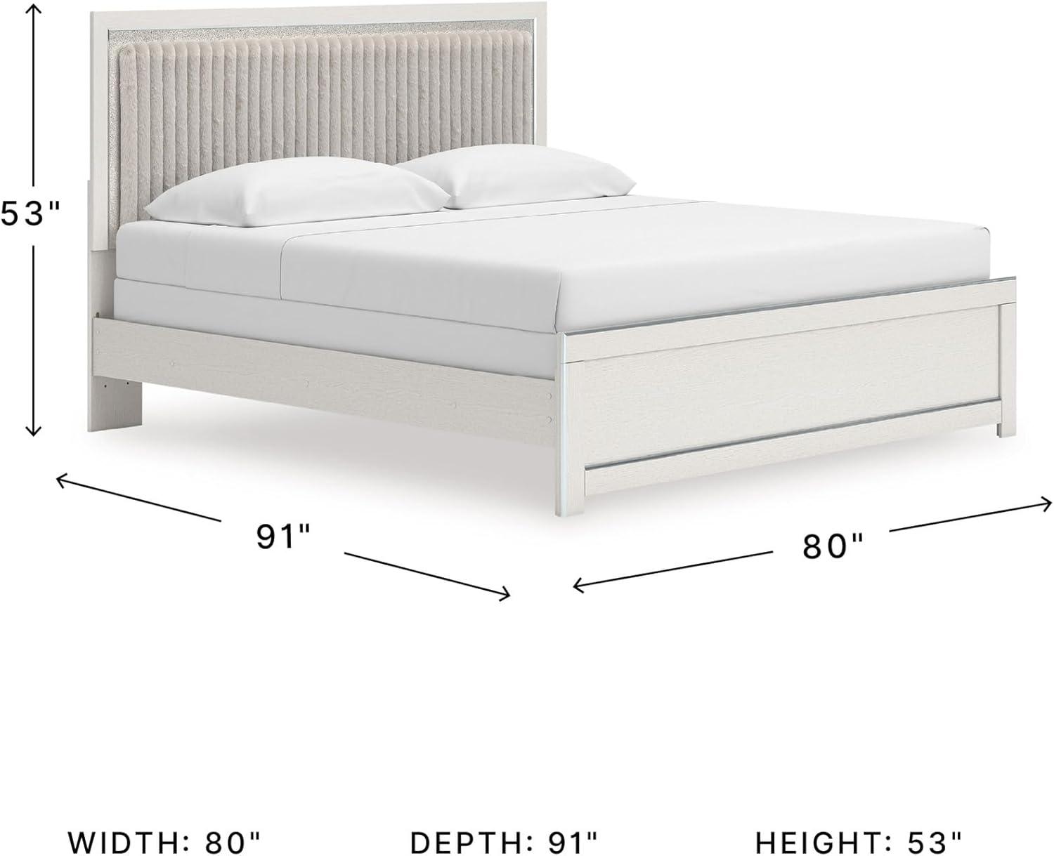 Signature Design by Ashley Birmonton Glam Upholstered Panel Storage Bed, Foundation or Box Spring Needed, King, White(White)