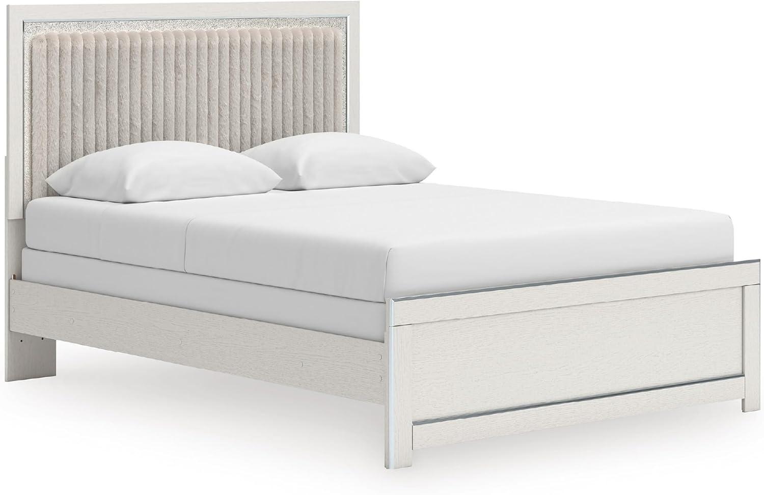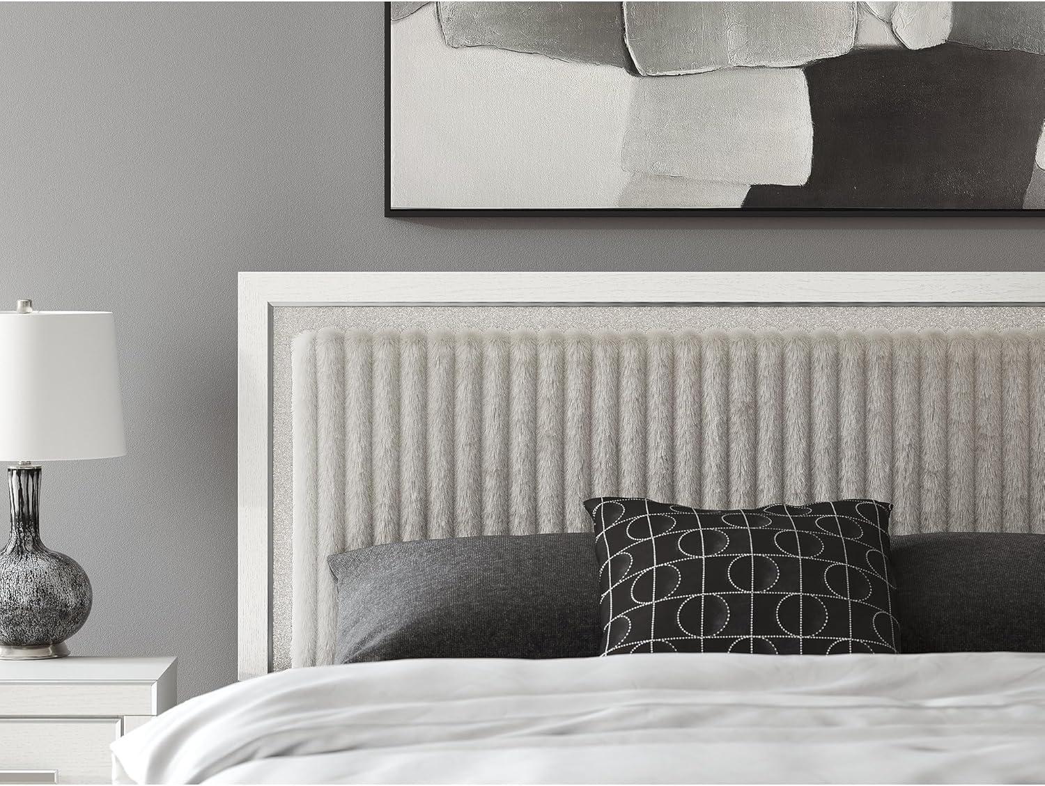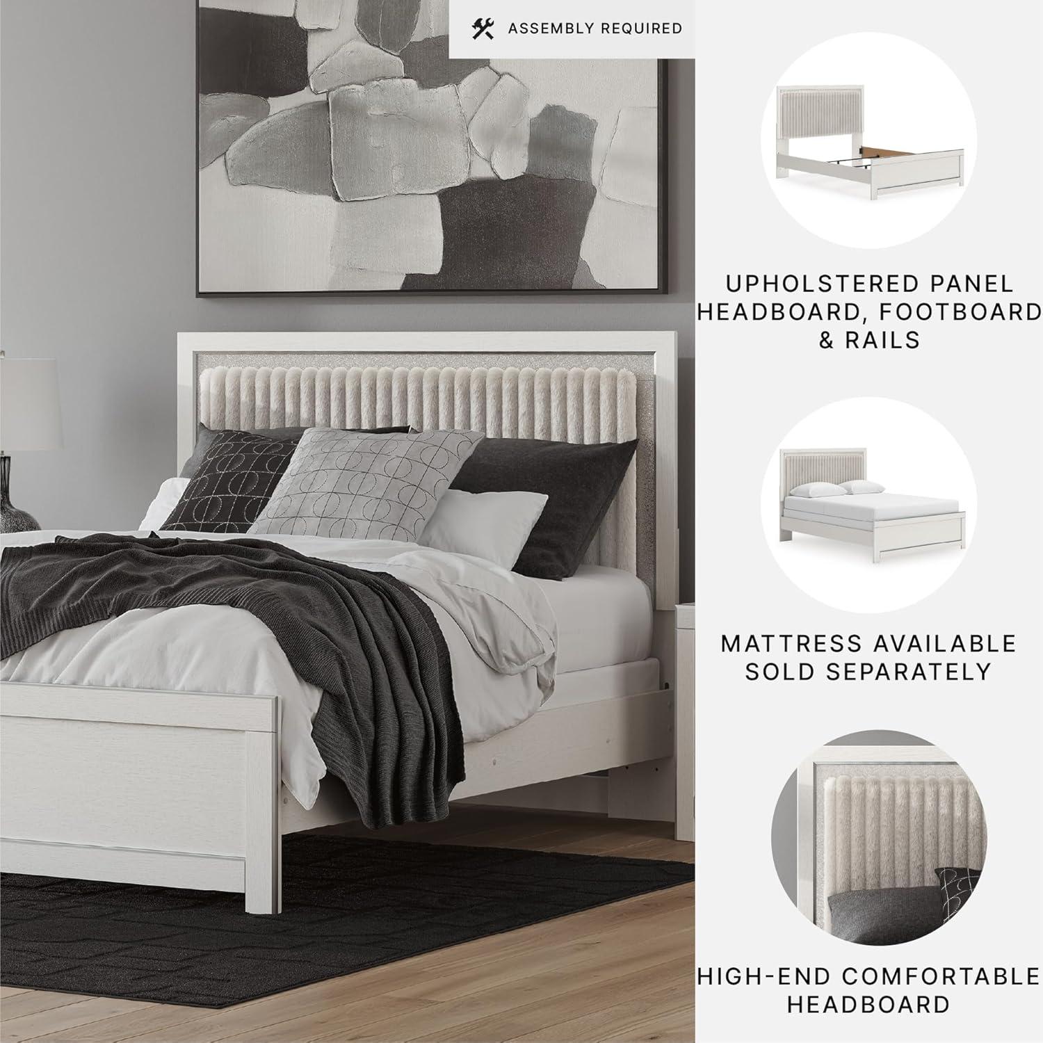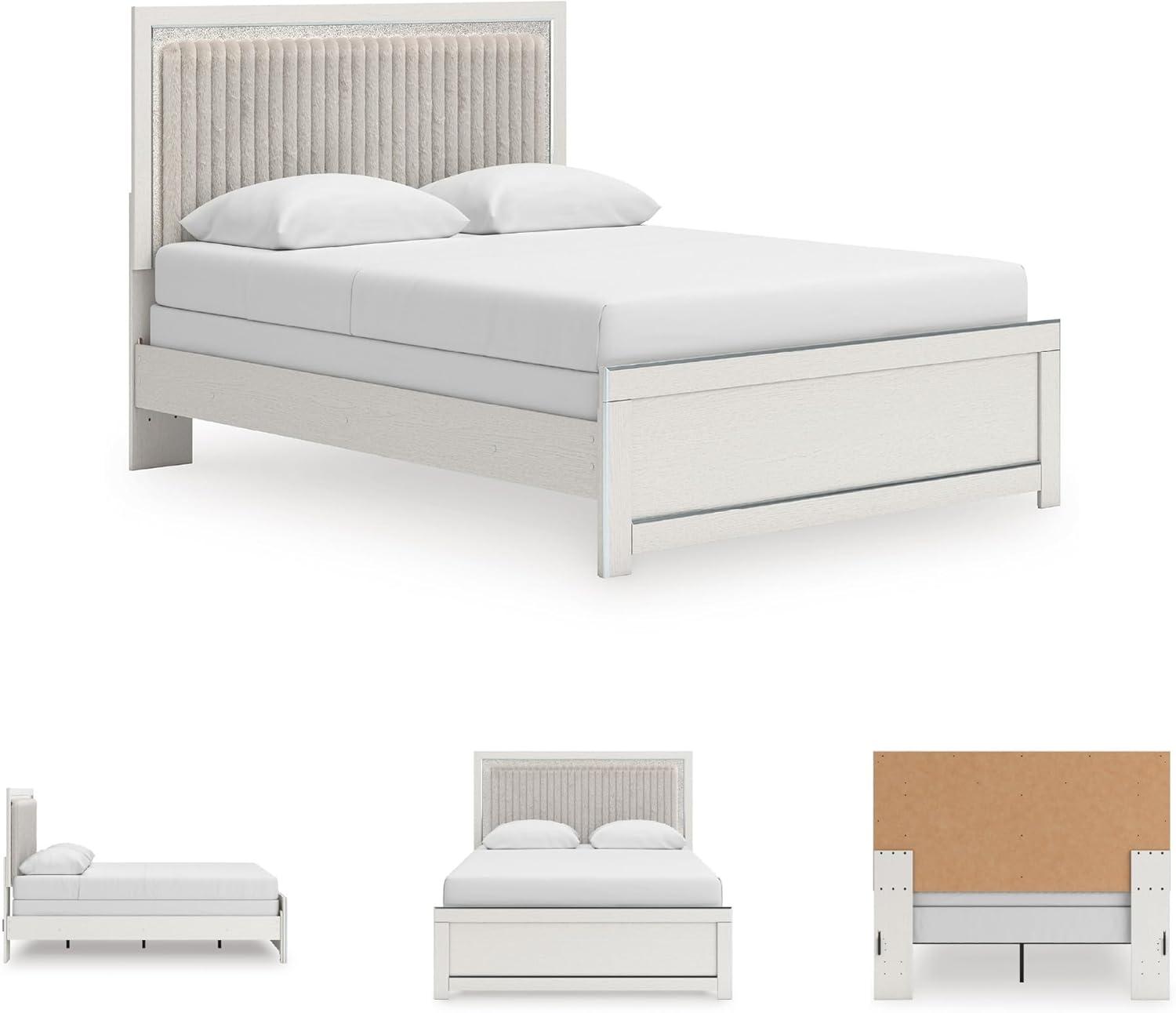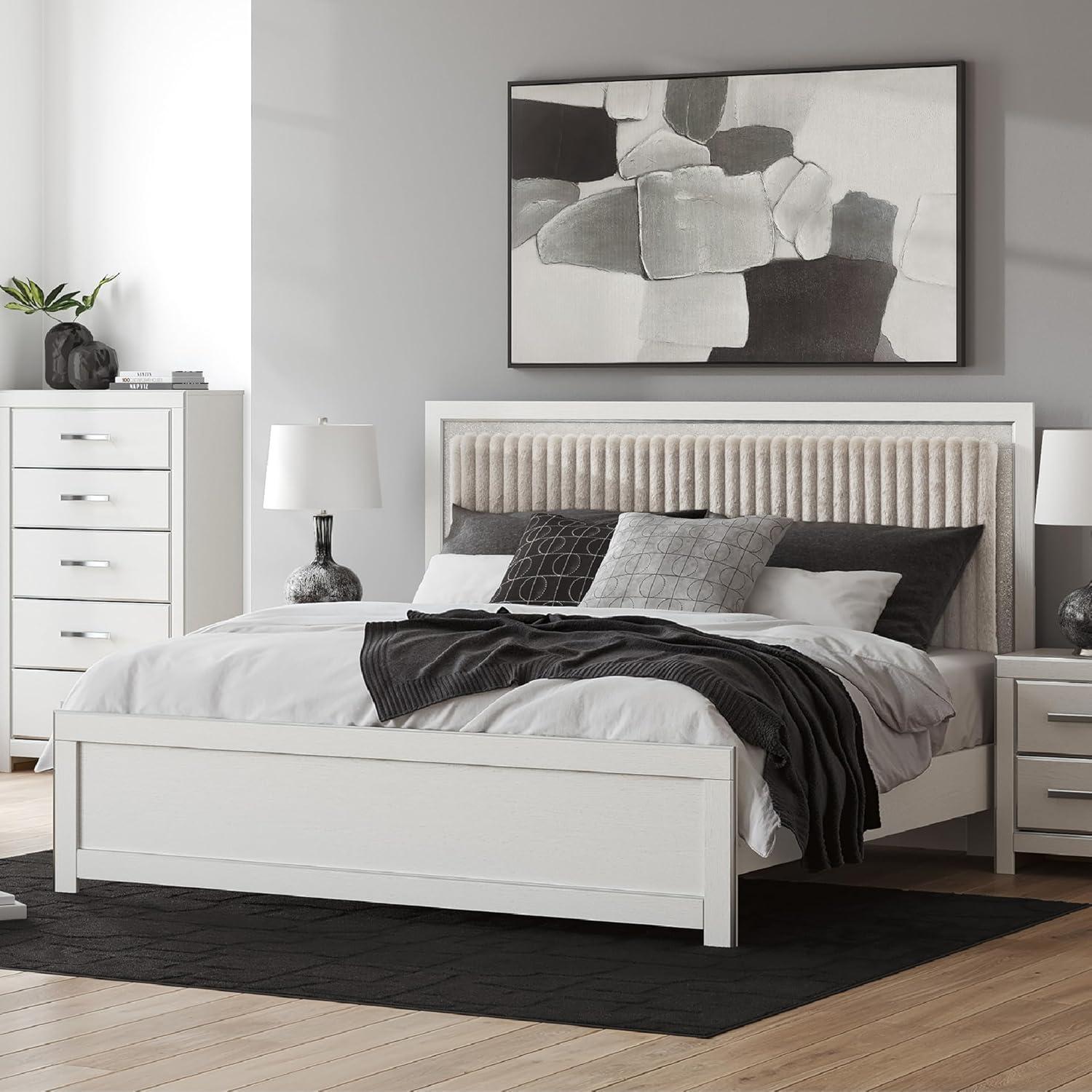 Signature Design by Ashley Birmonton Glam Upholstered Panel Storage Bed, Foundation or Box Spring Needed, King, White(White)