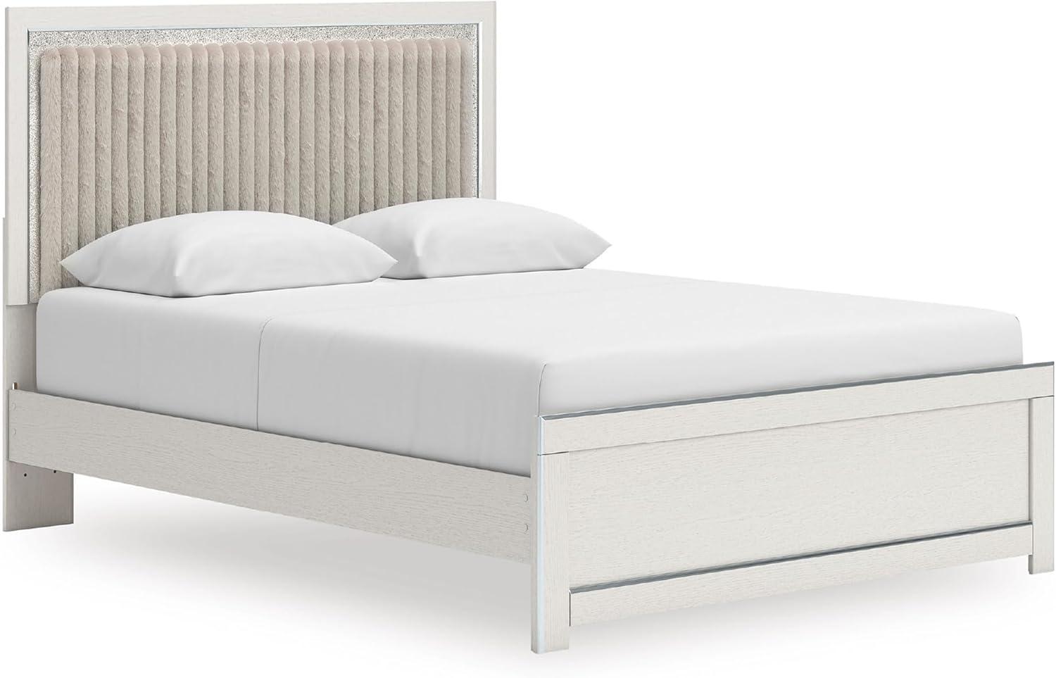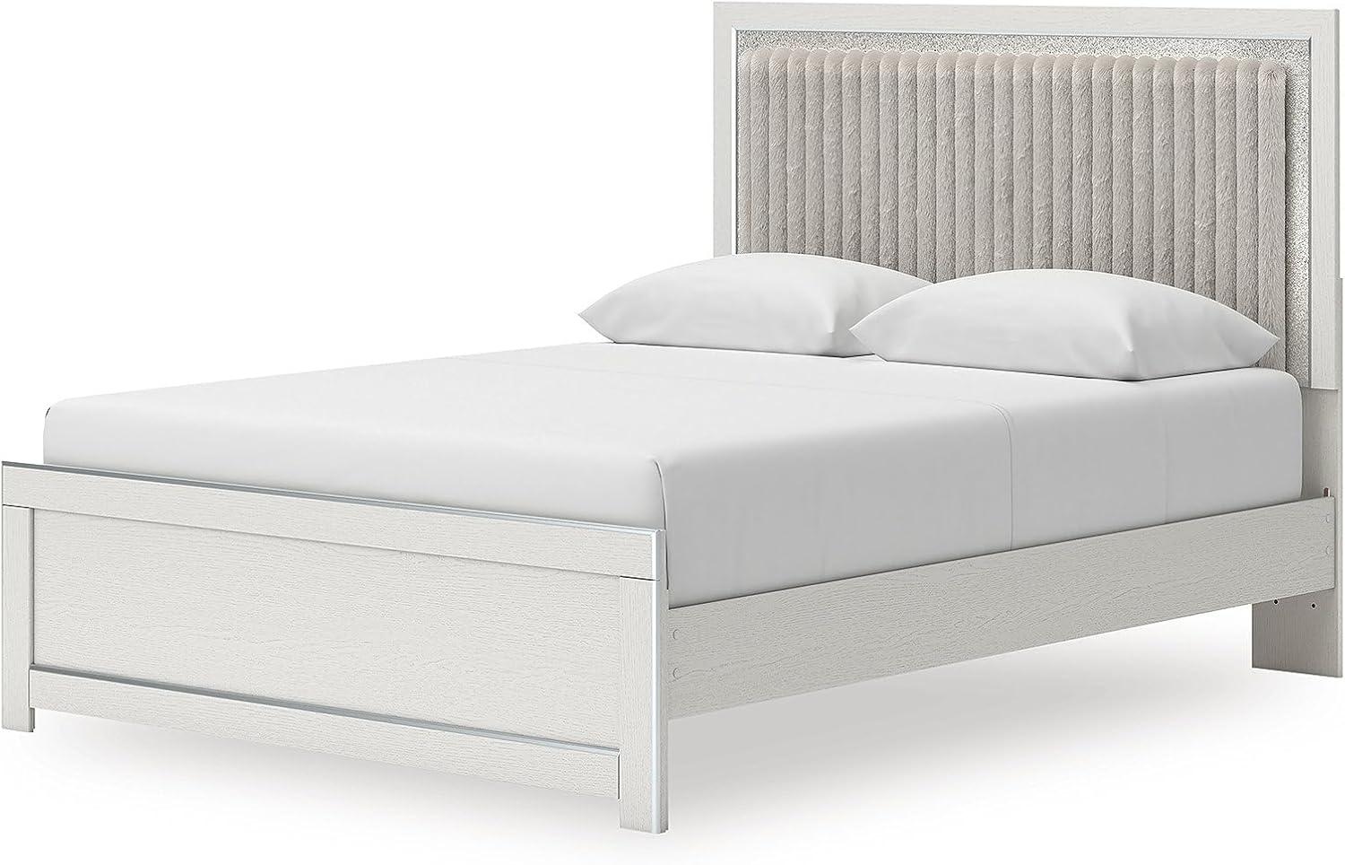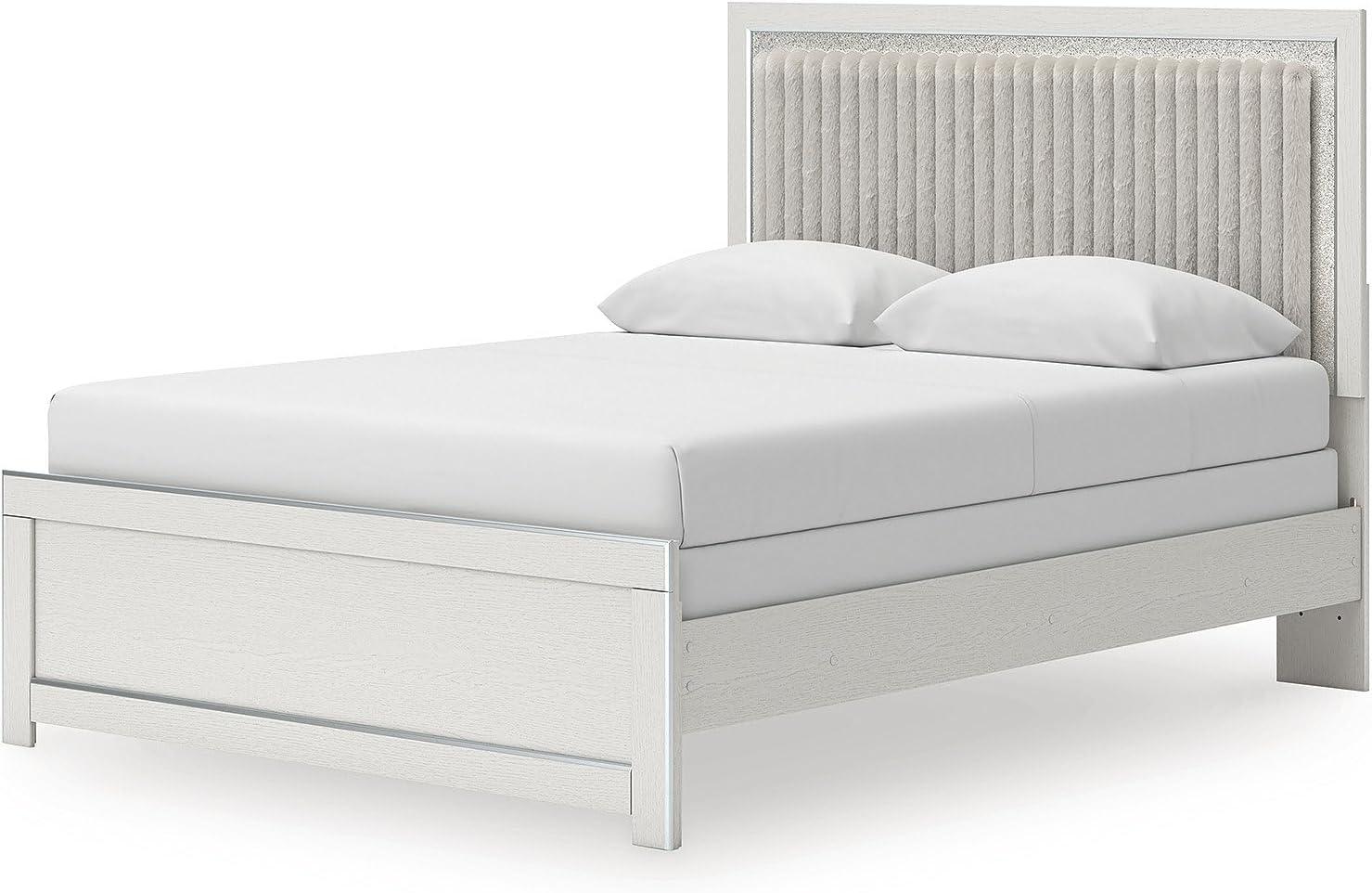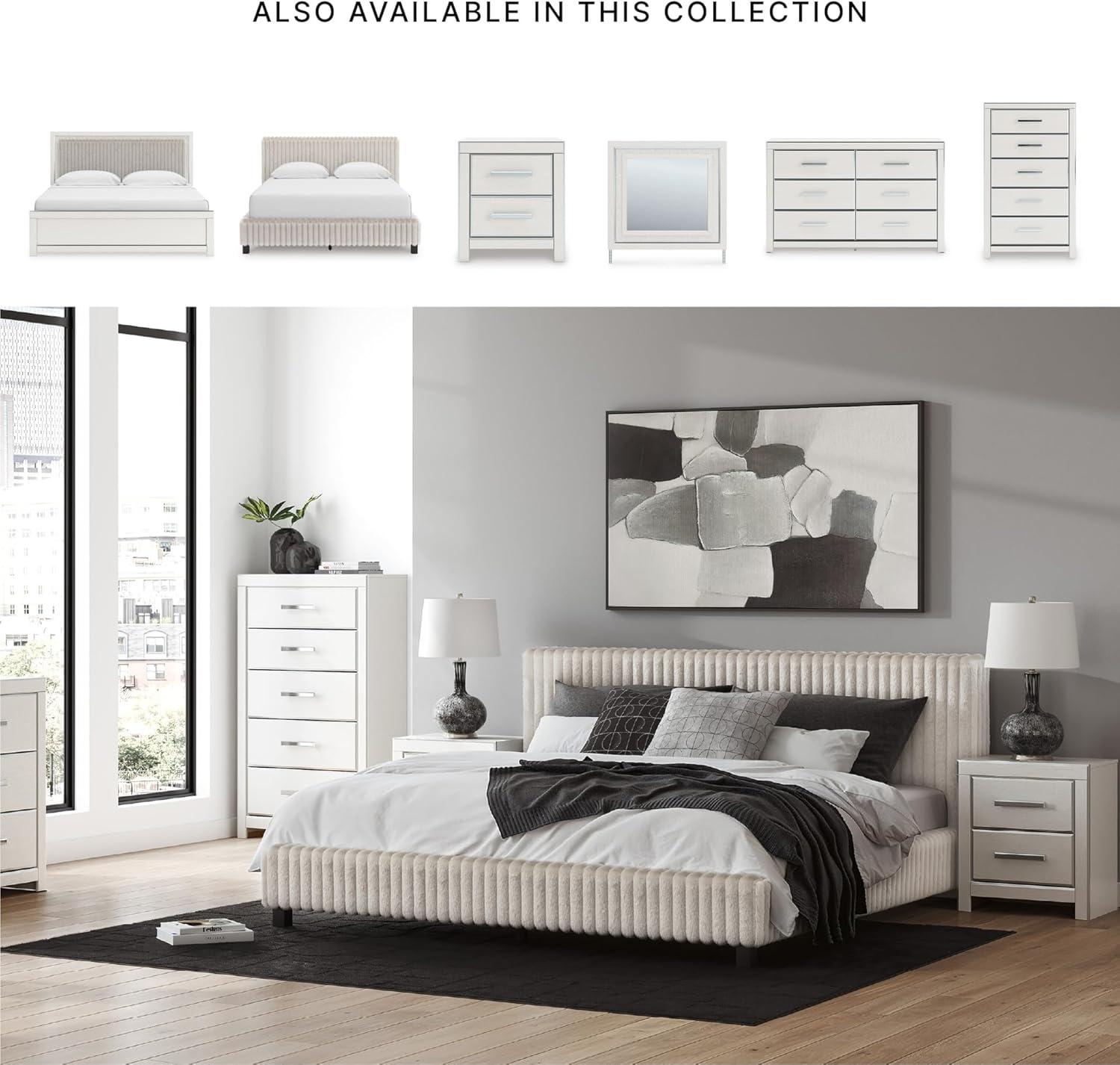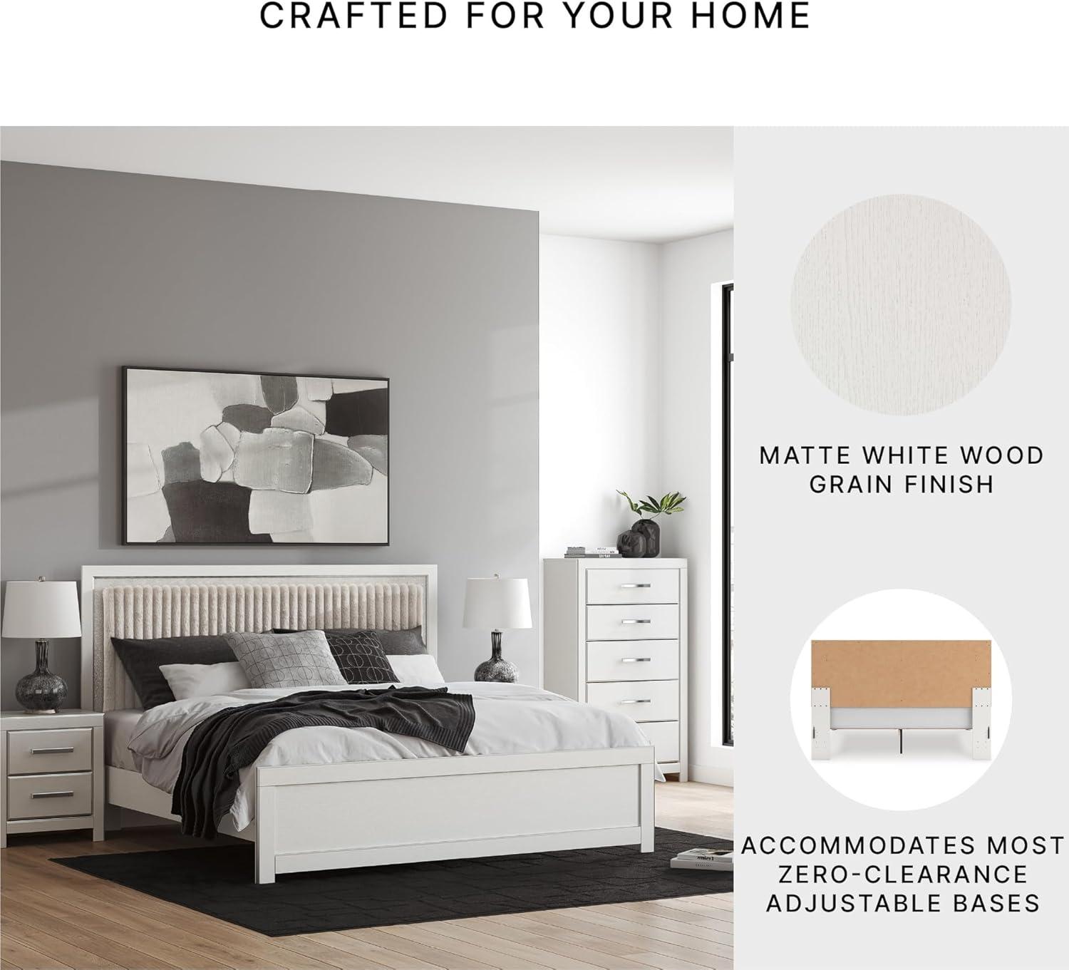 Signature Design by Ashley Birmonton Glam Upholstered Panel Storage Bed, Foundation or Box Spring Needed, King, White(White)
