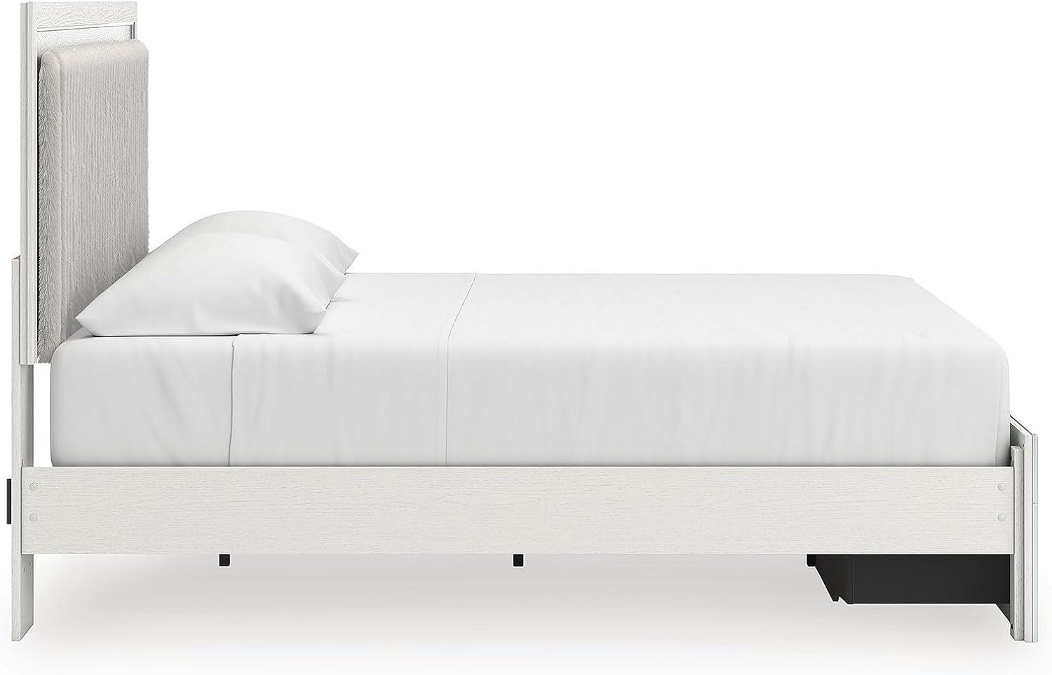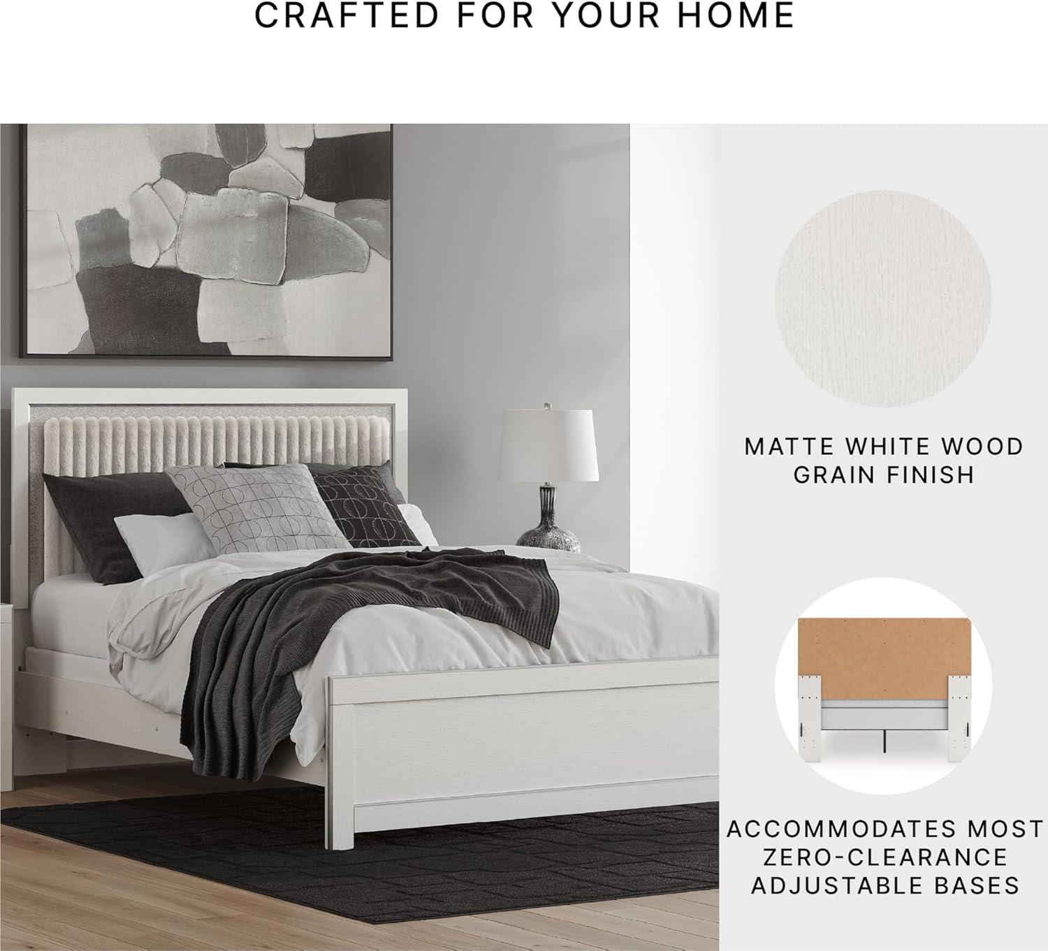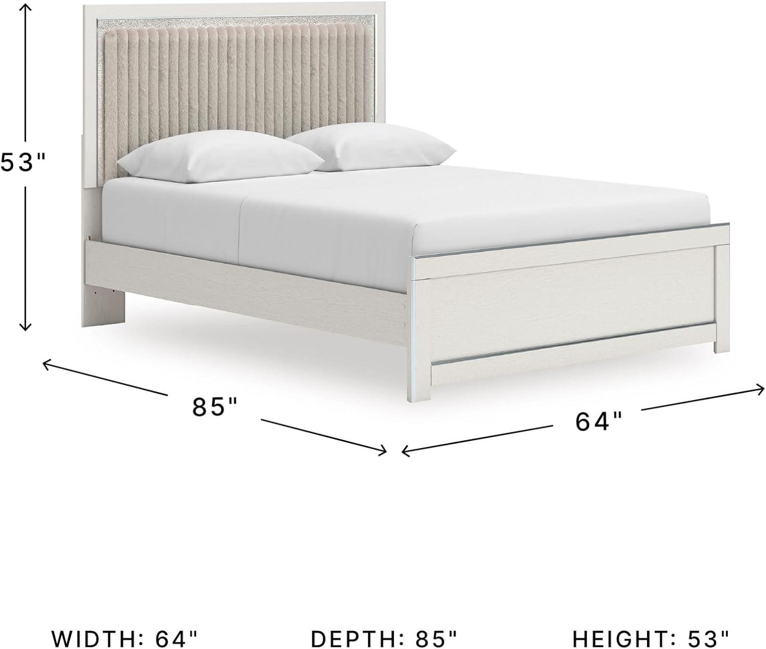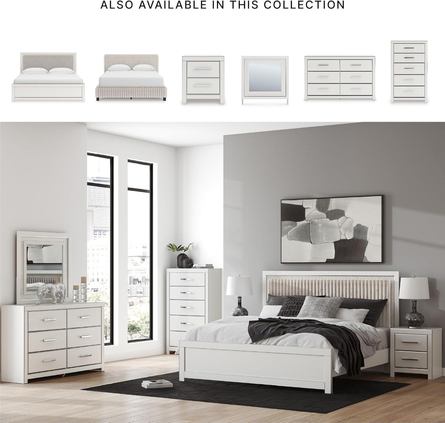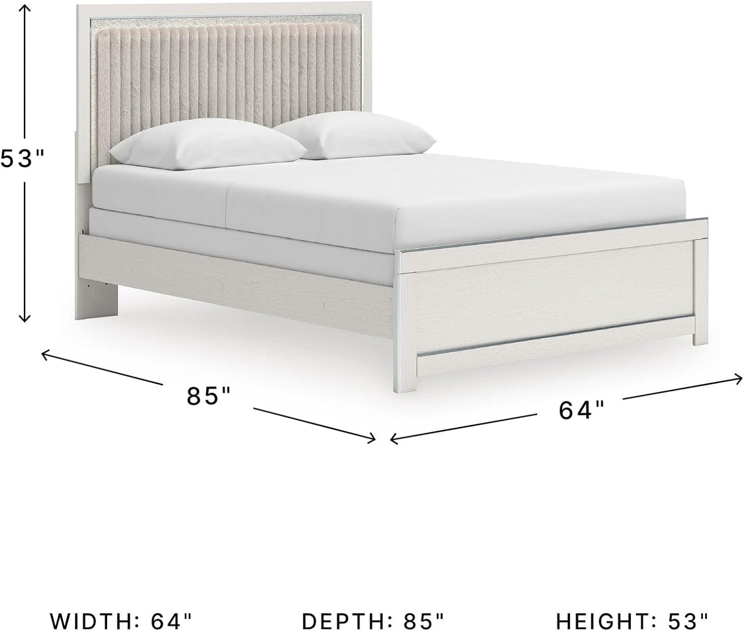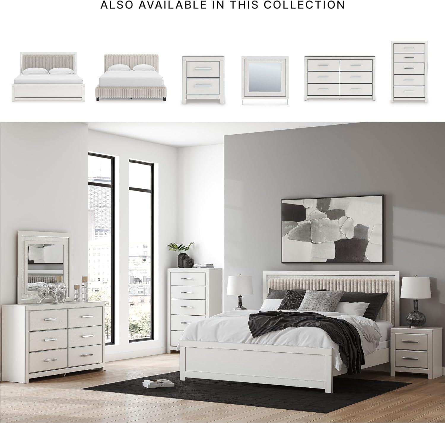 Signature Design by Ashley Birmonton Glam Upholstered Panel Storage Bed, Foundation or Box Spring Needed, King, White(White)