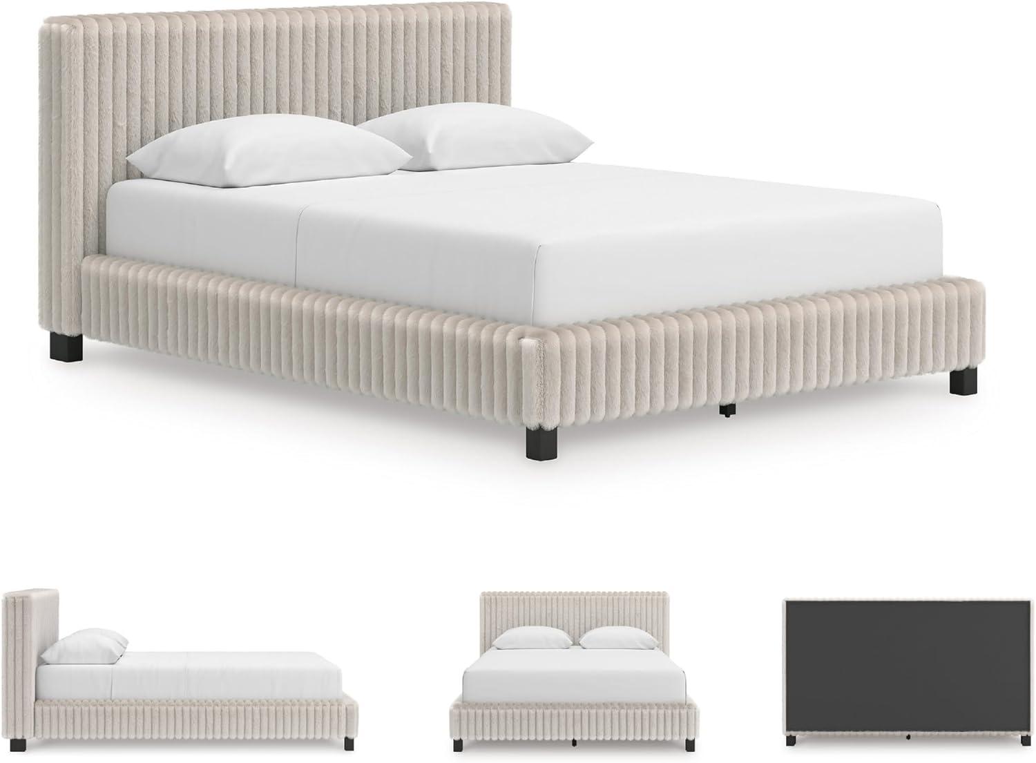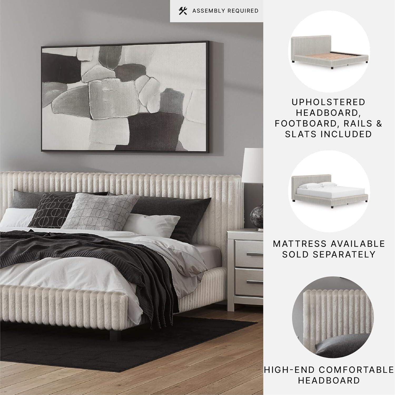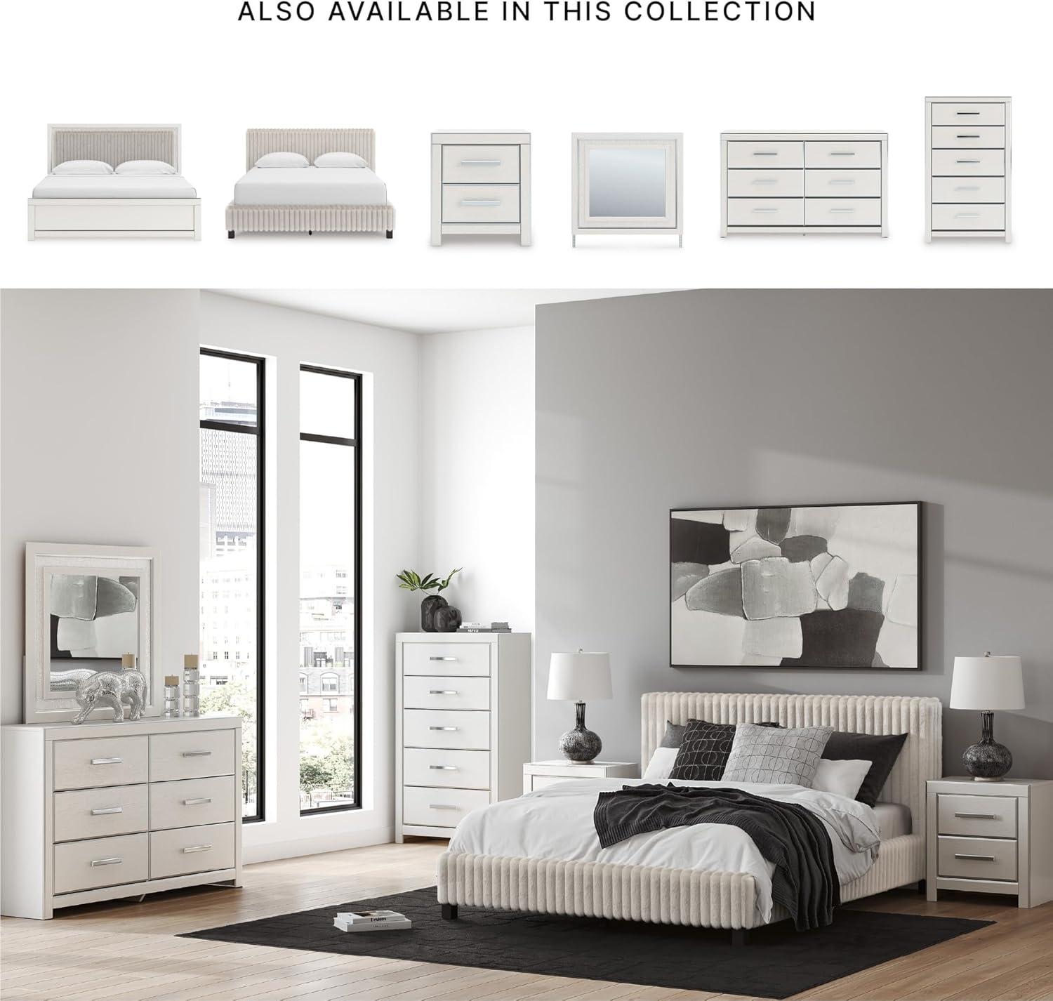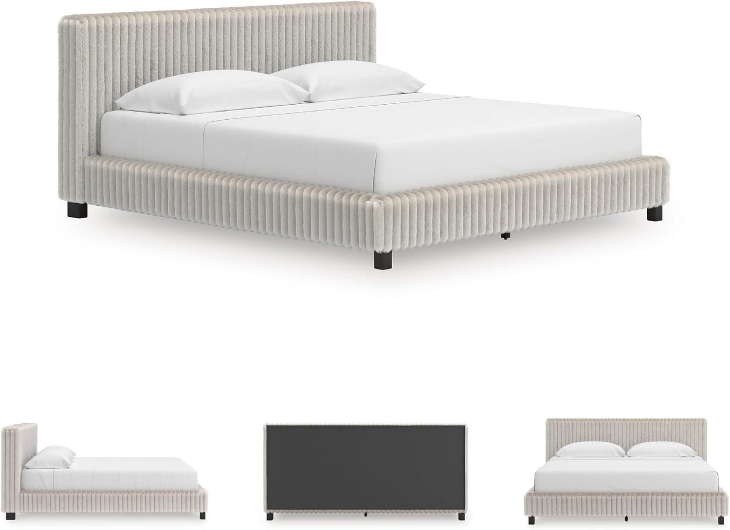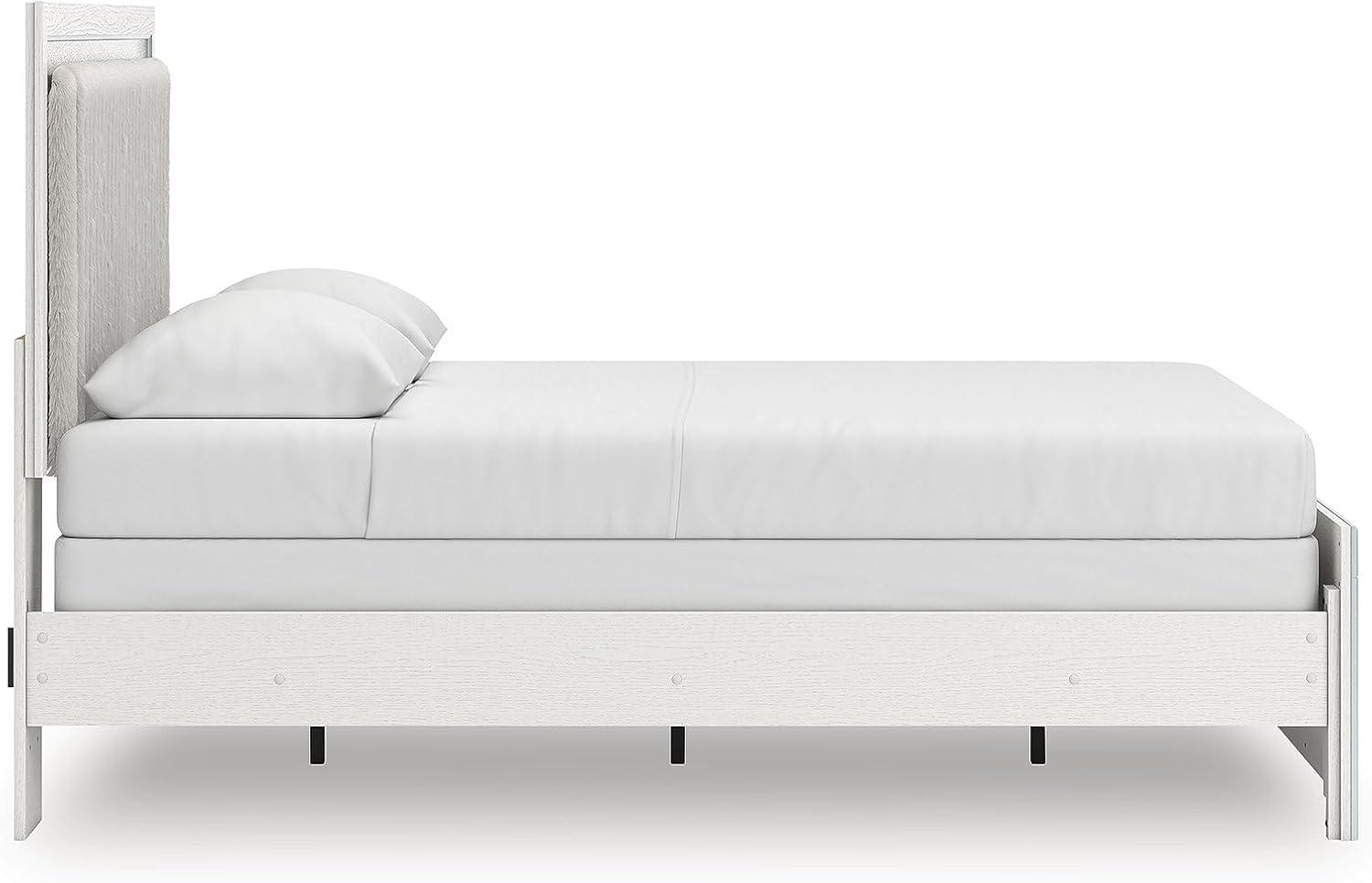 Signature Design by Ashley Birmonton Glam Upholstered Panel Storage Bed, Foundation or Box Spring Needed, King, White(White)