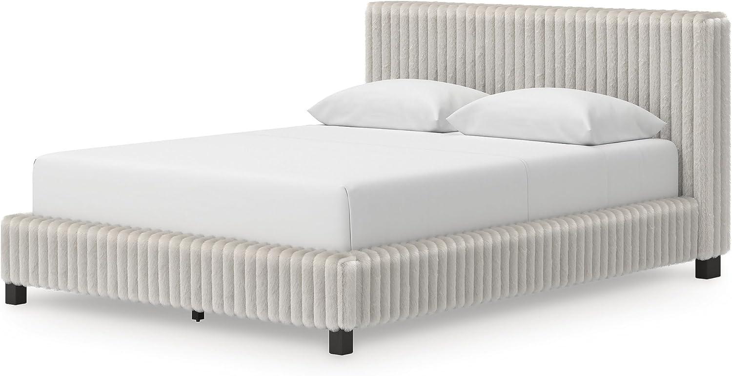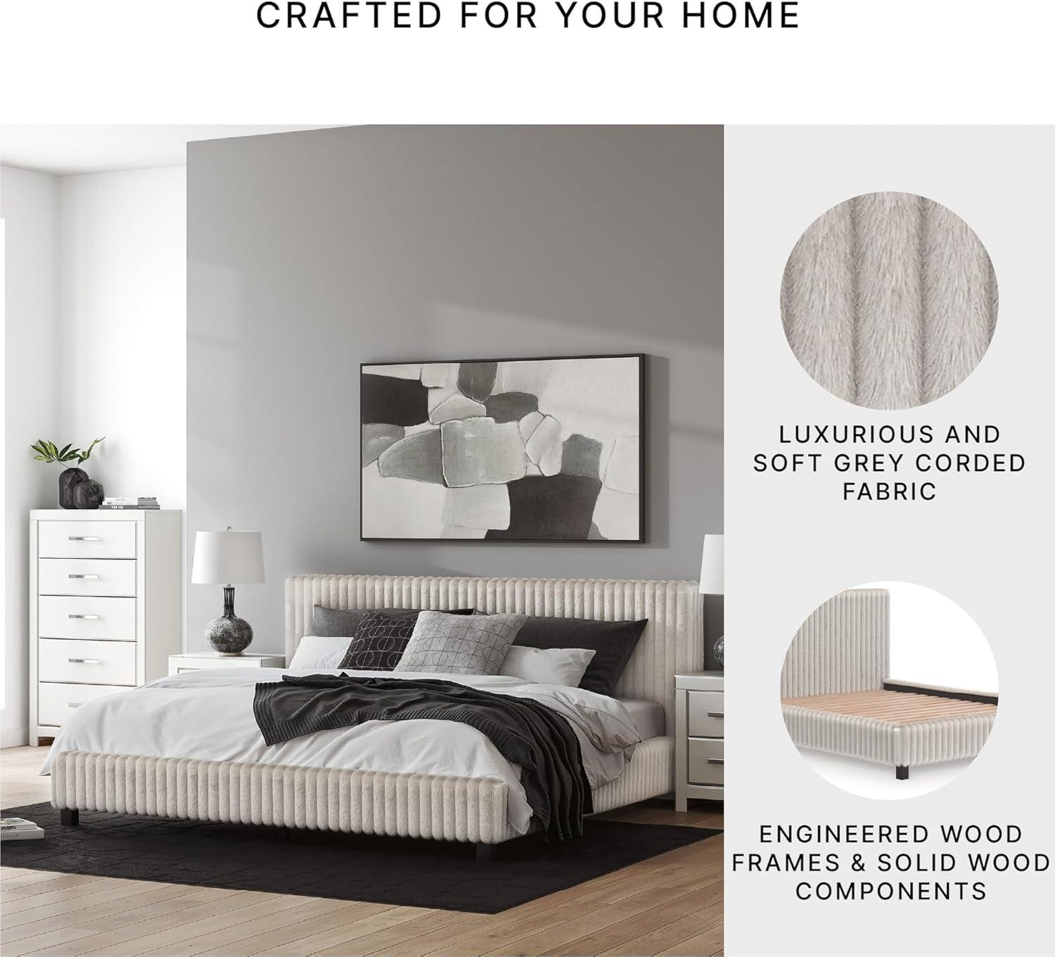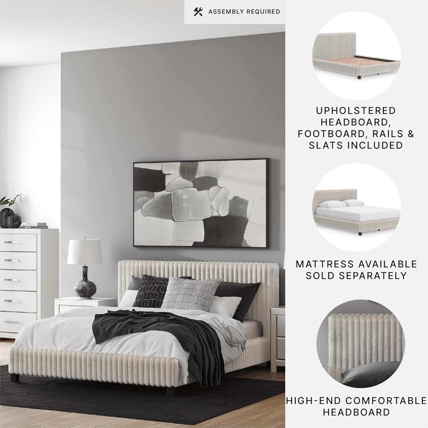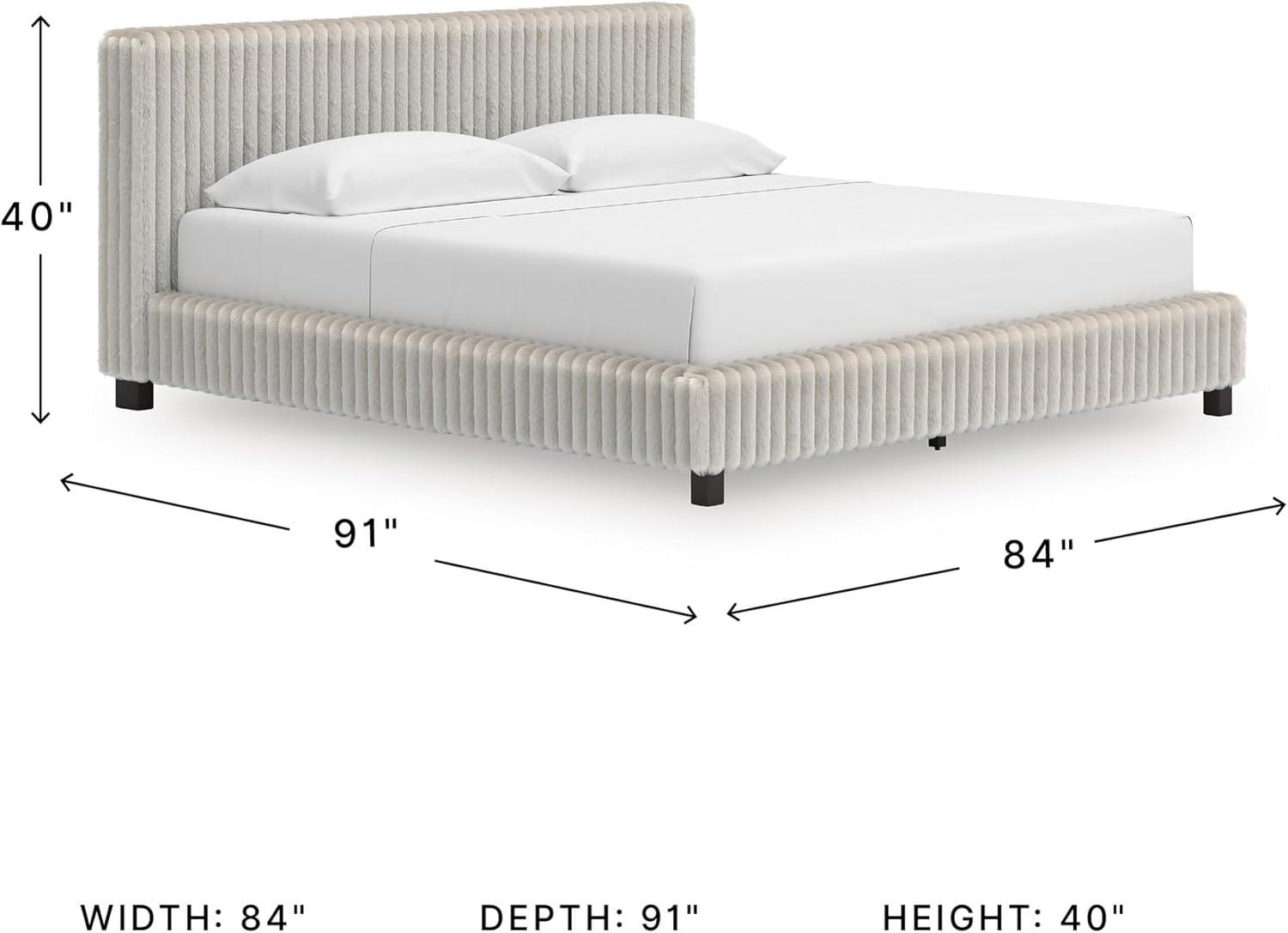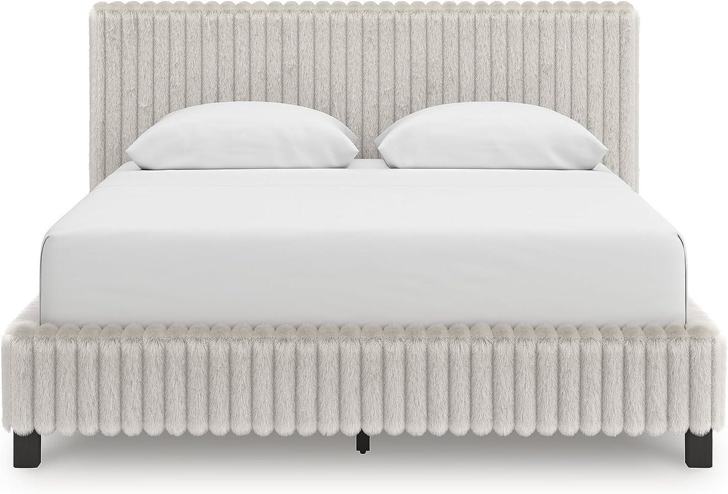 Signature Design by Ashley Birmonton Glam Upholstered Panel Storage Bed, Foundation or Box Spring Needed, King, White(White)