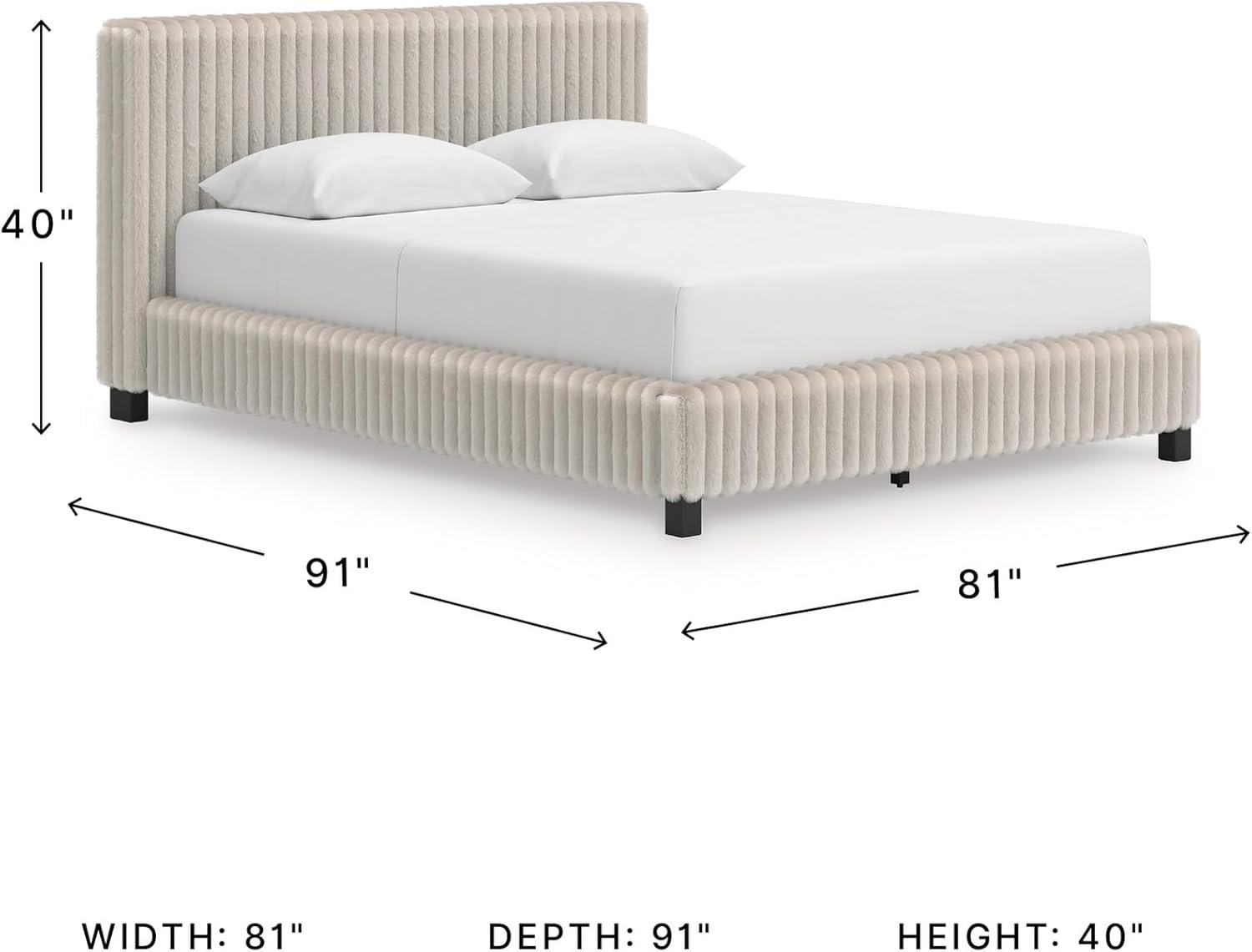 DIMENSIONS: Measures 80″ W x 85″ D x 53″ H. Includes upholstered panel headboard, storage footboard, platform rails and roll slats. Foundation/box spring not required; suits most adjustable bases. Mattress available, sold separately