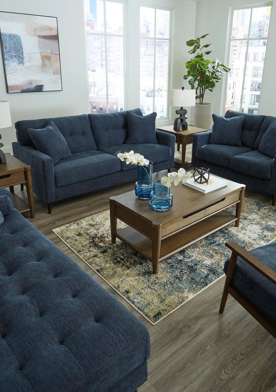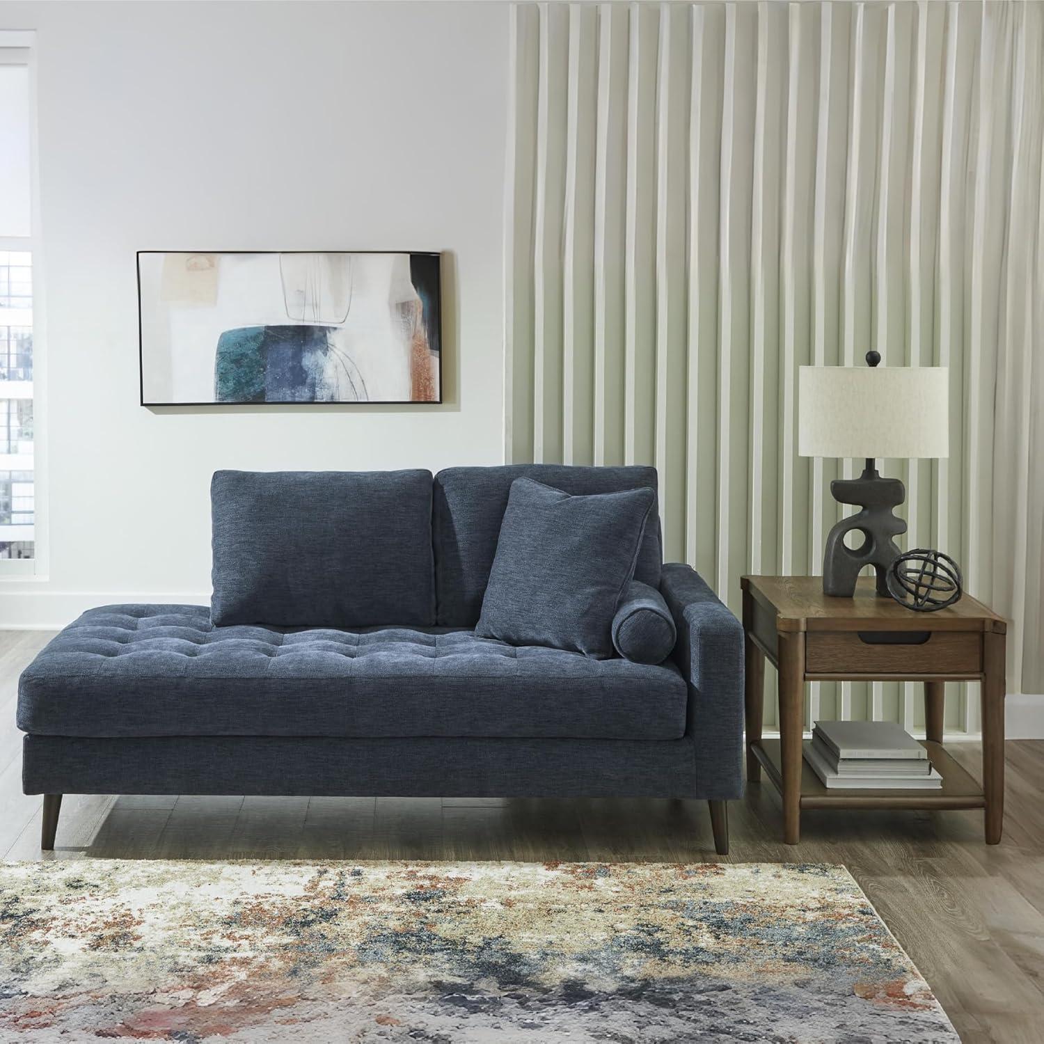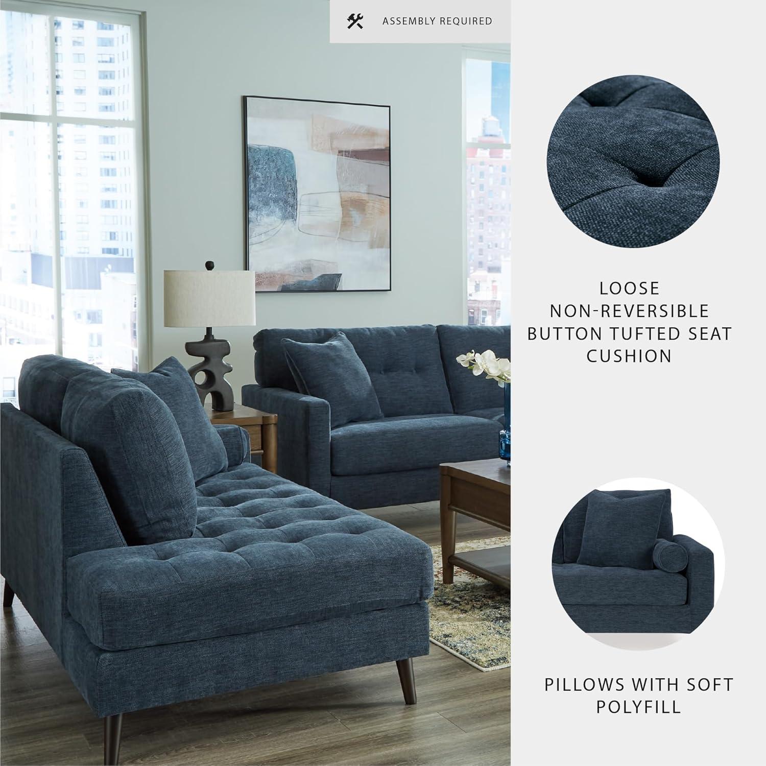 Signature Design by Ashley Bixler Classic Tufted Right-arm Facing Corner Chaise with Tapered Legs and Removable Cushions, Blue(Blue)