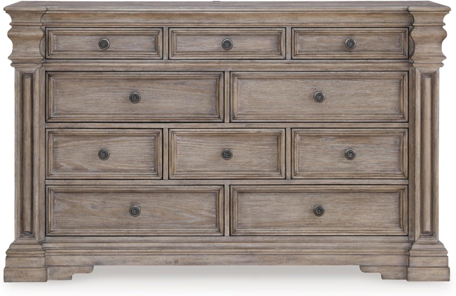 Signature Design by Ashley Blairhurst Traditional 10-Drawer Dresser with Felt-Lined Top Drawer and Safety Stop, Gray & Light Brown