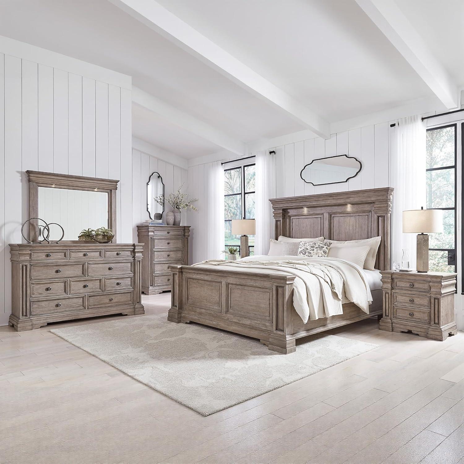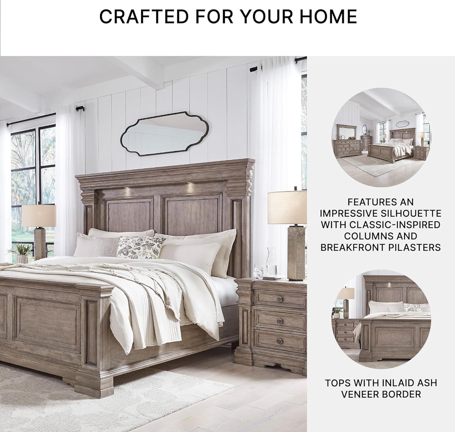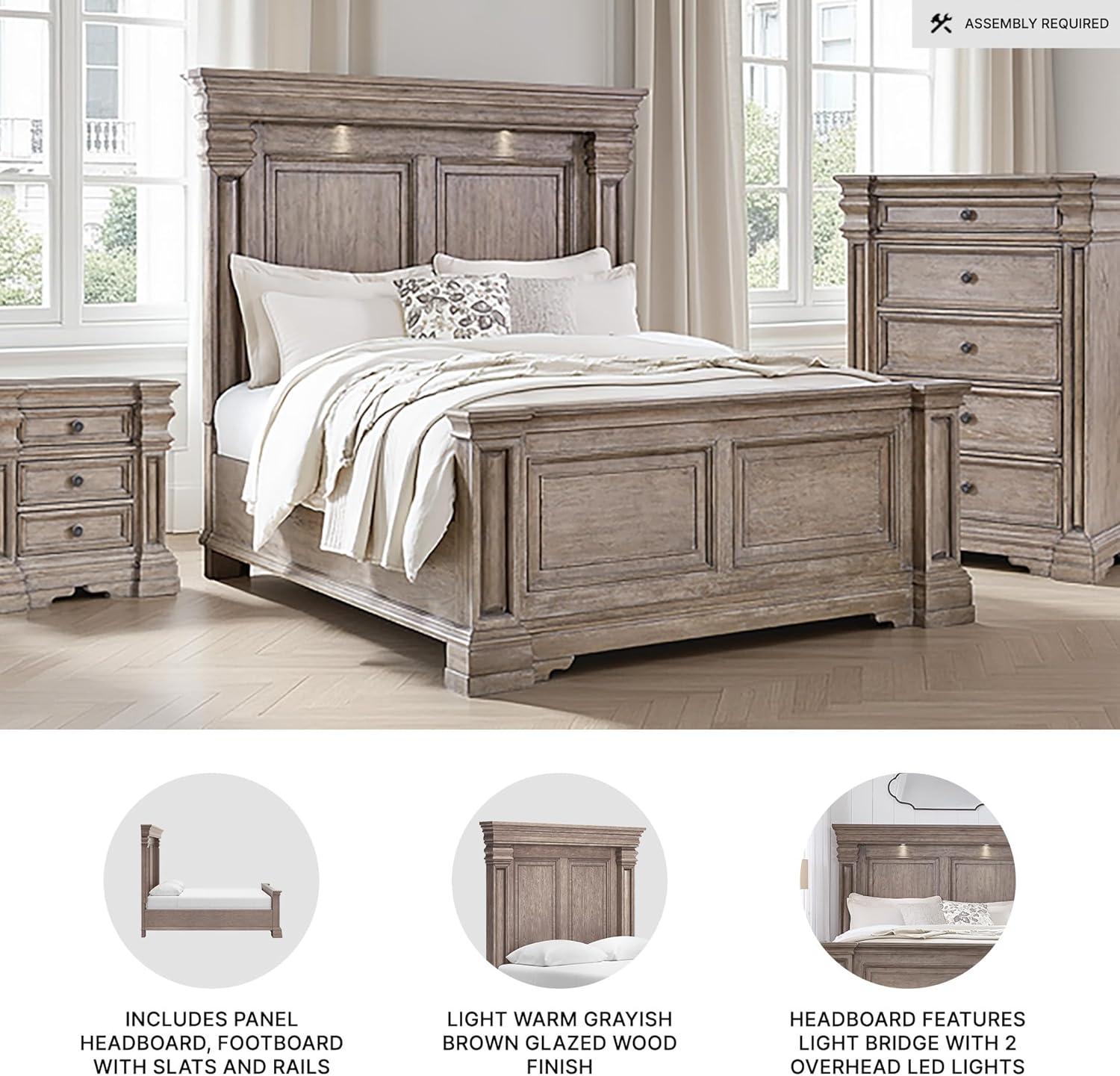 Signature Design by Ashley Blairhurst Traditional King Panel Bed with LED Lights, Foundation or Box Spring Needed, Light Brown(Queen Panel Bed)
