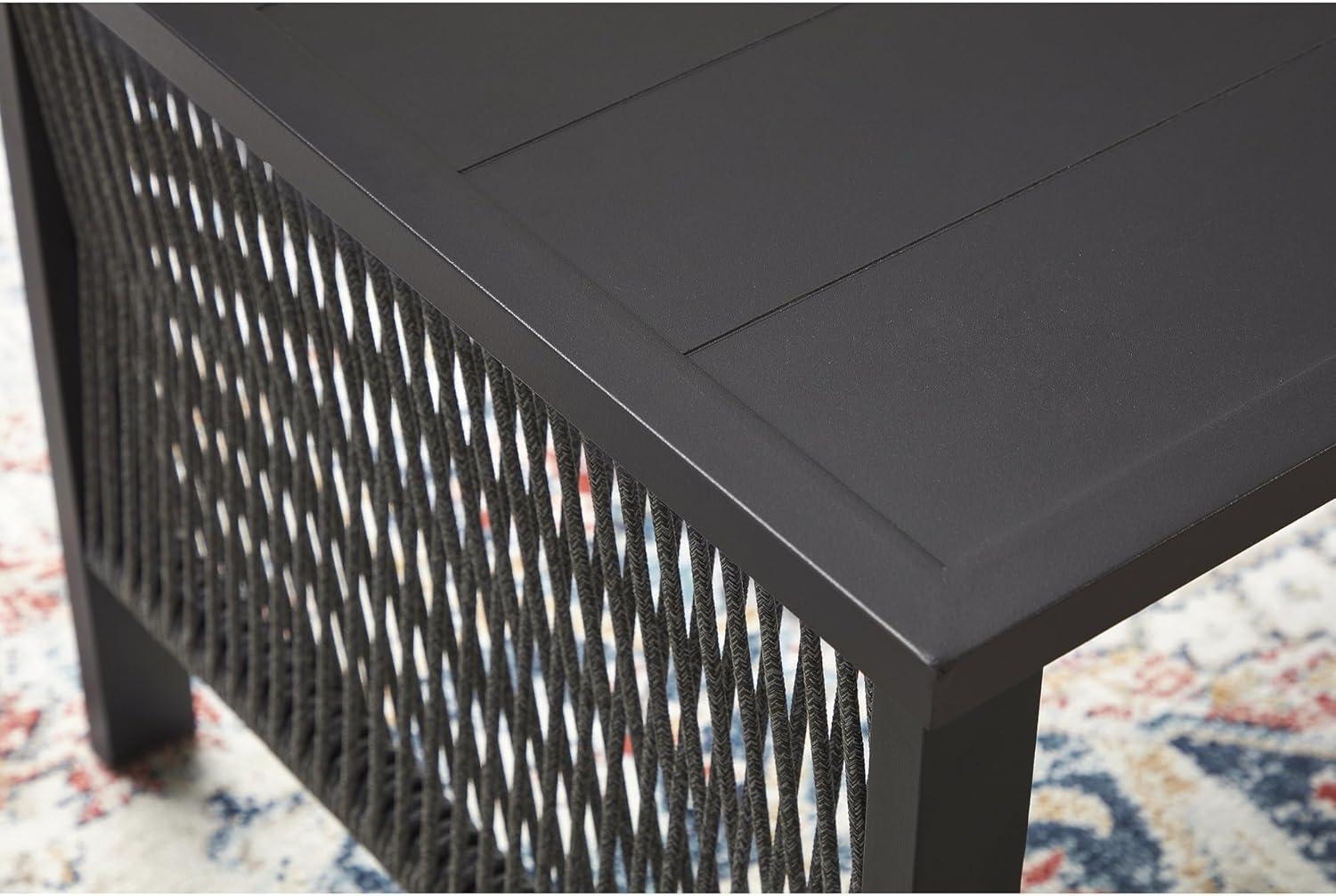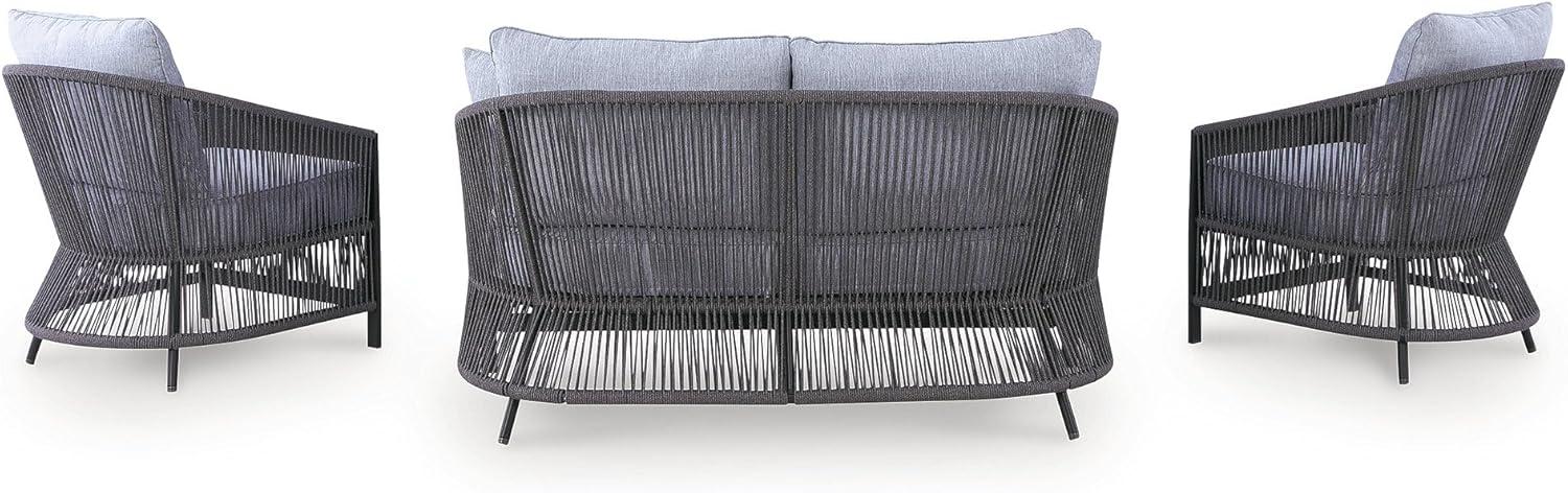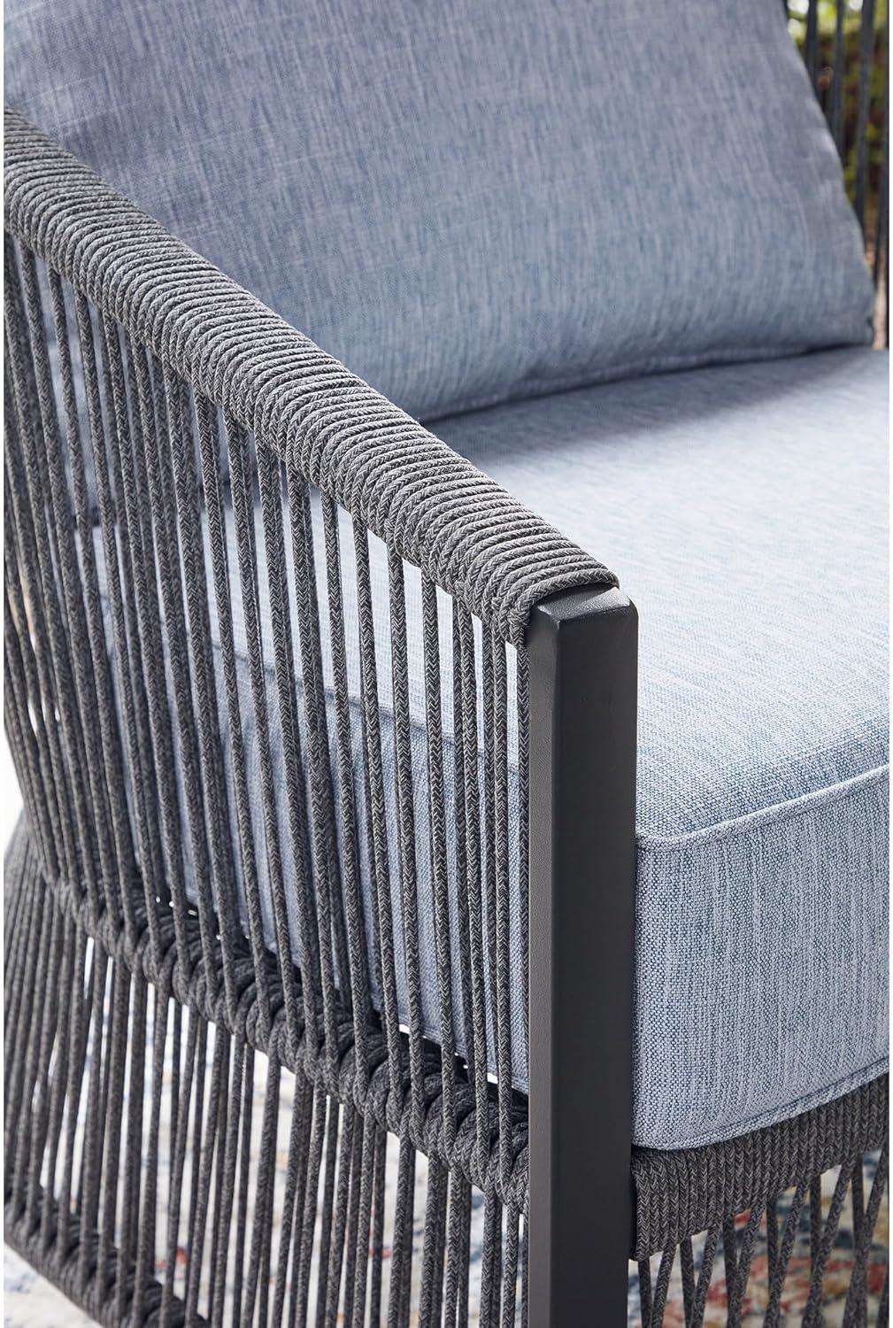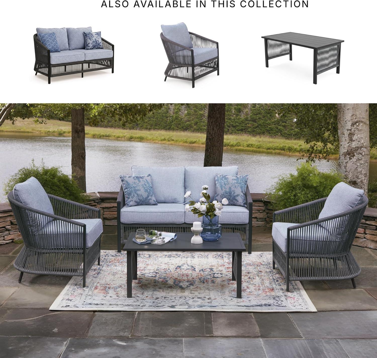 Signature Design by Ashley Bodega Island Contemporary Weather Resistant Outdoor Loveseat/Chairs/Table Set with 2 Accent Pillows, Set of 4, Light Gray