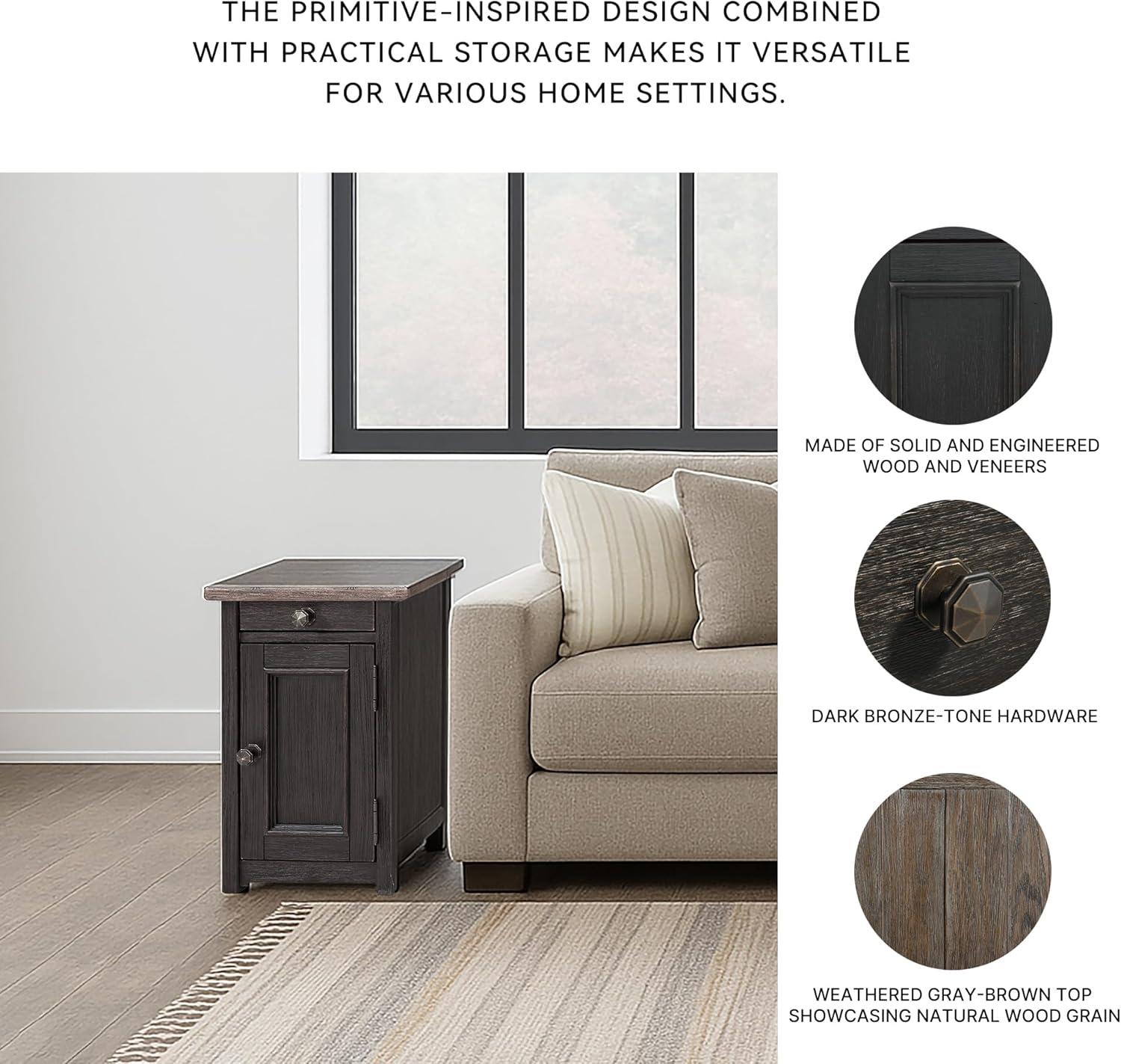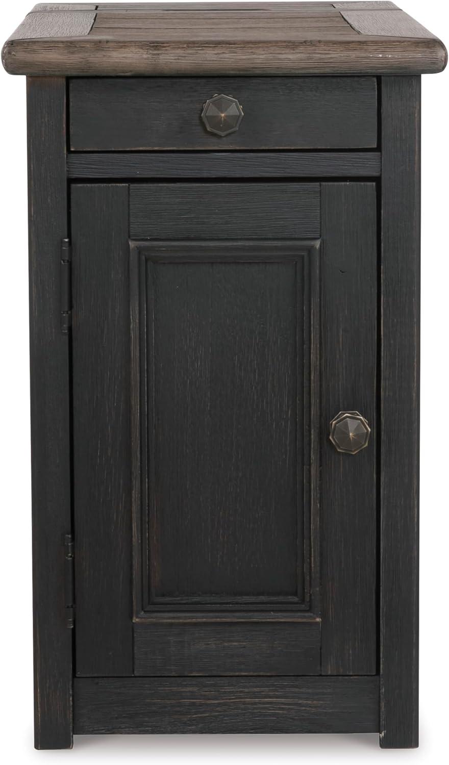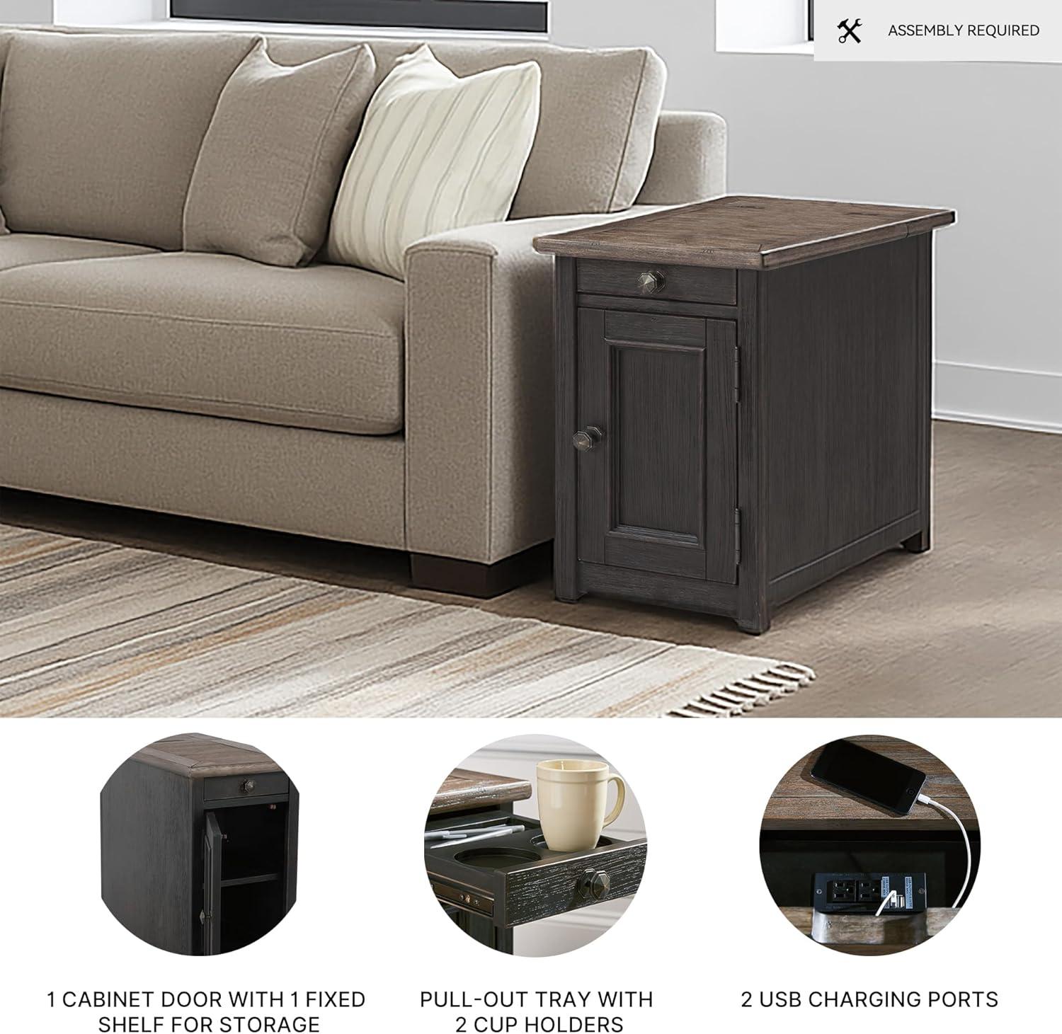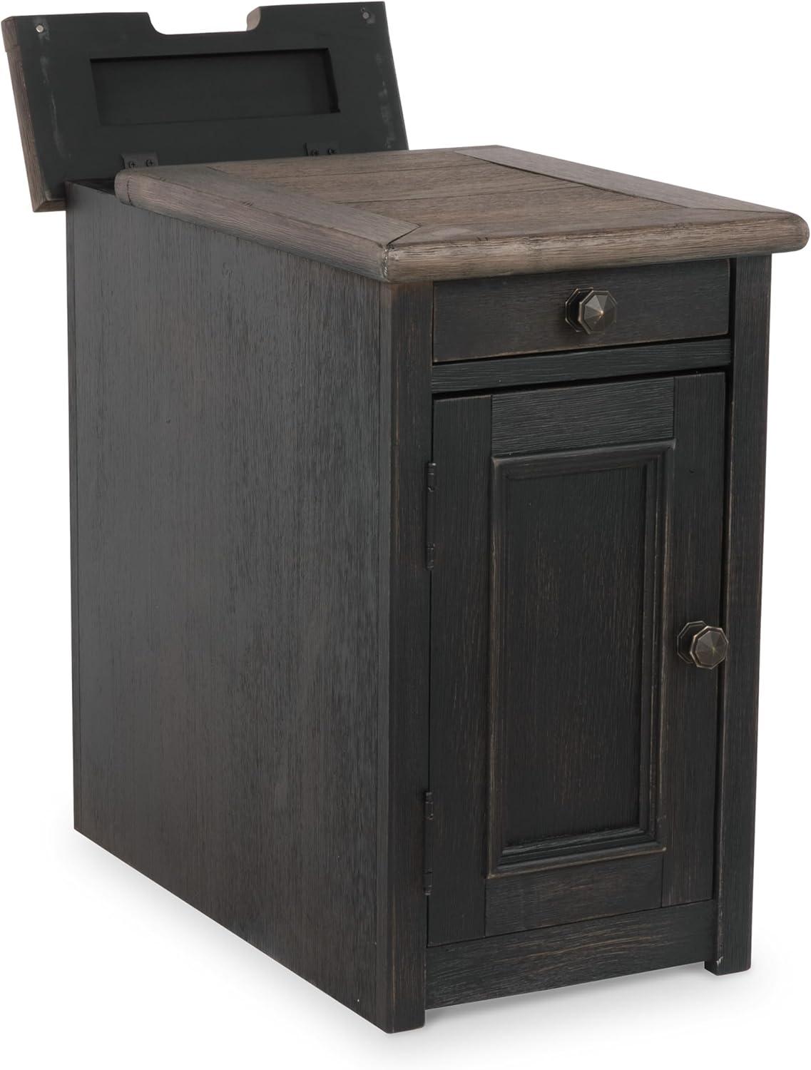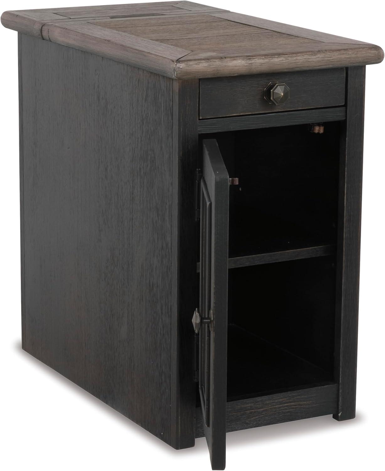 Signature Design by Ashley Bolanburg Farmhouse Chair Side End Table with Outlets and USB Ports, Antique Cream & Brown(Blackish Brown)