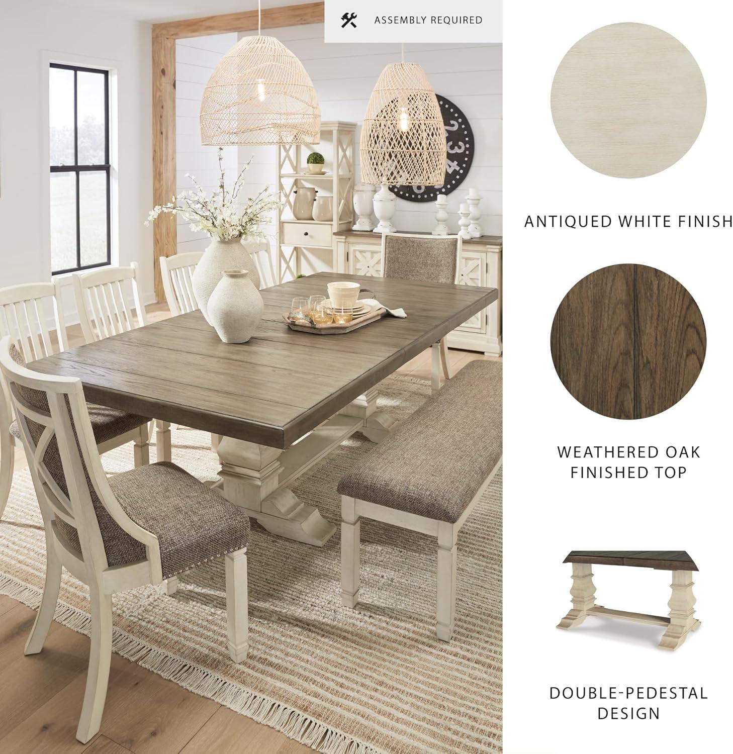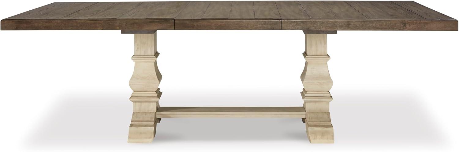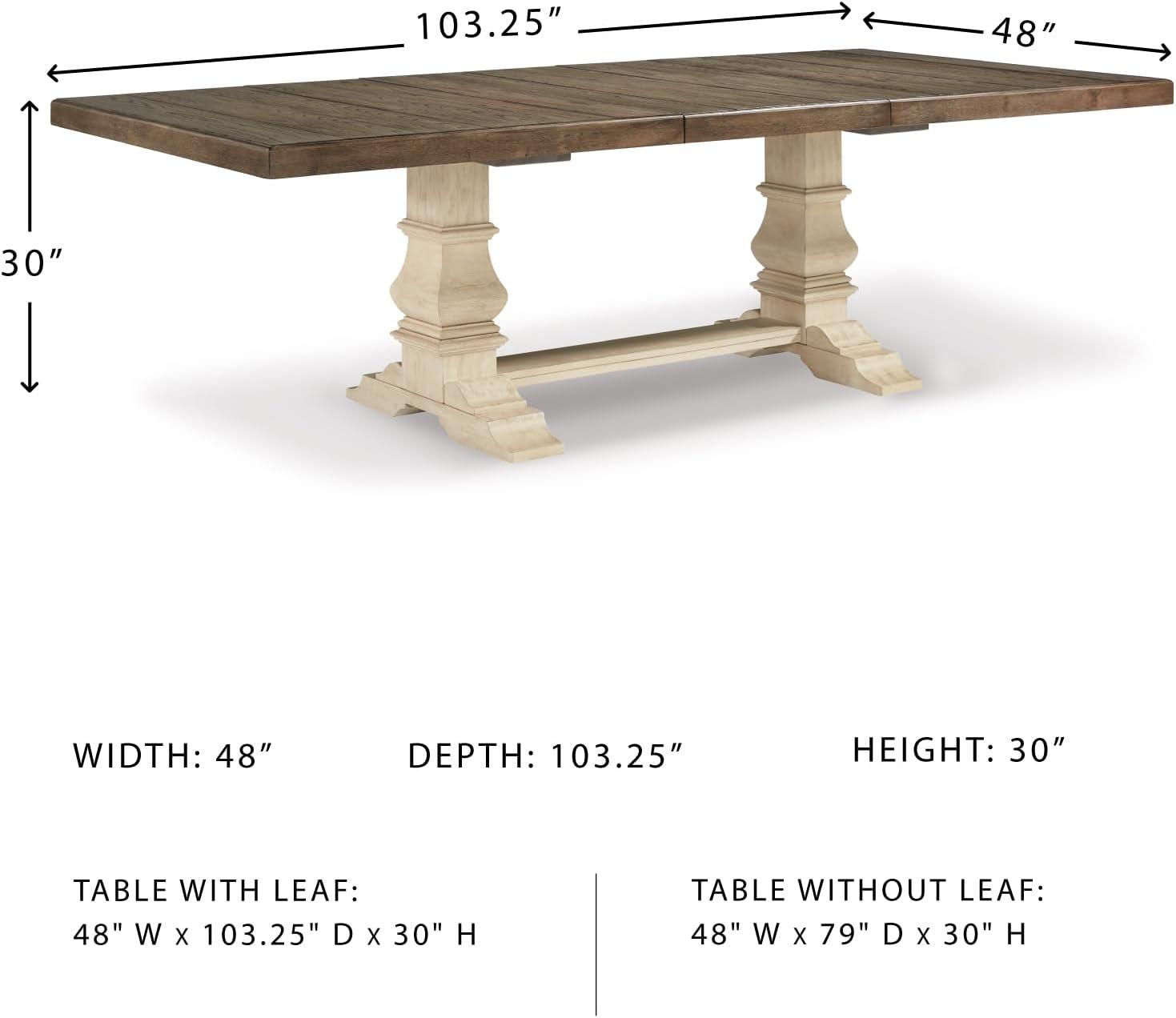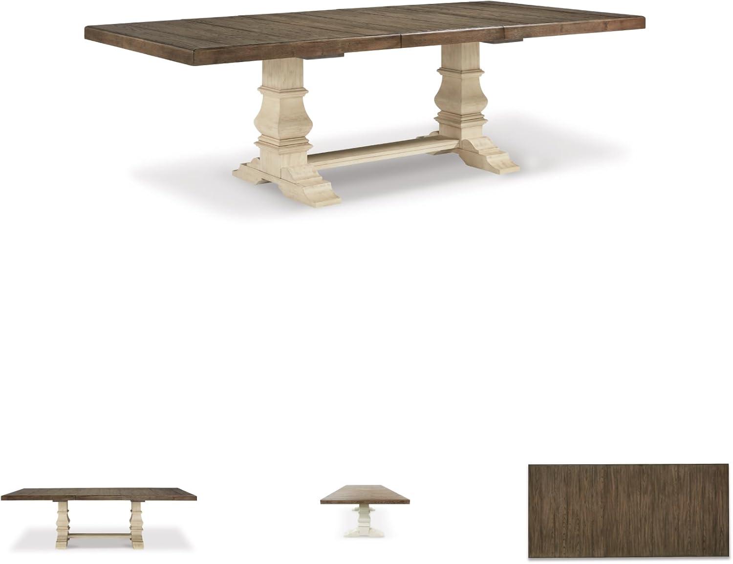Signature Design by Ashley Bolanburg Farmhouse Extension Dining Table with Removable Center Leaf and Trestle Base, Dark Brown & White(Antique White)