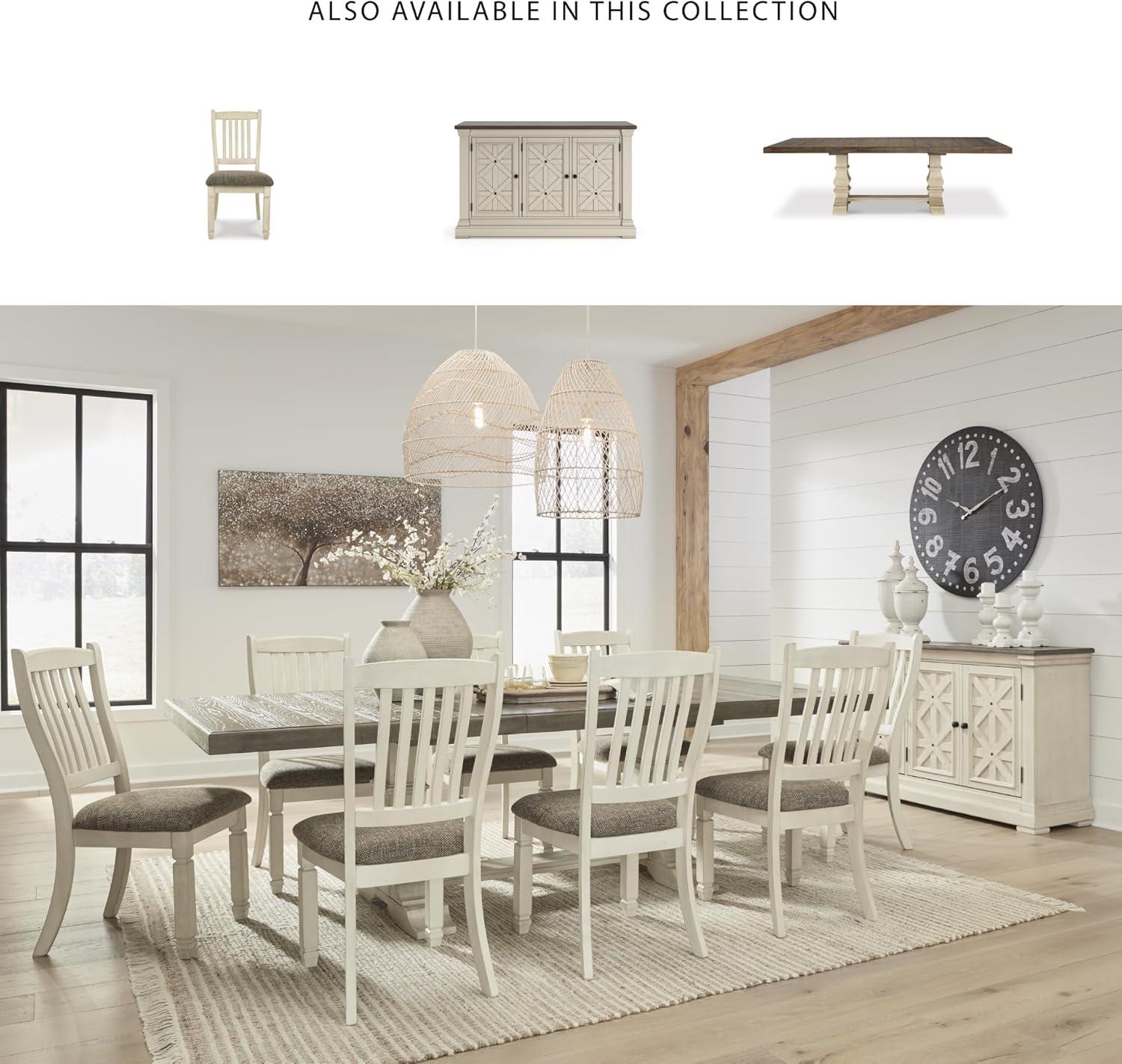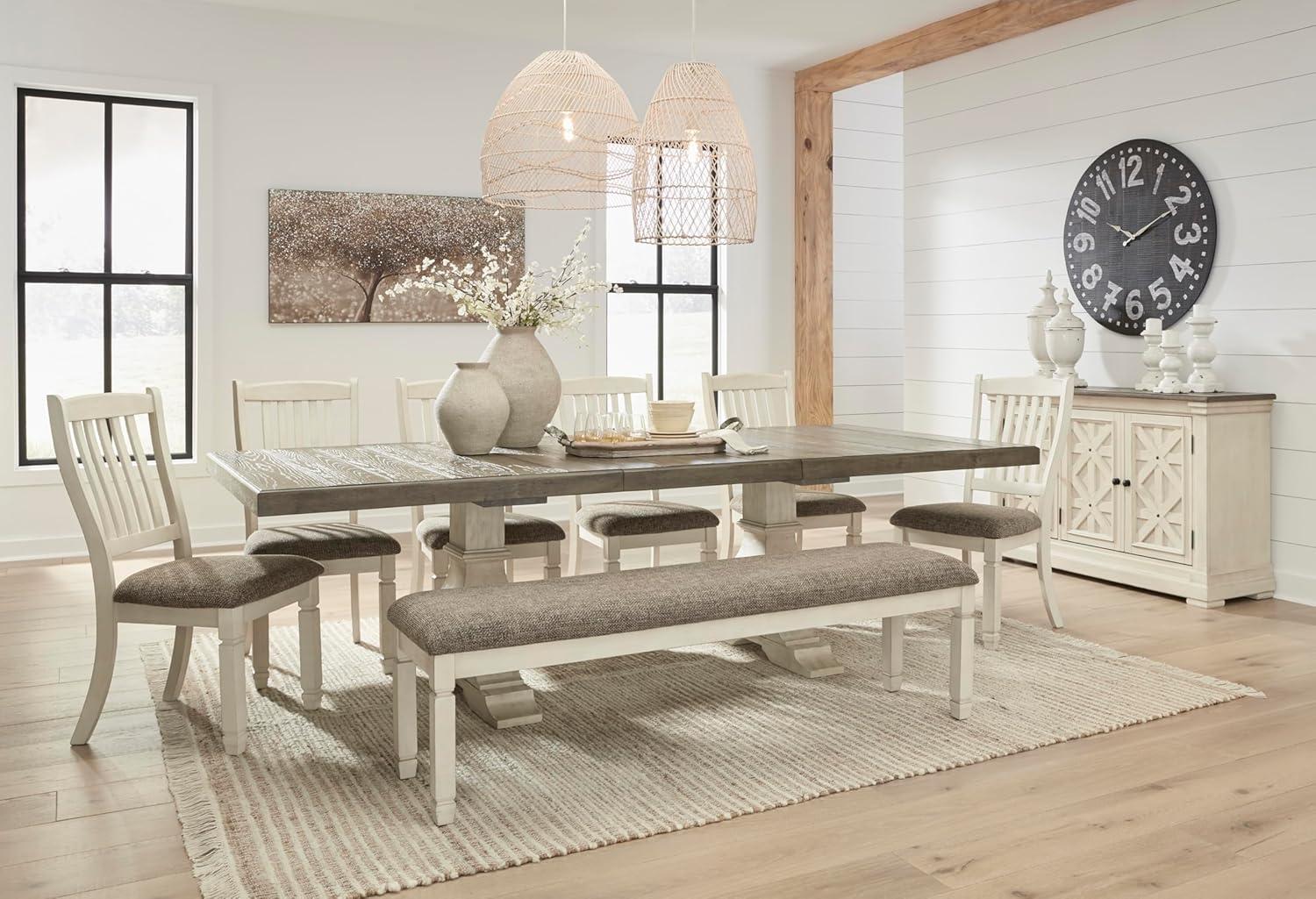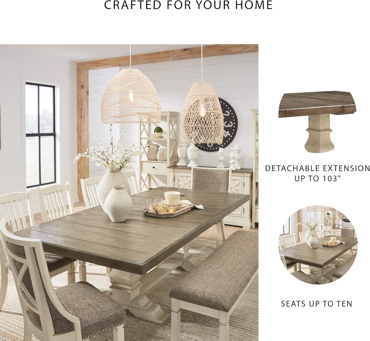 Signature Design by Ashley Bolanburg Farmhouse Extension Dining Table with Removable Center Leaf and Trestle Base, Dark Brown & White(Antique White)