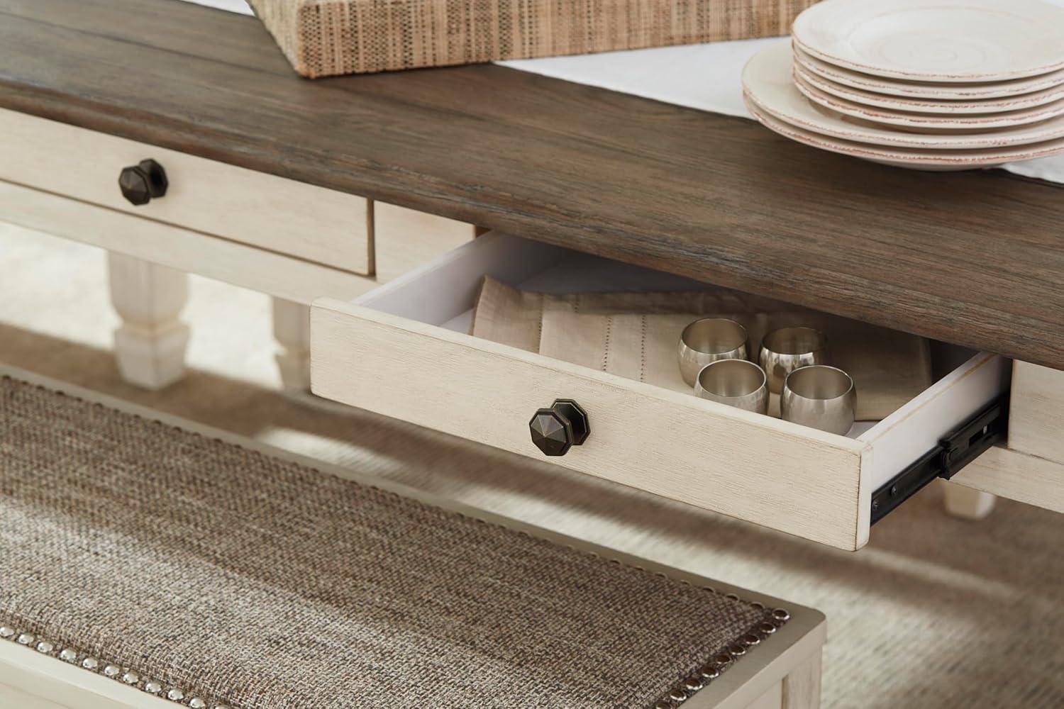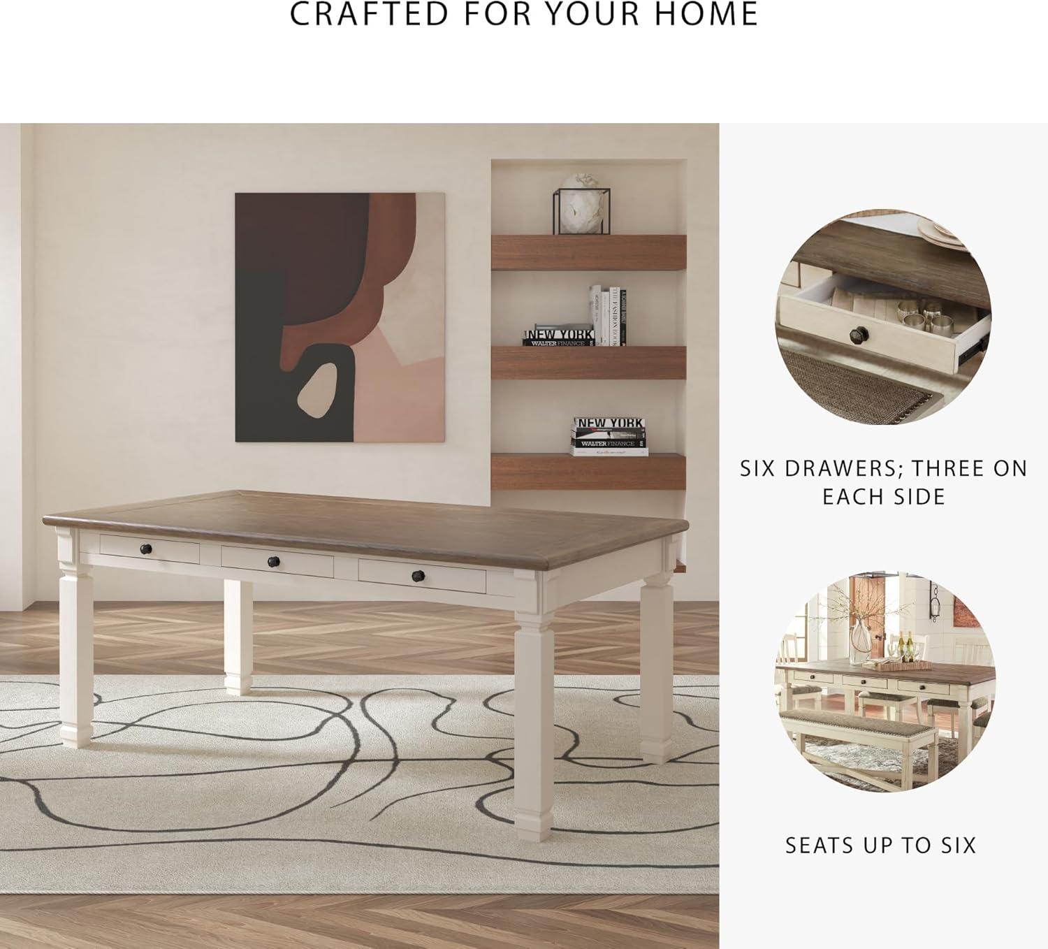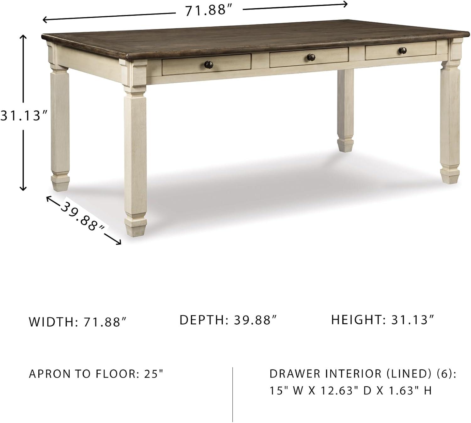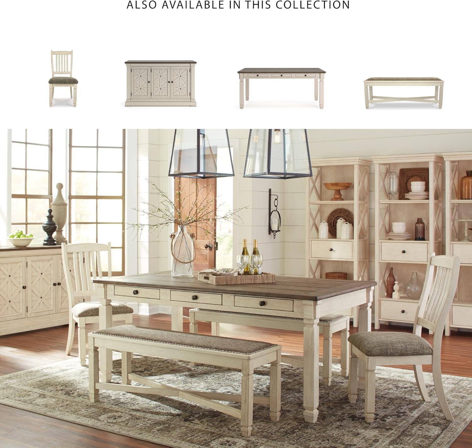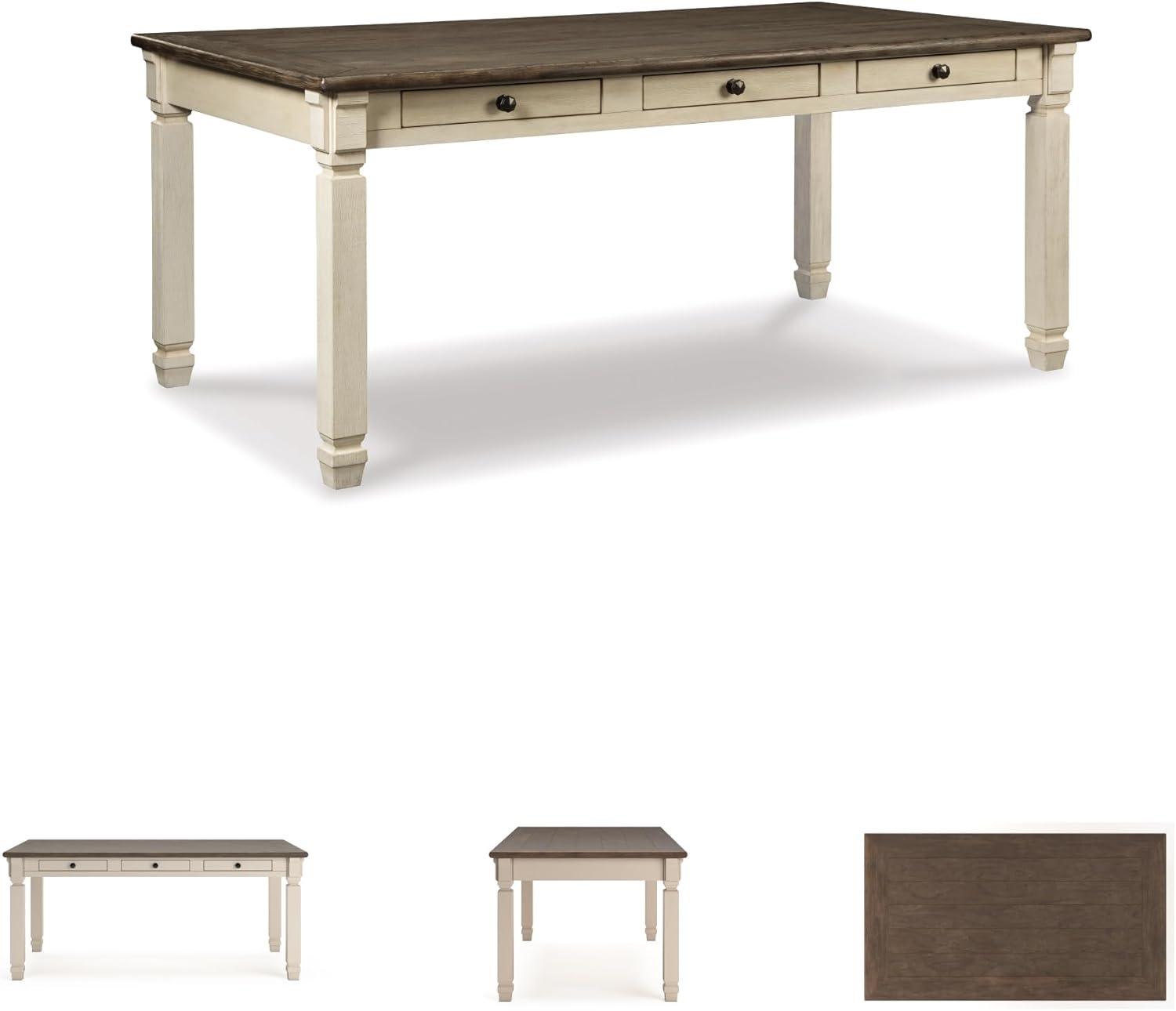 Signature Design by Ashley Bolanburg Farmhouse Extension Dining Table with Removable Center Leaf and Trestle Base, Dark Brown & White(Whitewash)