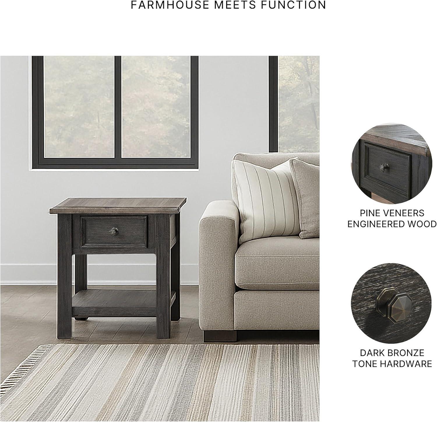 Signature Design by Ashley Bolanburg Farmhouse Square Two Tone End Table, Antique Cream(Blackish Brown)
