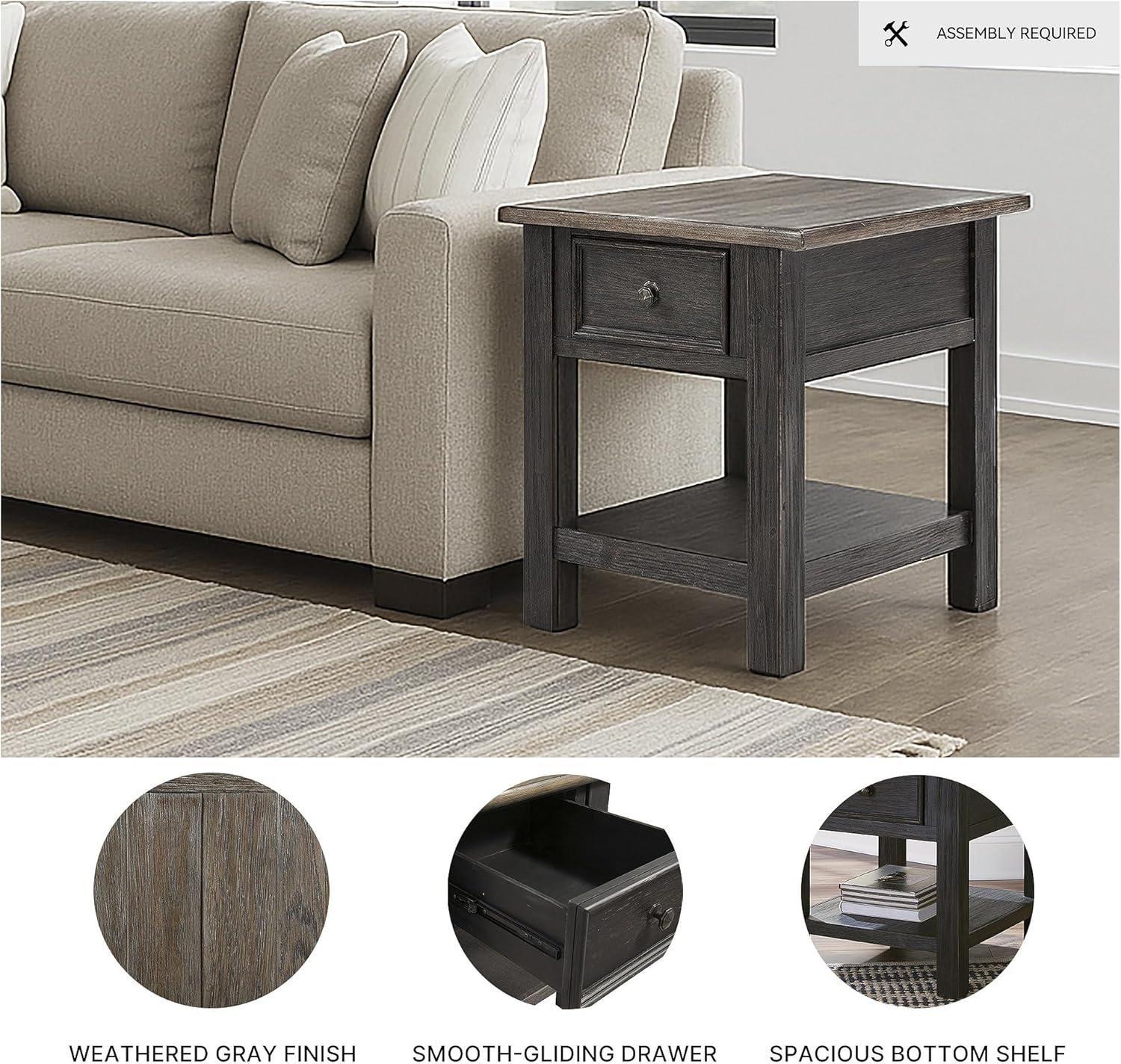 HANDSOMELY CRAFTED: Made of veneers, wood and engineered wood. Designed with a two-tone finish, plank-style weathered brown oak tabletop and smooth-gliding drawer