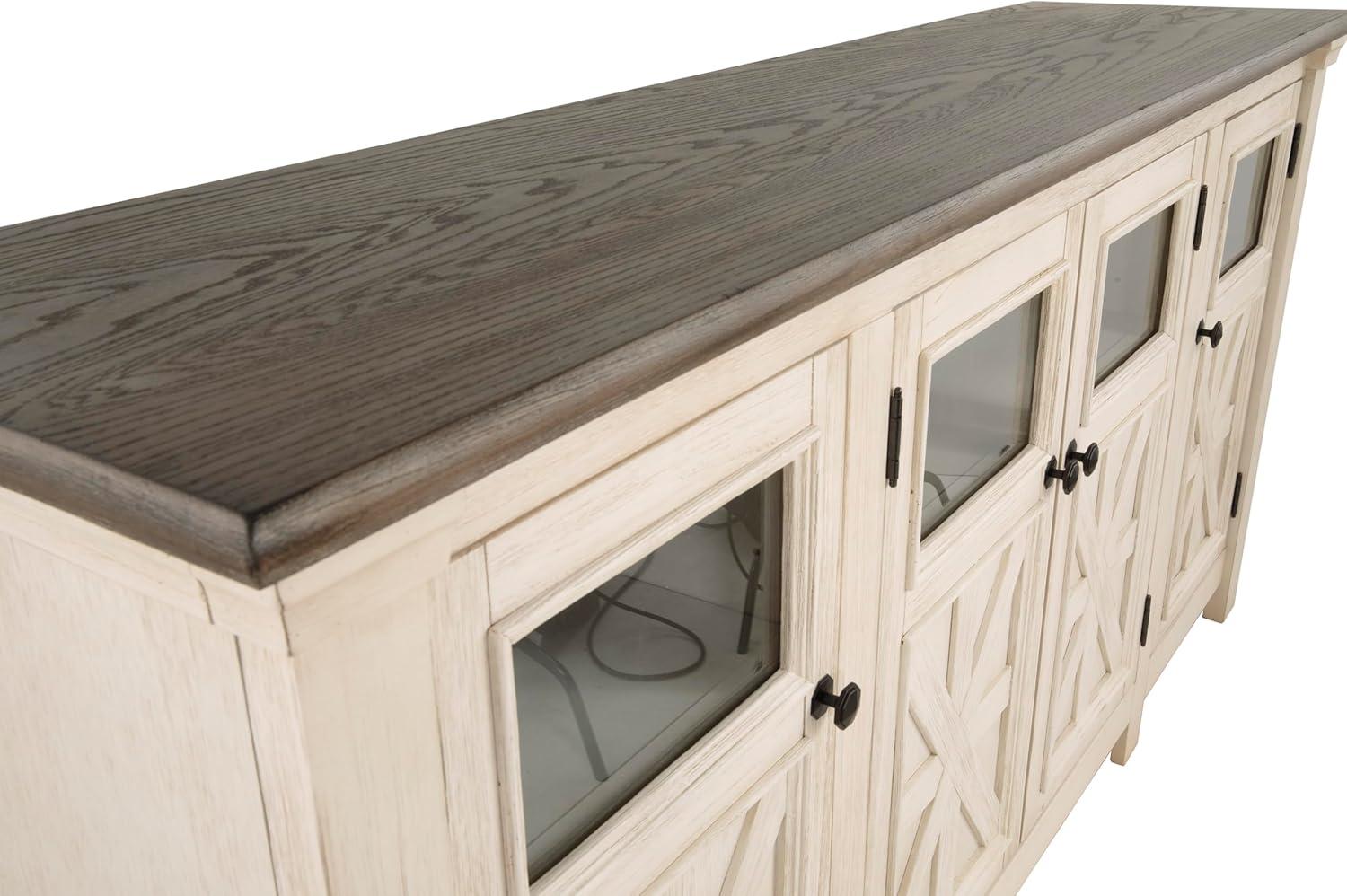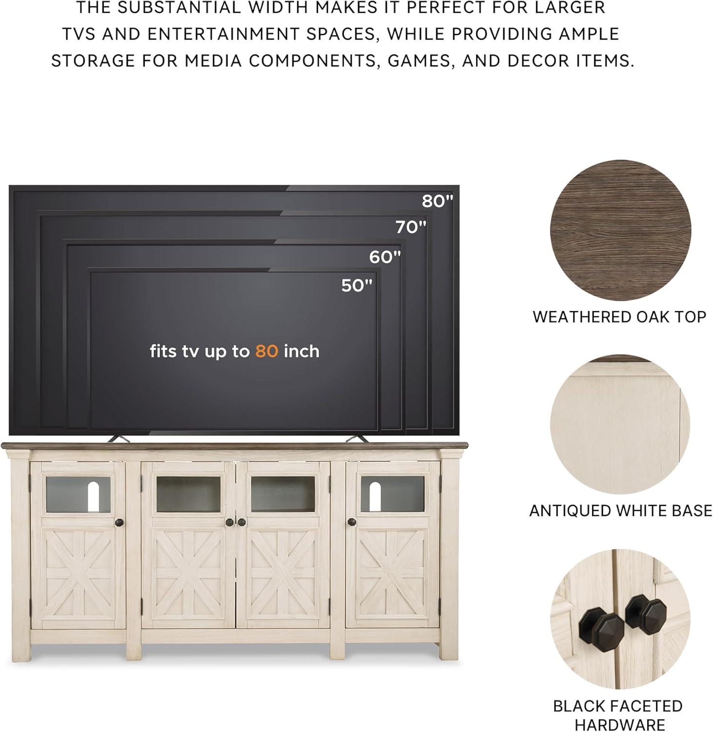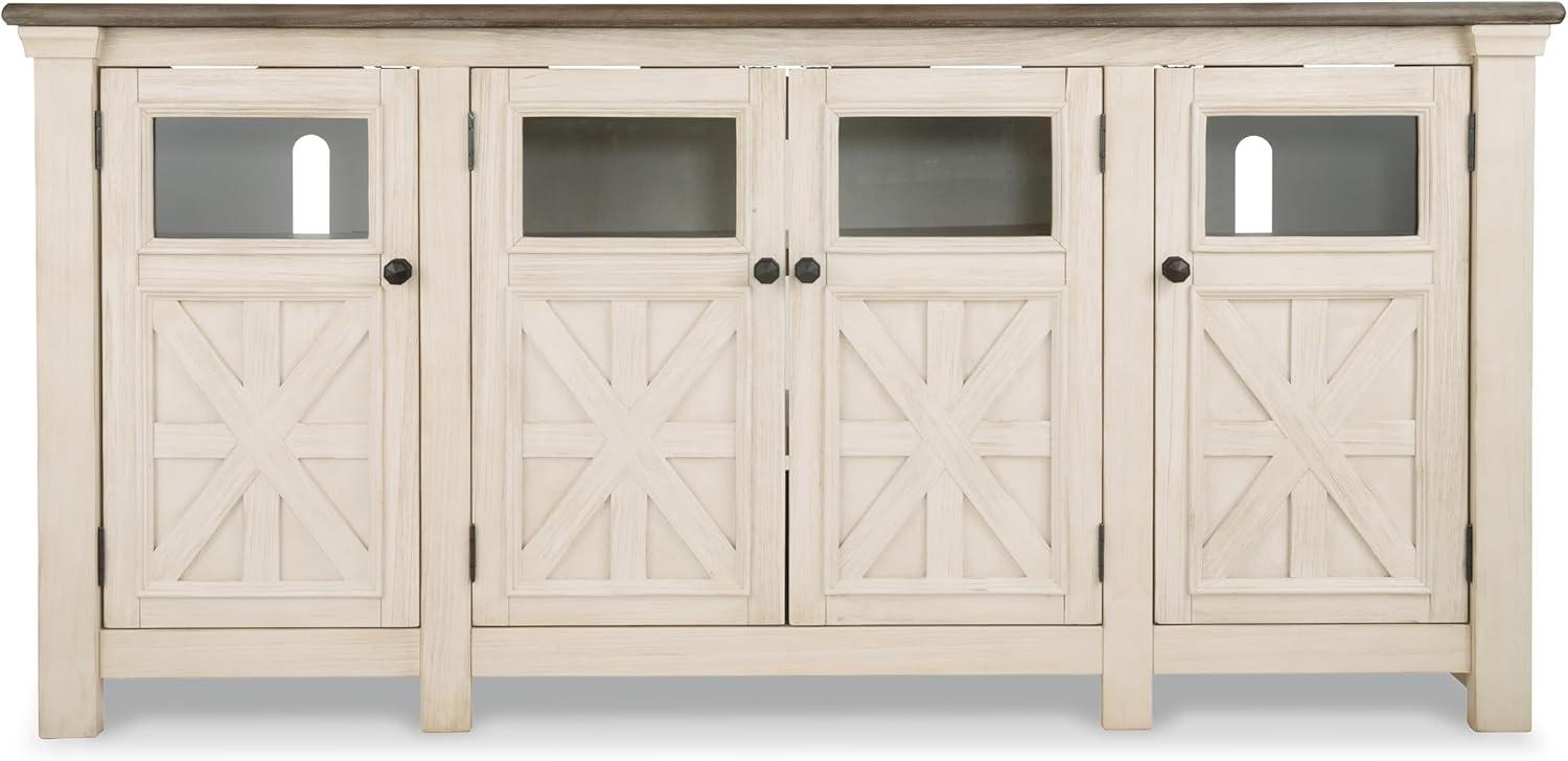 Signature Design by Ashley Bolanburg Farmhouse TV Stand Fits TVs up to 58″, 2 Cabinet Doors and 4 Adjustable Storage Shelves, Whitewash & Light Brown(X-Large)