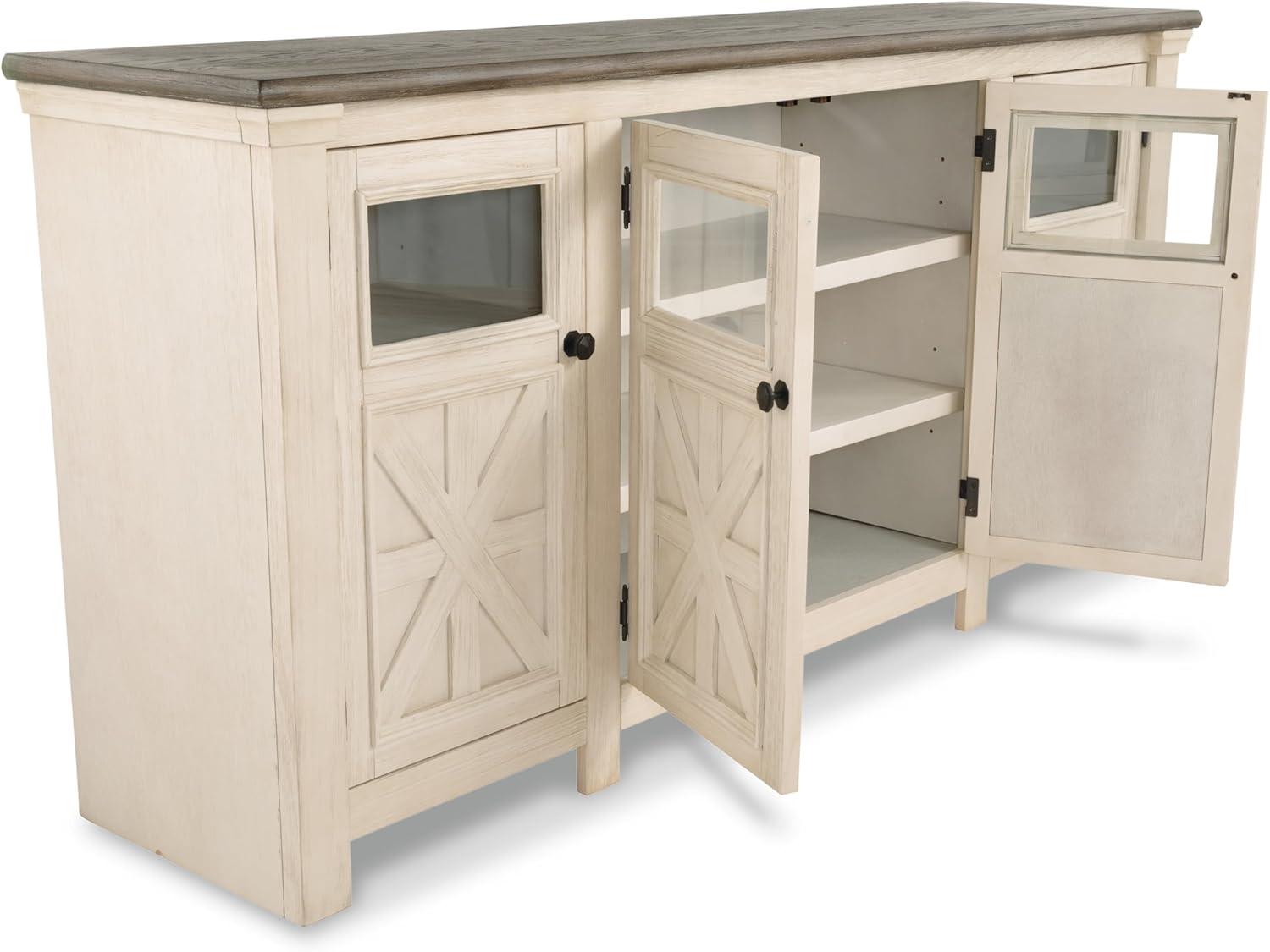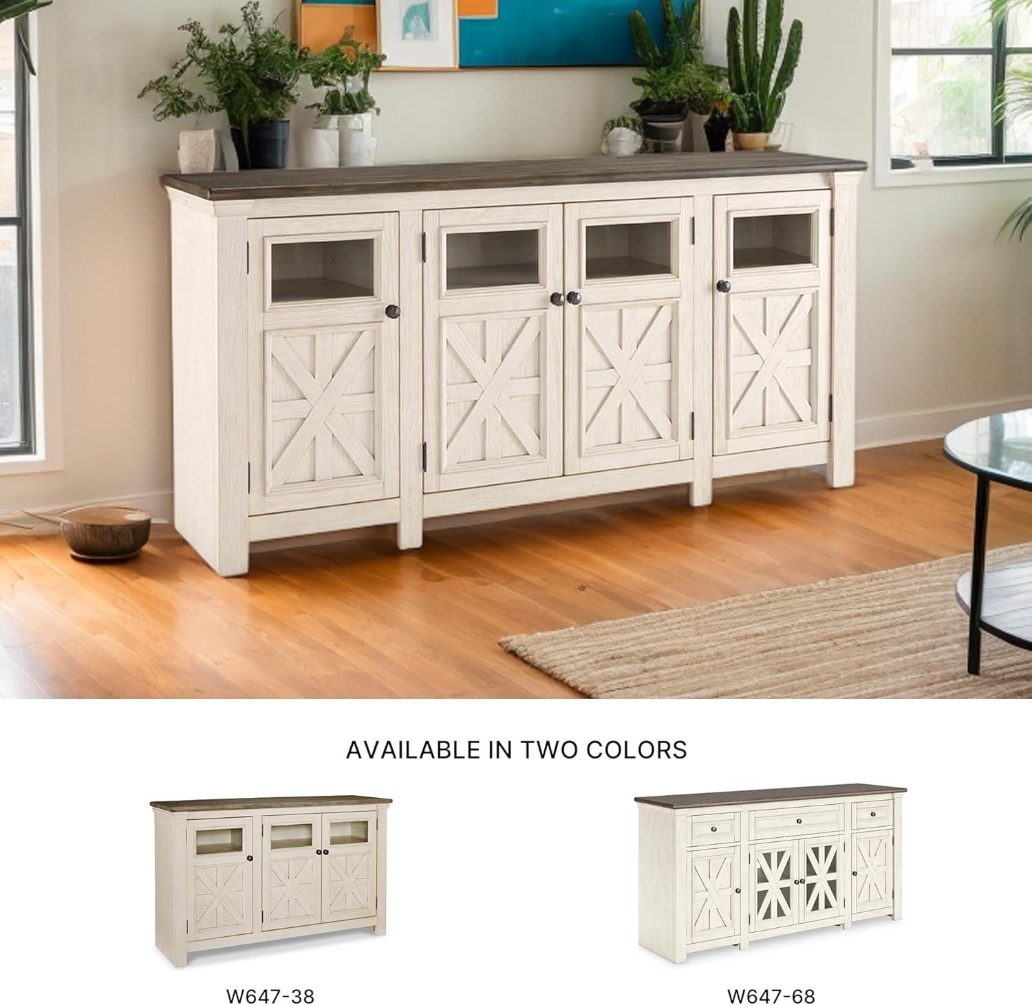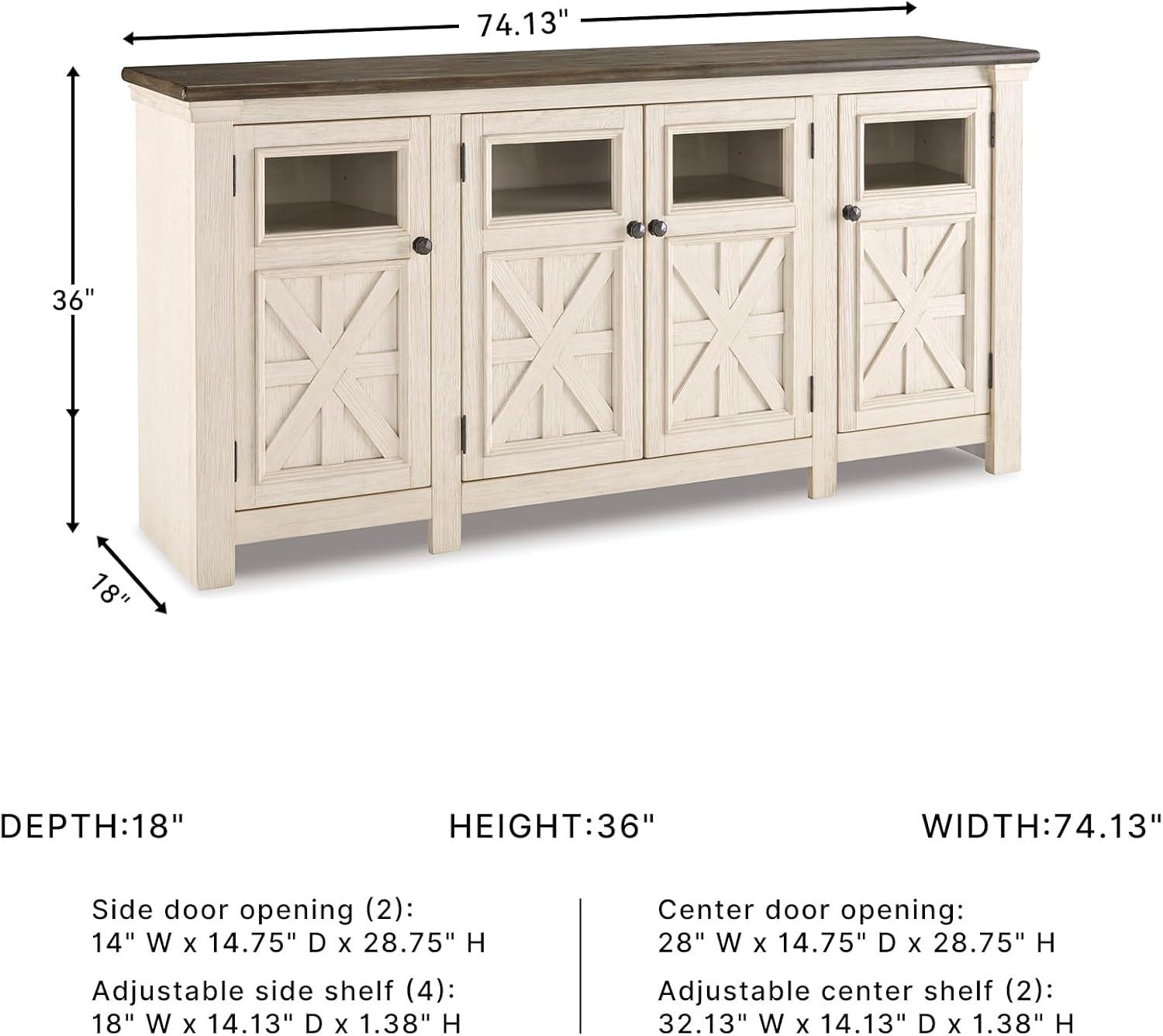 Signature Design by Ashley Bolanburg Farmhouse TV Stand Fits TVs up to 58″, 2 Cabinet Doors and 4 Adjustable Storage Shelves, Whitewash & Light Brown(X-Large)