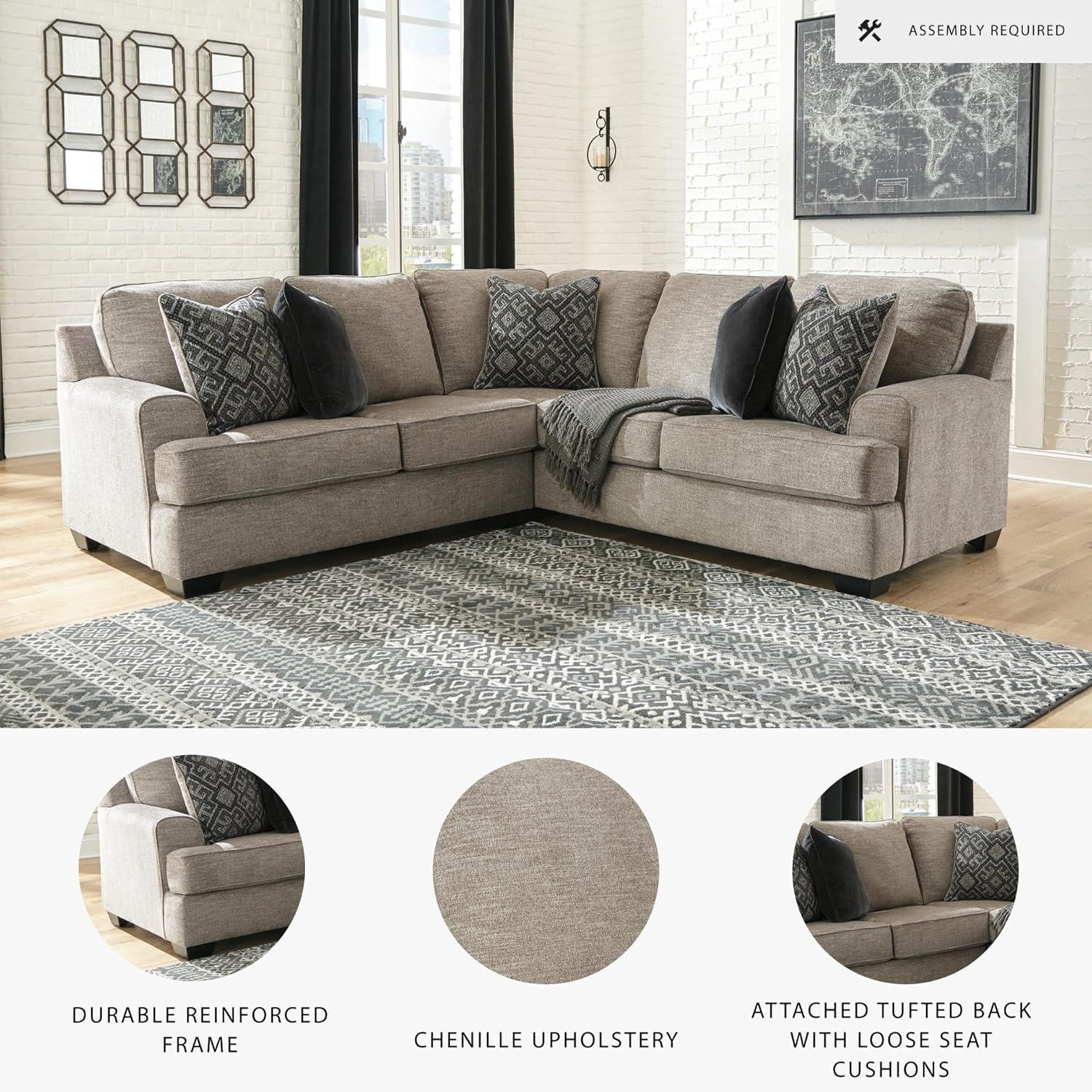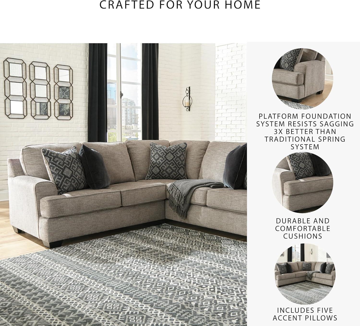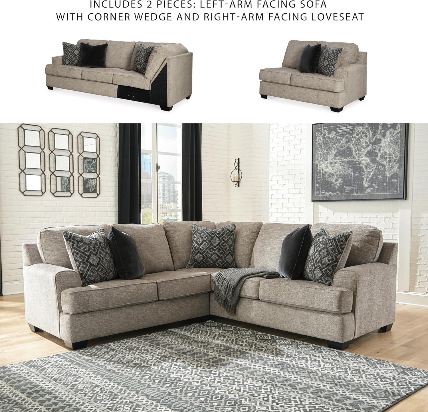 Signature Design by Ashley Bovarian Casual L-Shaped 2-Piece Sectional with Loose Seat Cushions and 5 Accent Pillows, Light Brown(2-Piece Sectional)