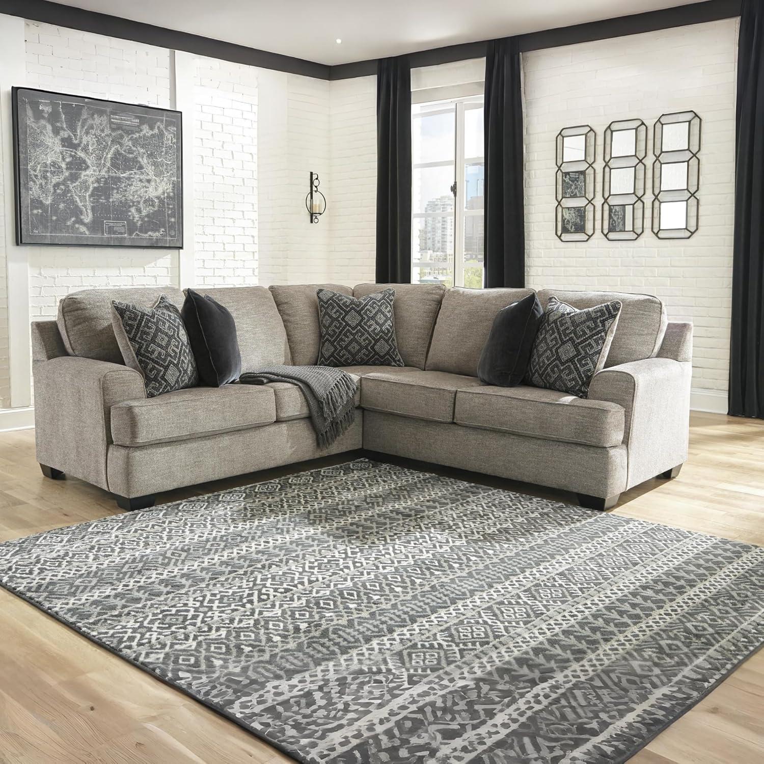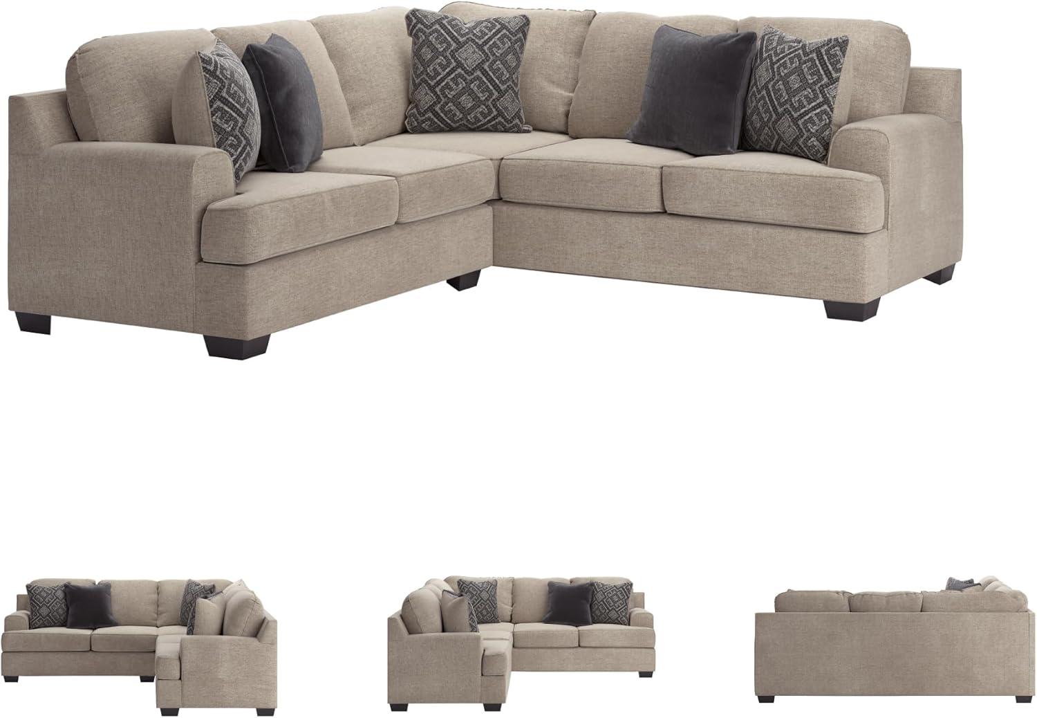 2-PIECE SECTIONAL: Whether your vision is clean contemporary or cozy modern farmhouse, this sectional in stone-tone neutral upholstery has the corner on style. Merging comfort with striking looks, it includes 5 accent pillows for feel-good allure