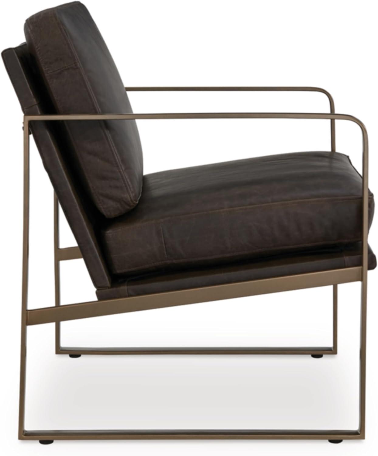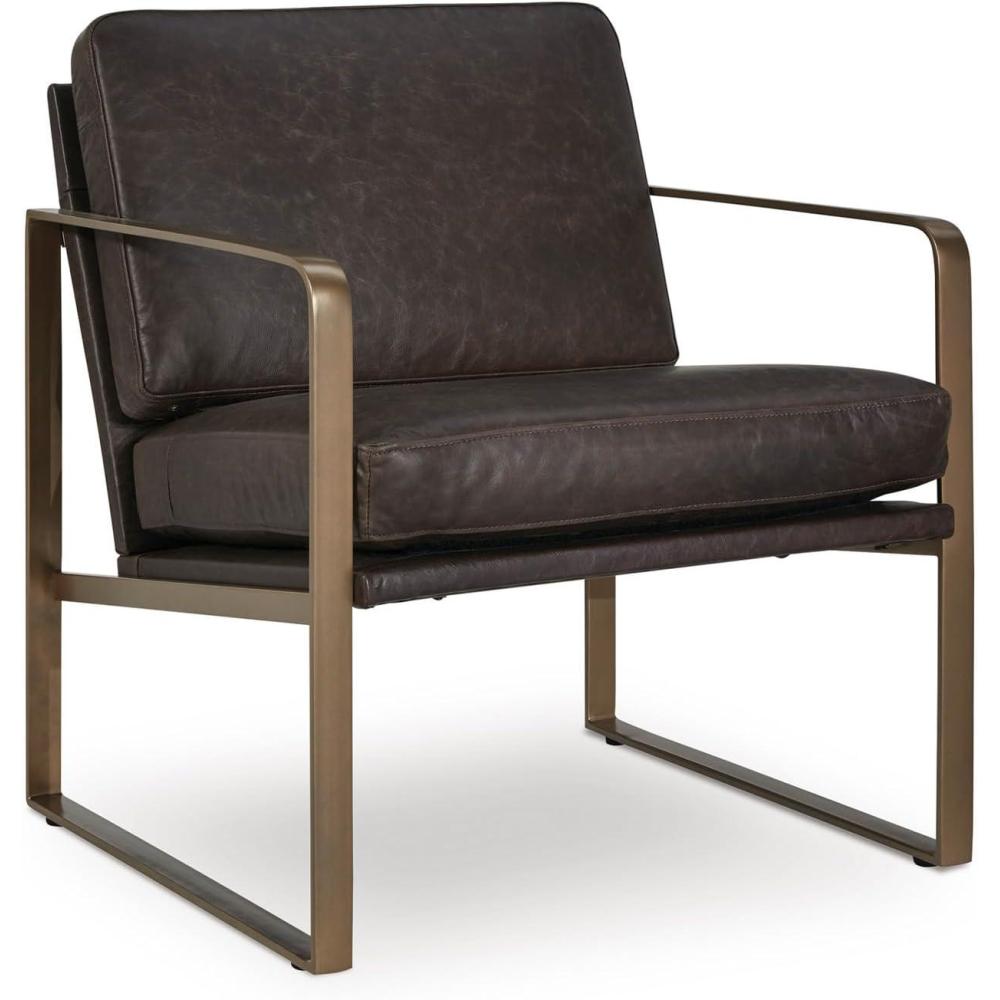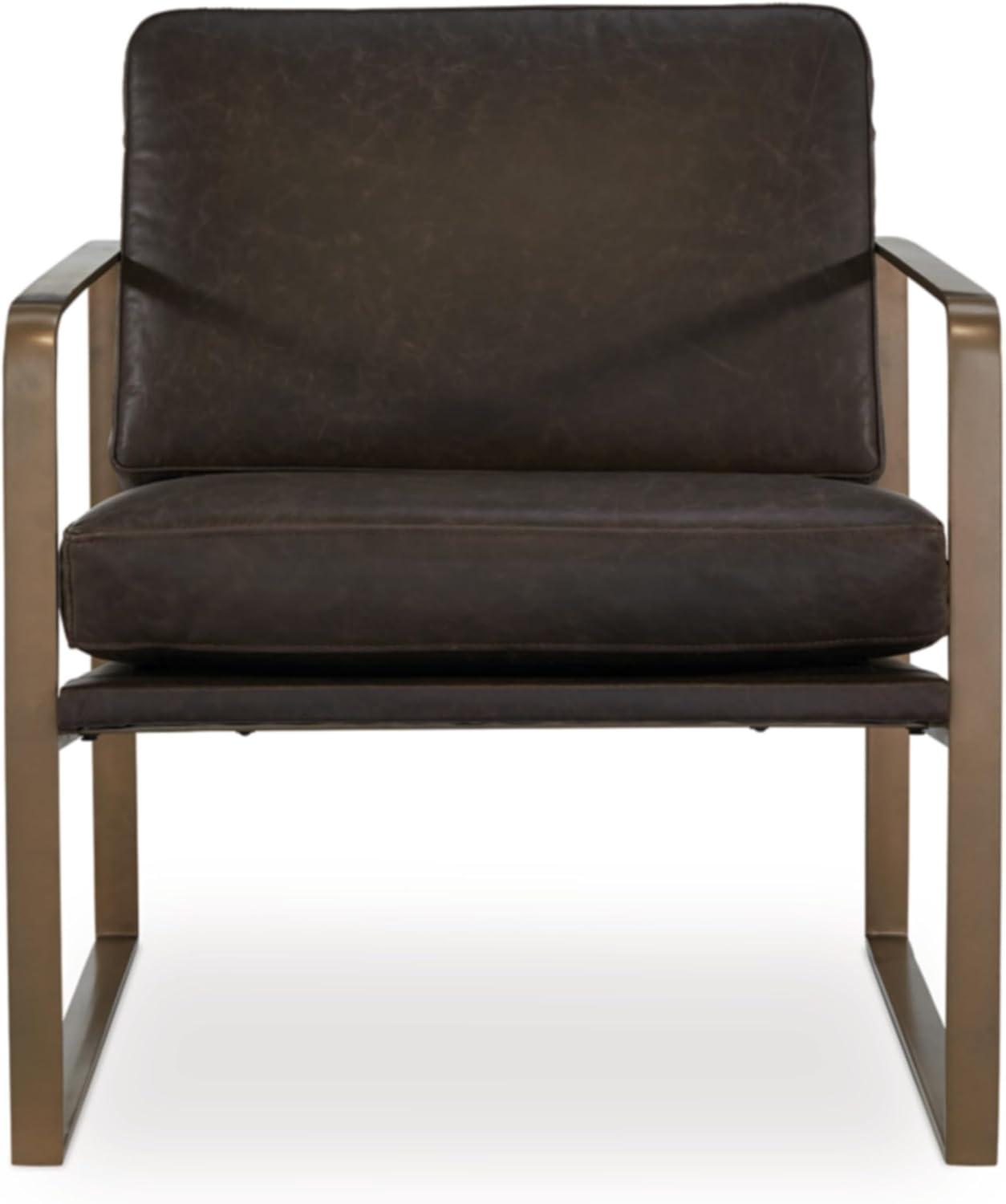 Signature Design by Ashley Bradett Modern Leather Accent Chair with Metal Frame, Dark Brown & Metallic