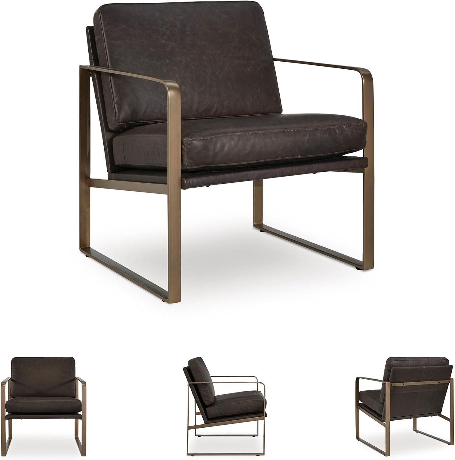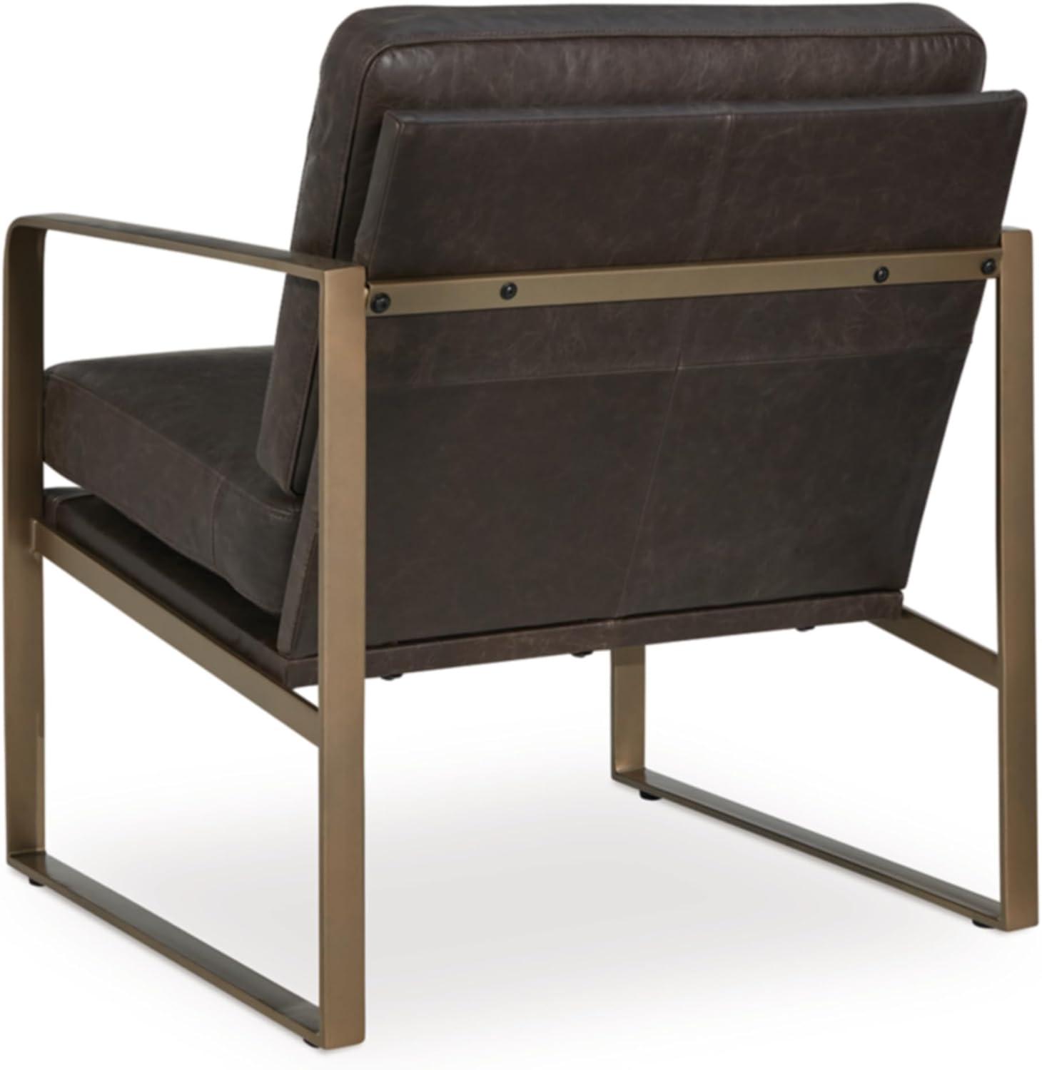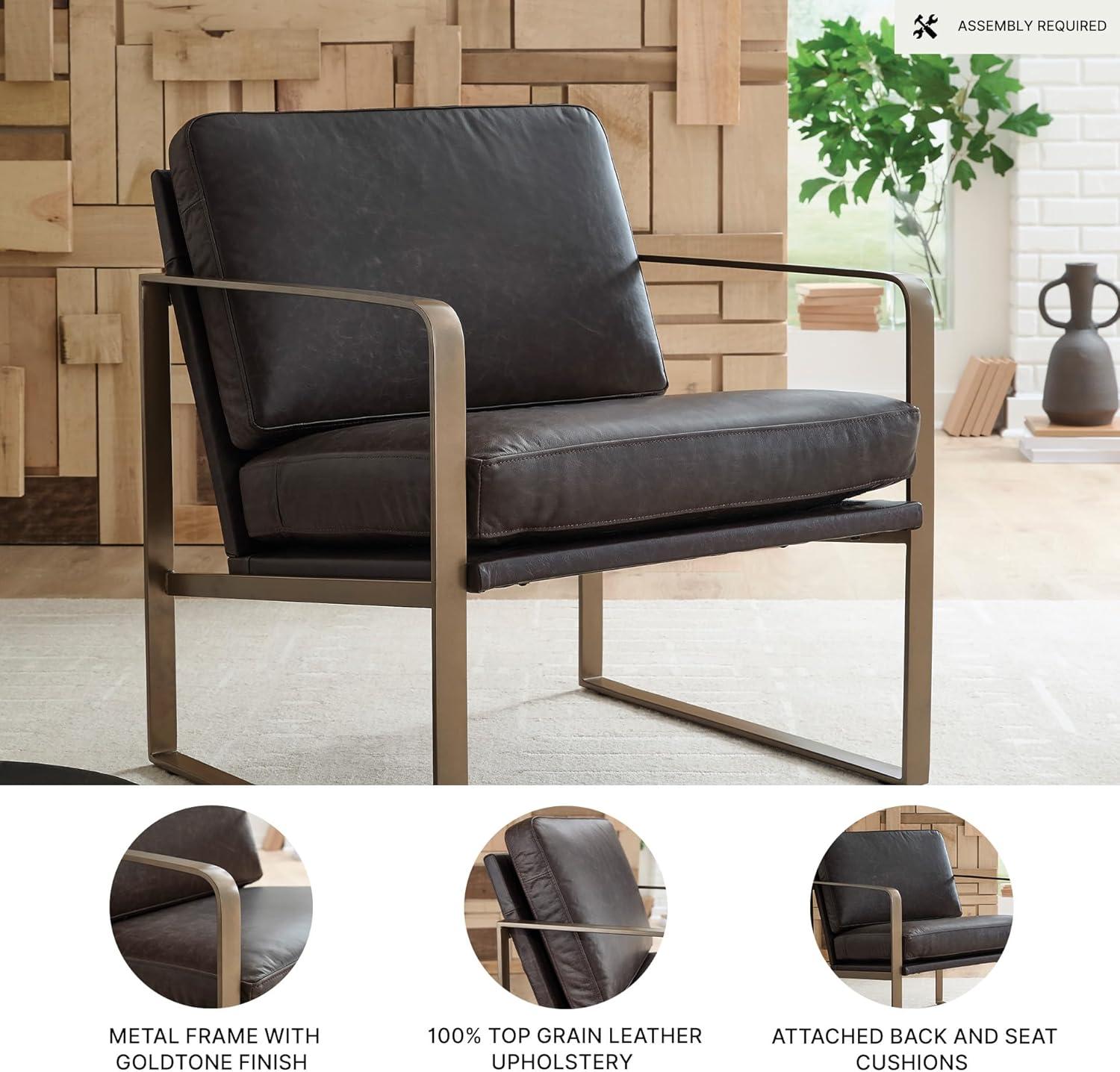 Signature Design by Ashley Bradett Modern Leather Accent Chair with Metal Frame, Dark Brown & Metallic