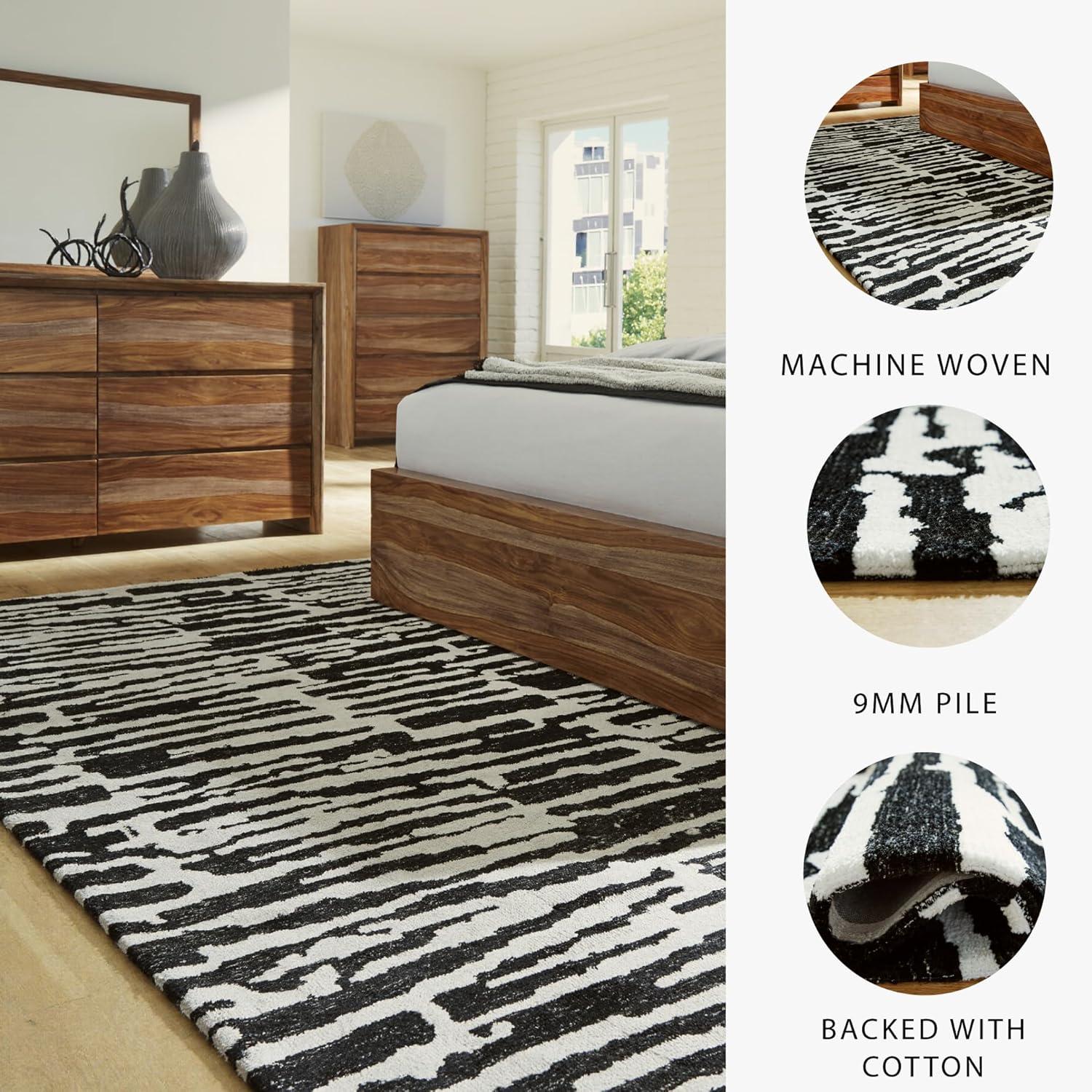 Signature Design by Ashley Bramshaw Modern Indoor Striped 5 x 7 Rug, Black & White(7’8″ x 9’10” (Rectangular))