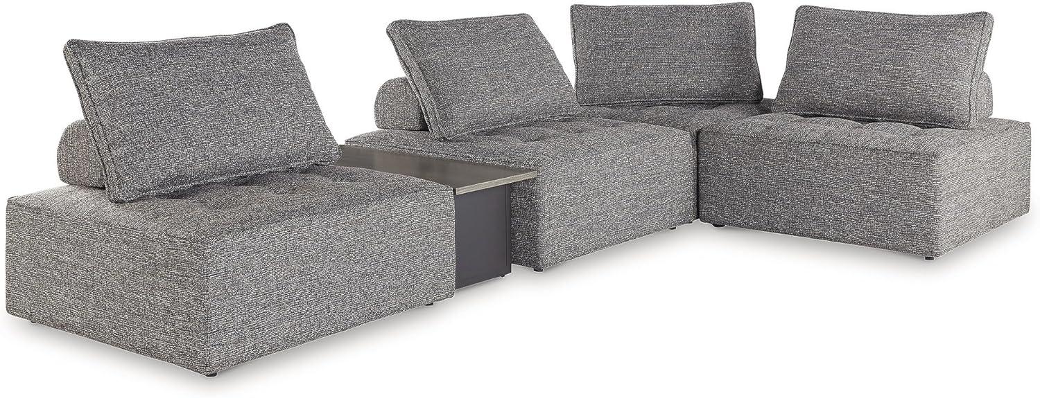 Signature Design by Ashley Bree Zee Right-Arm Facing Modern 4-Piece Outdoor Sectional with Tufted Cushion, Gray(5-Piece Outdoor Sectional)