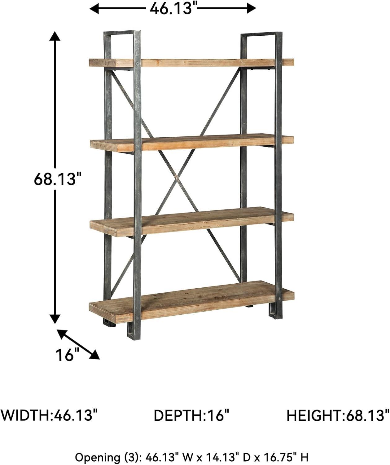 QUALITY CRAFTED: 5 fixed shelves made of ash veneer and engineered wood with a dark brown finish. Metal frame with antiqued goldtone finish