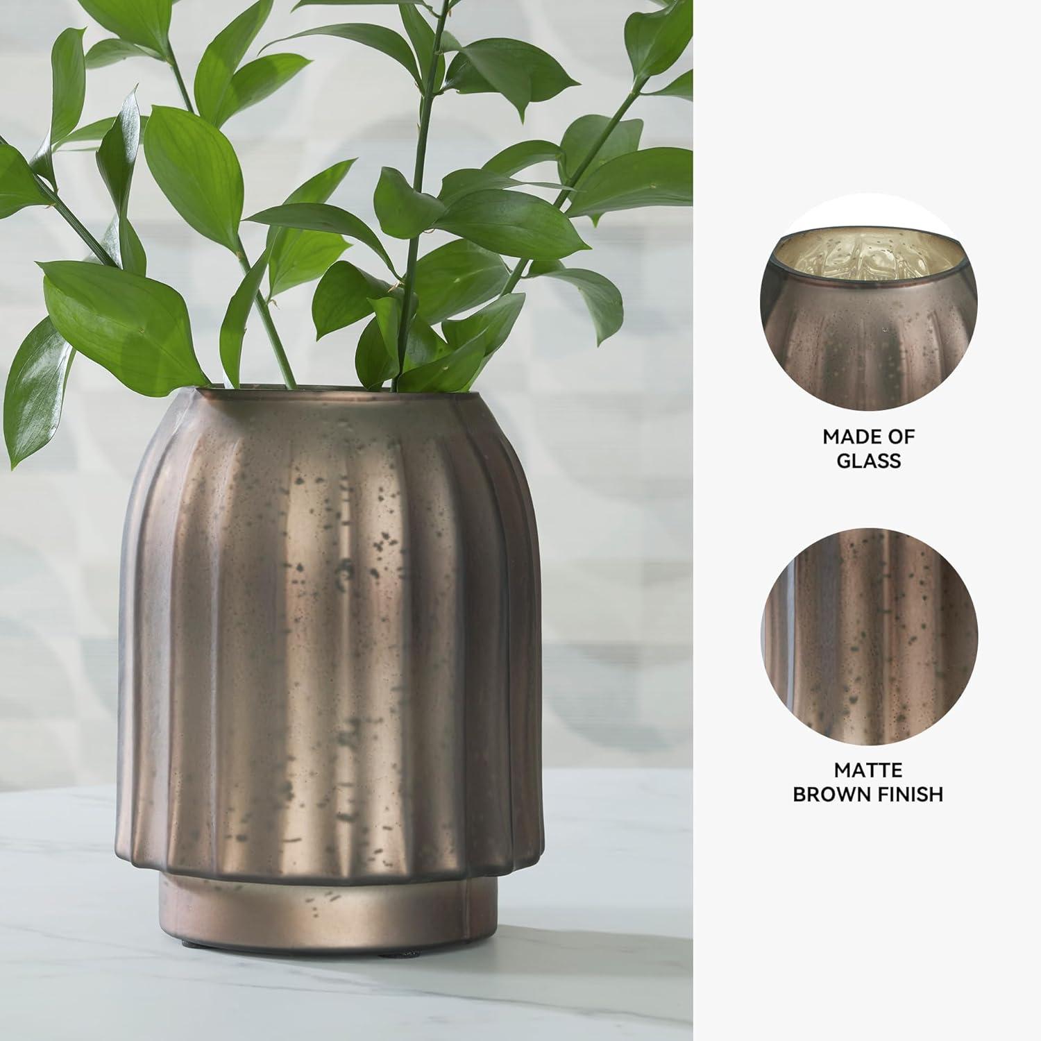 Signature Design by Ashley Briarcott Casual Indoor 13″ Mercury Glass Tabletop Vase with Wide Mouth, Dark Brown(Dark Brown)