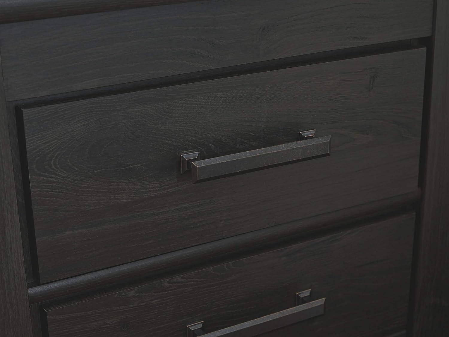 QUALITY CRAFTED: Made with engineered wood & decorative laminate with dark charcoal finish over replicated oak grain. 7 smooth-gliding drawers; 3 sizes. Linear pulls with dark pewter-tone finish. Mirror attaches to back of dresser