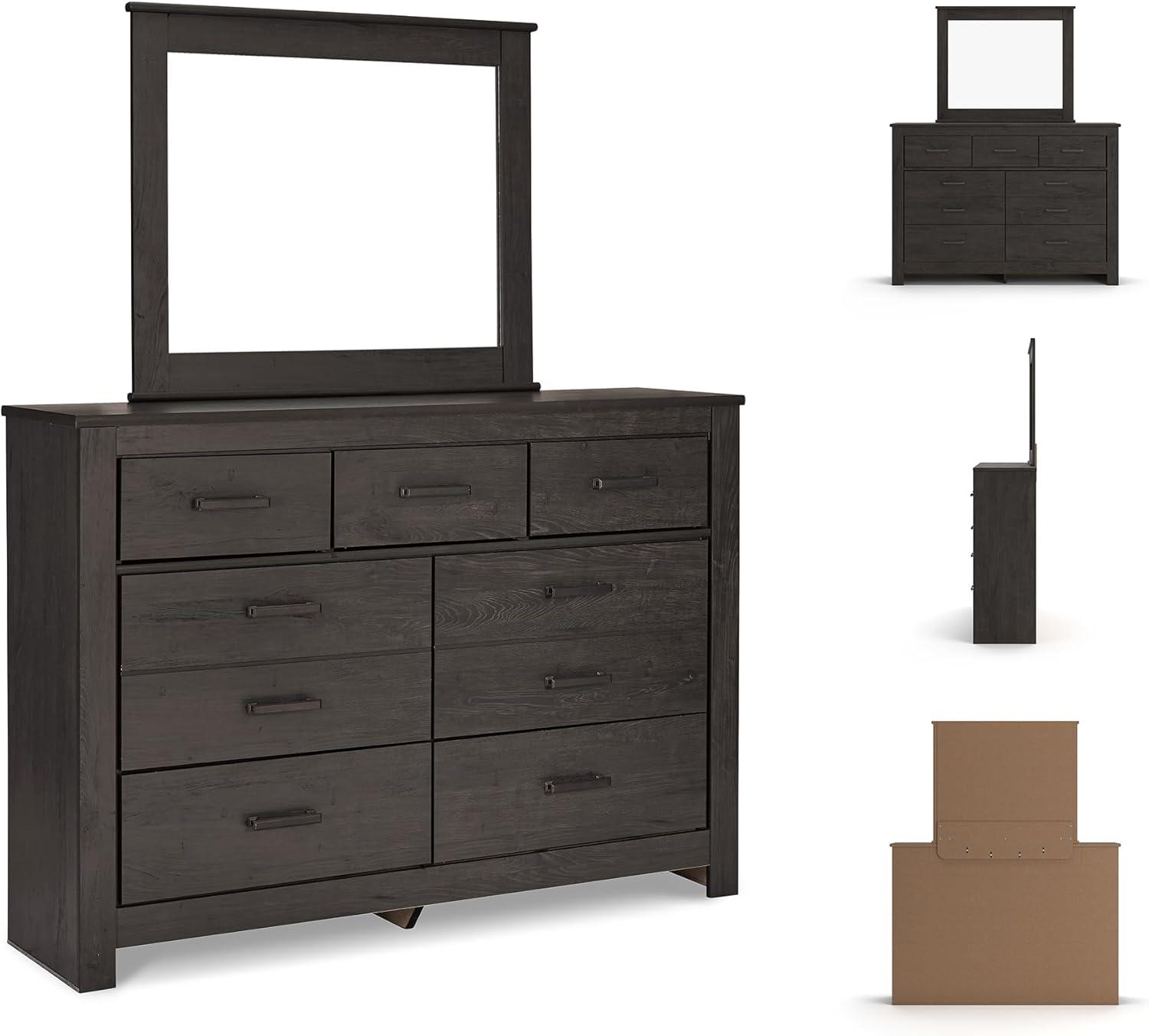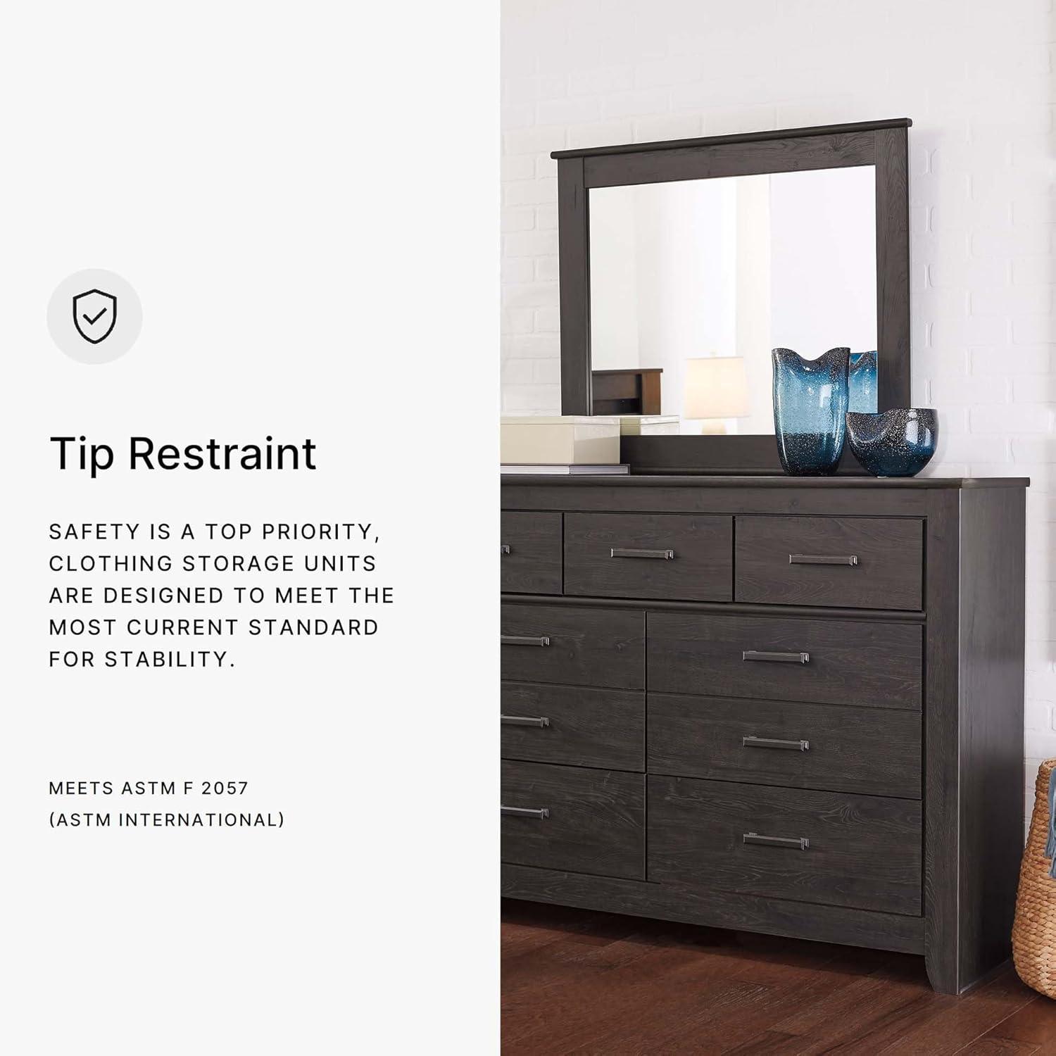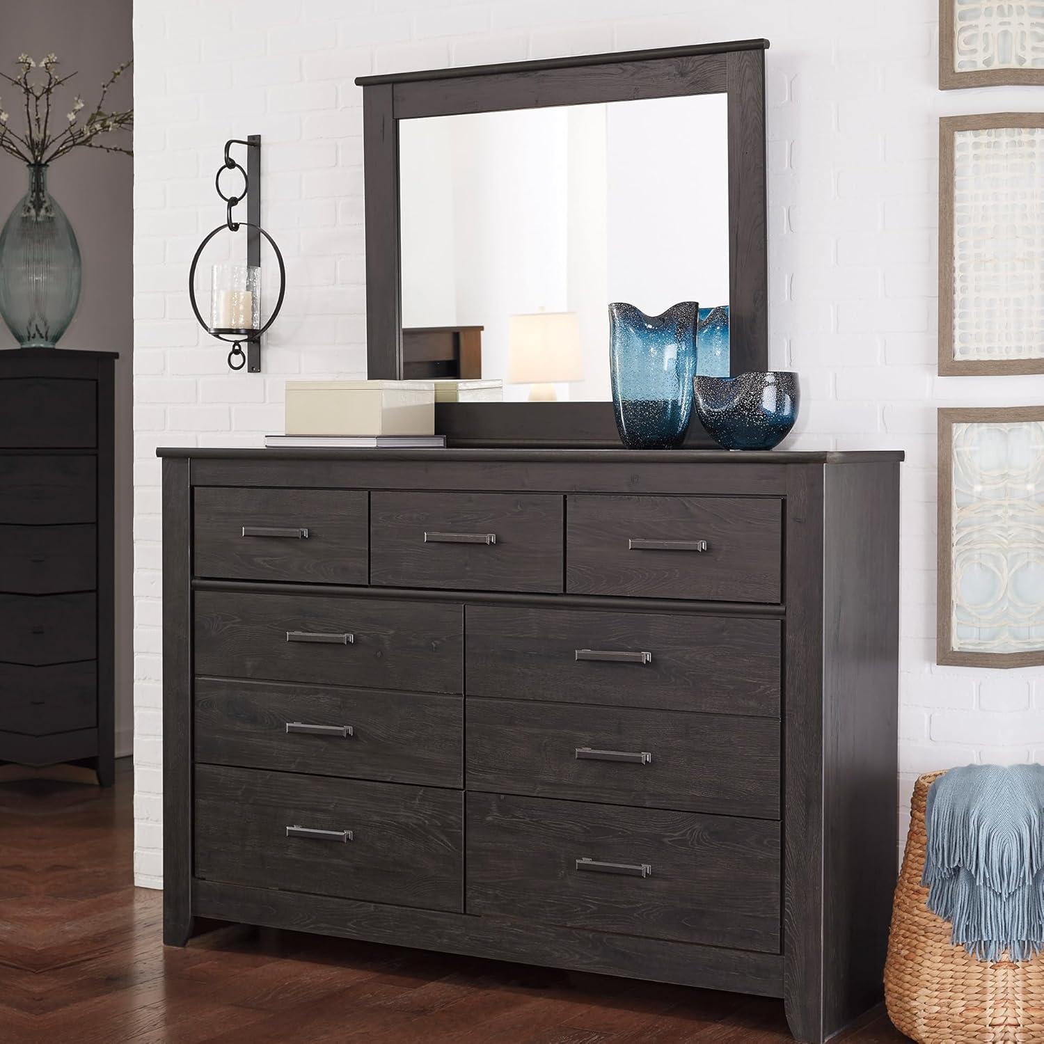 Signature Design by Ashley Brinxton Urban Smooth-Gliding 7-Drawer Dresser and Mirror with Safety Stop, Gray(Almost Black)