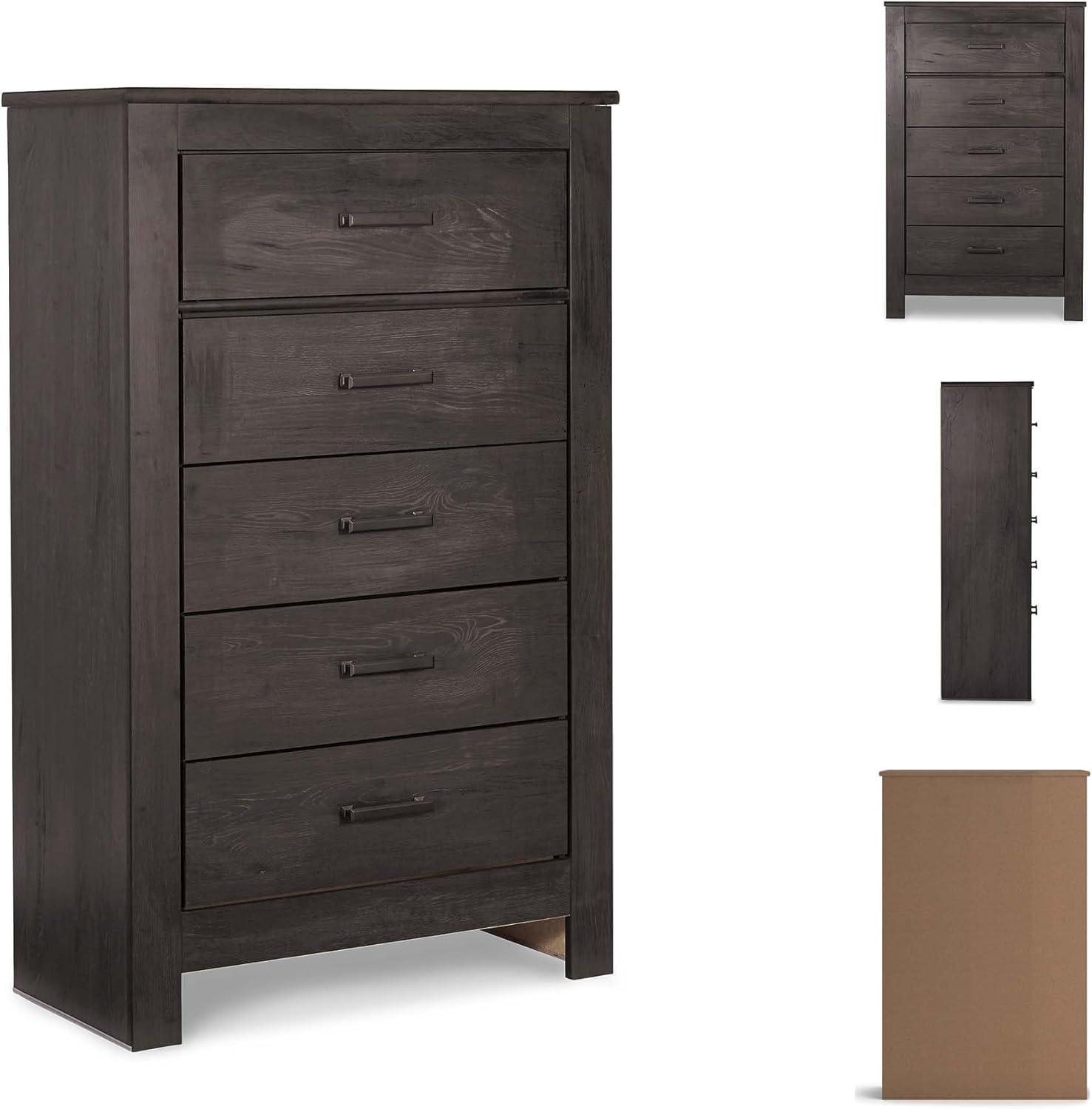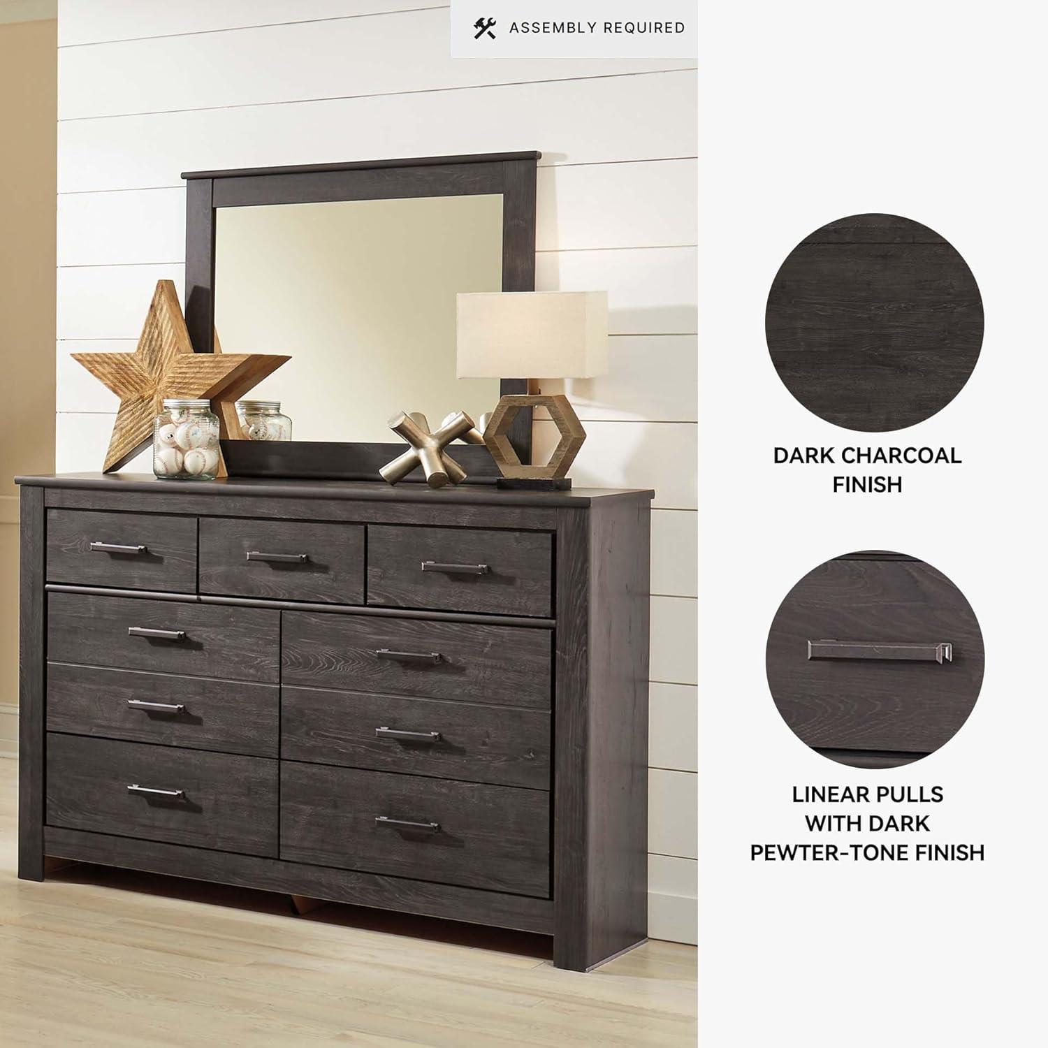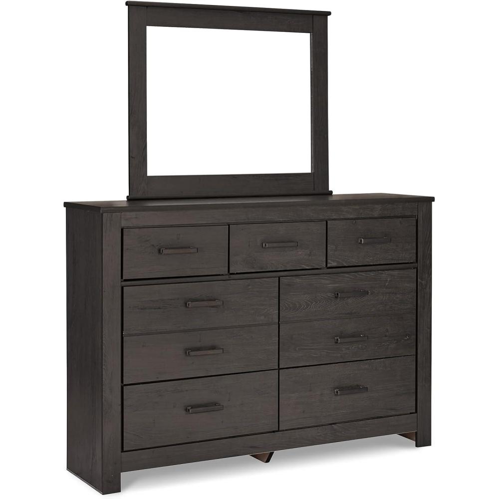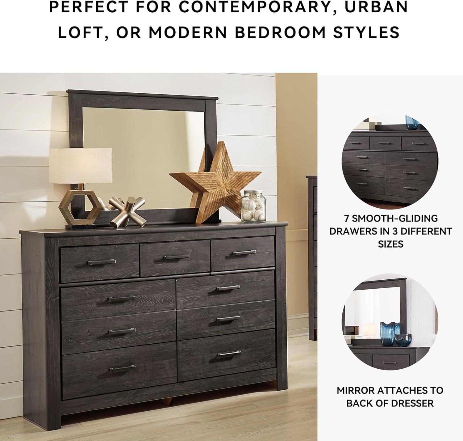 Signature Design by Ashley Brinxton Urban Smooth-Gliding 7-Drawer Dresser and Mirror with Safety Stop, Gray(Almost Black)