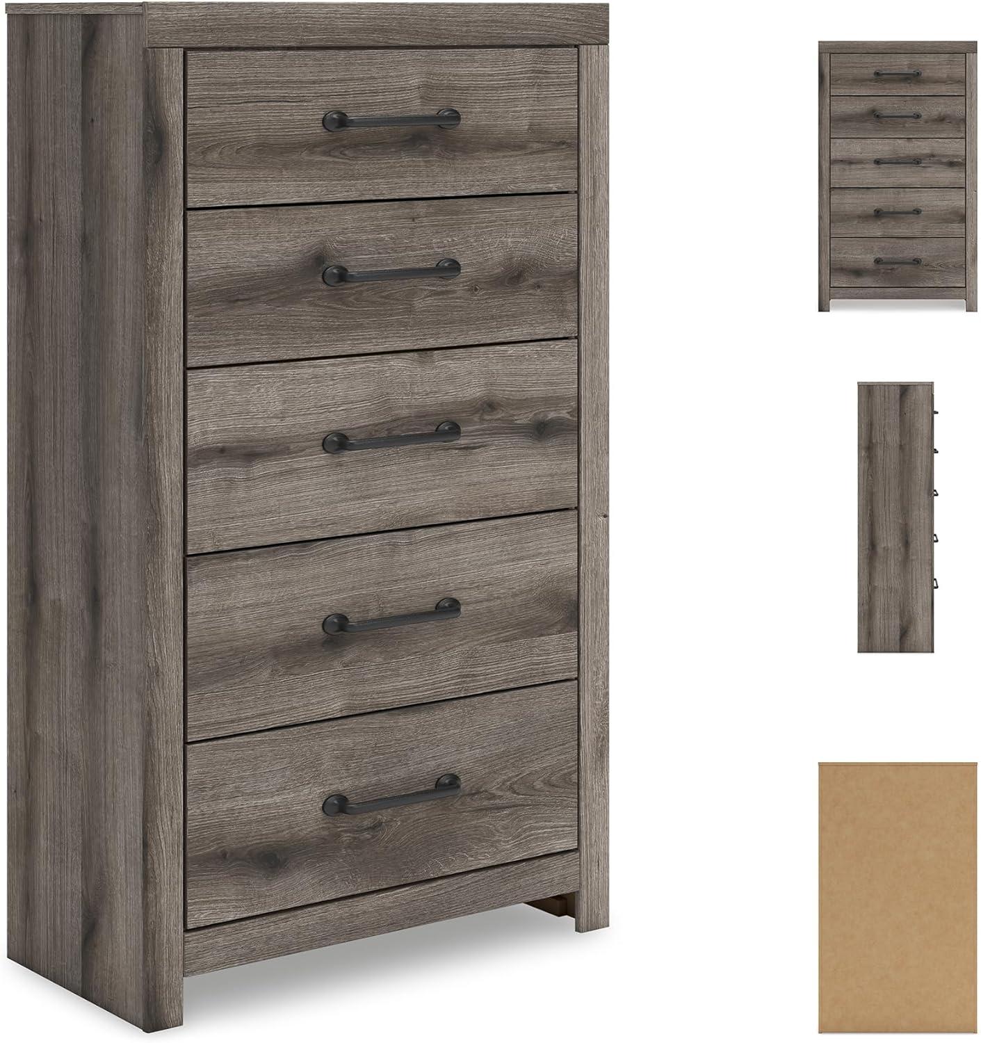 Signature Design by Ashley Brinxton Urban Smooth-Gliding 7-Drawer Dresser and Mirror with Safety Stop, Gray(Brown Gray)