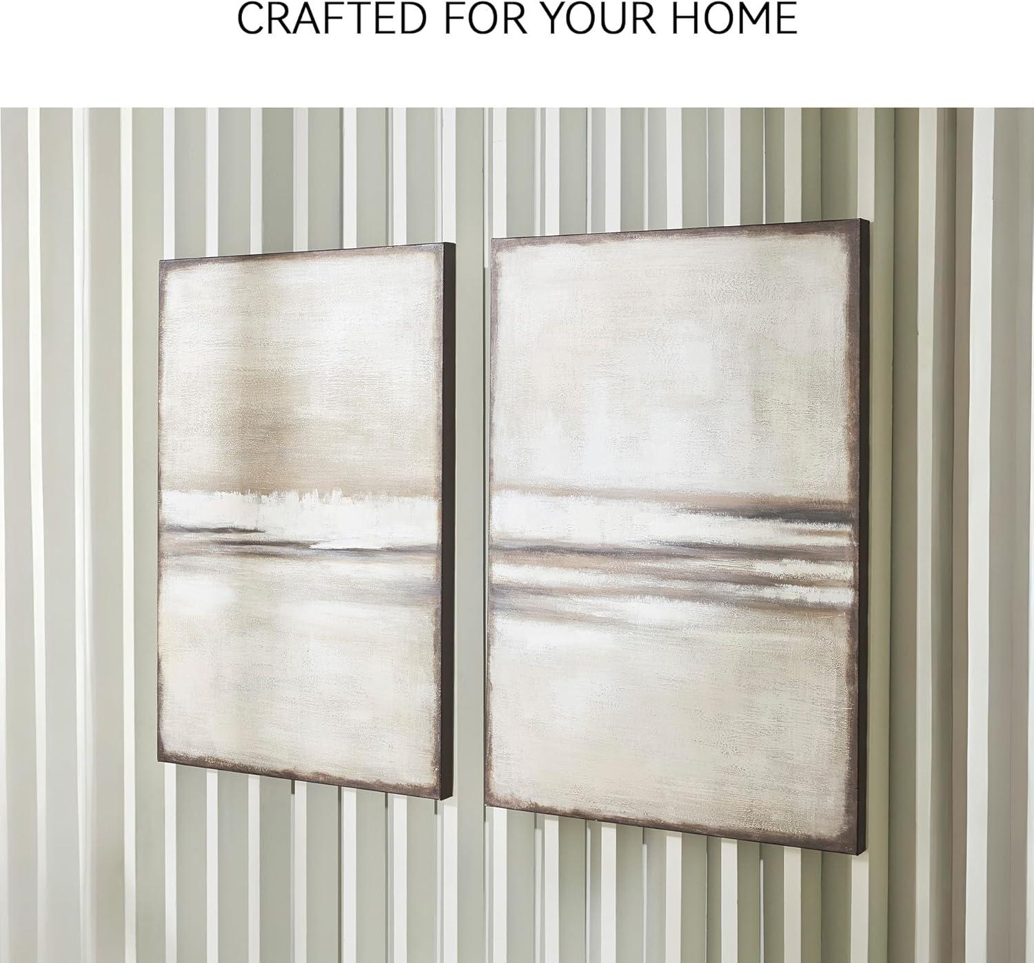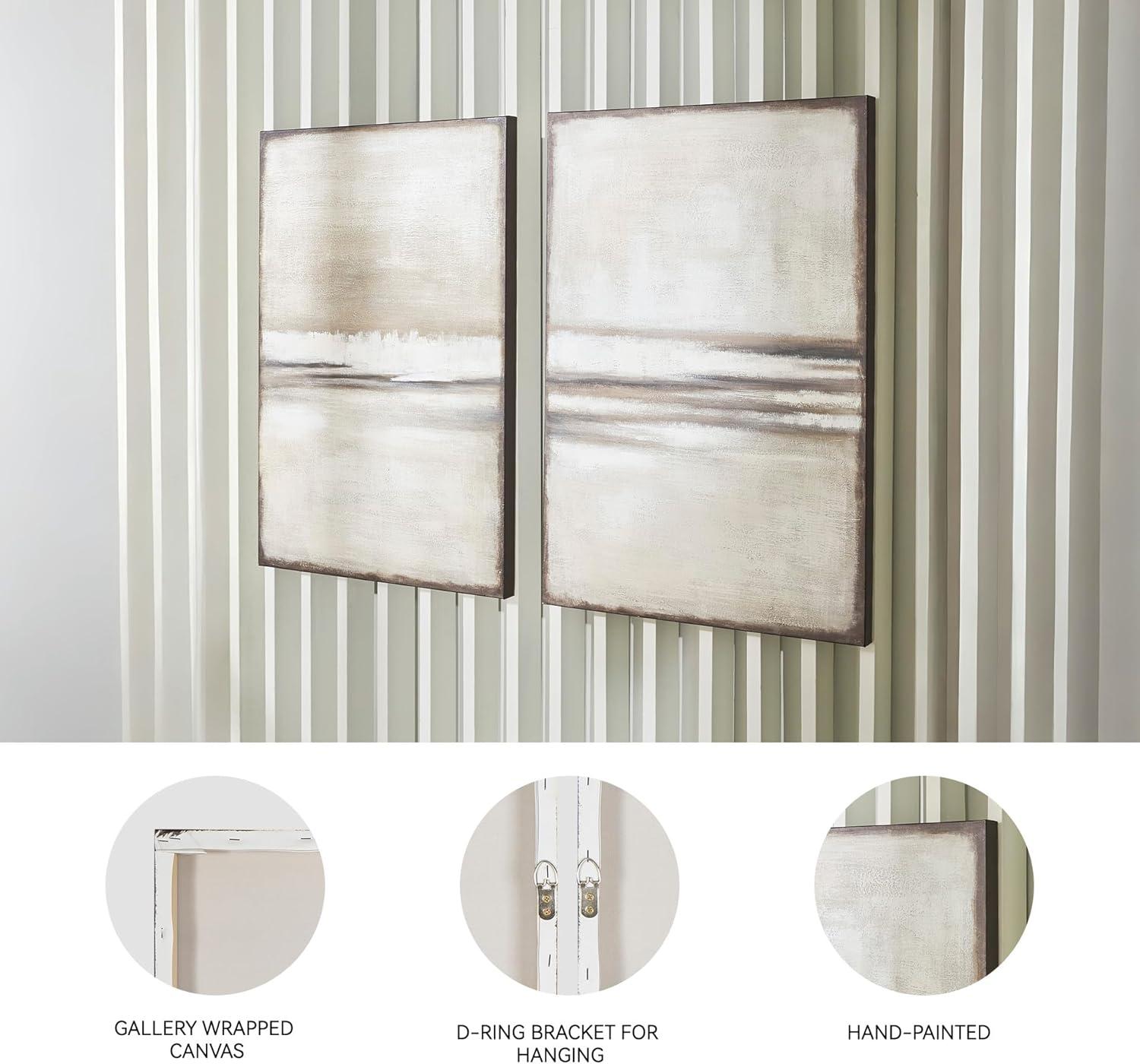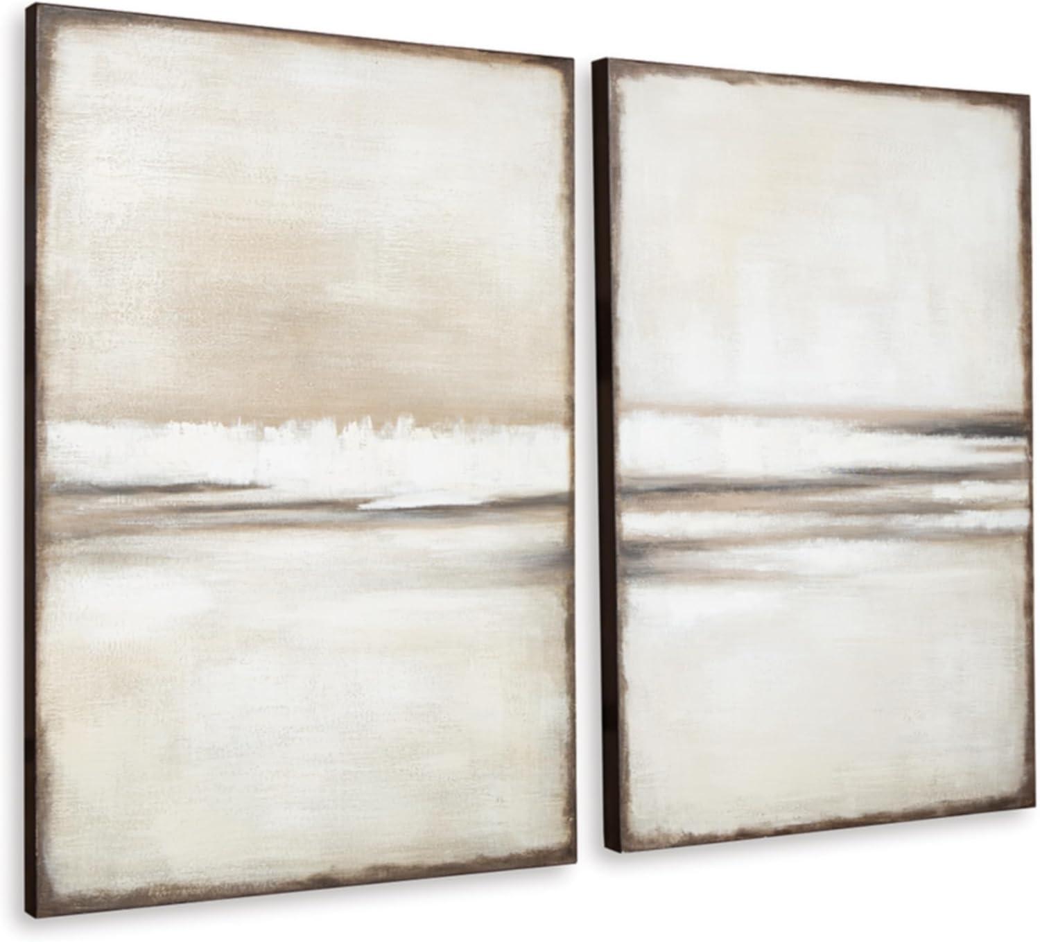 Signature Design by Ashley Brockdunn Modern Rectangular Abstract Hand-painted Wrapped Canvas Wall Art 24 x 36 Inches, Set of 2, Beige & Light Brown