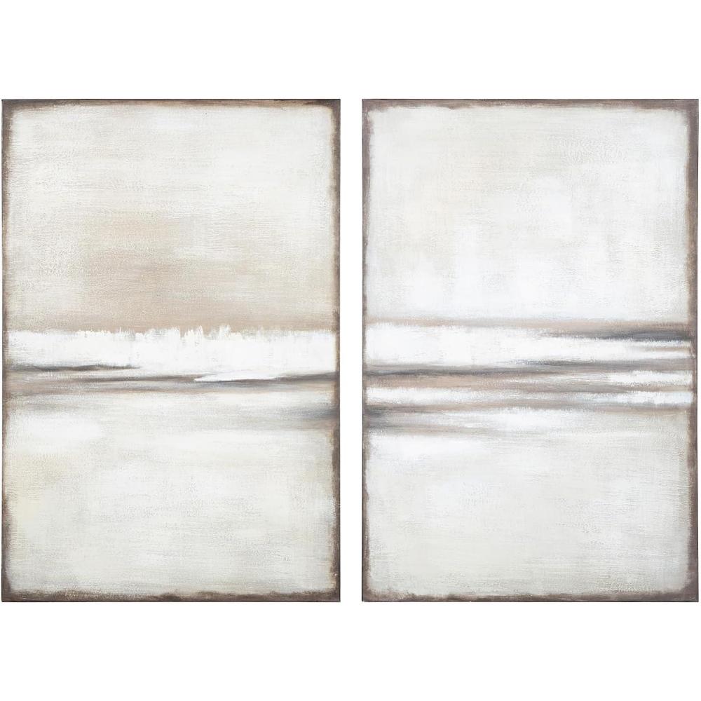 SET OF WALL ART: Lose yourself in the beauty of this landscape. Soothing in neutral shades, this two-piece set reflects your refined yet relaxed approach to decor