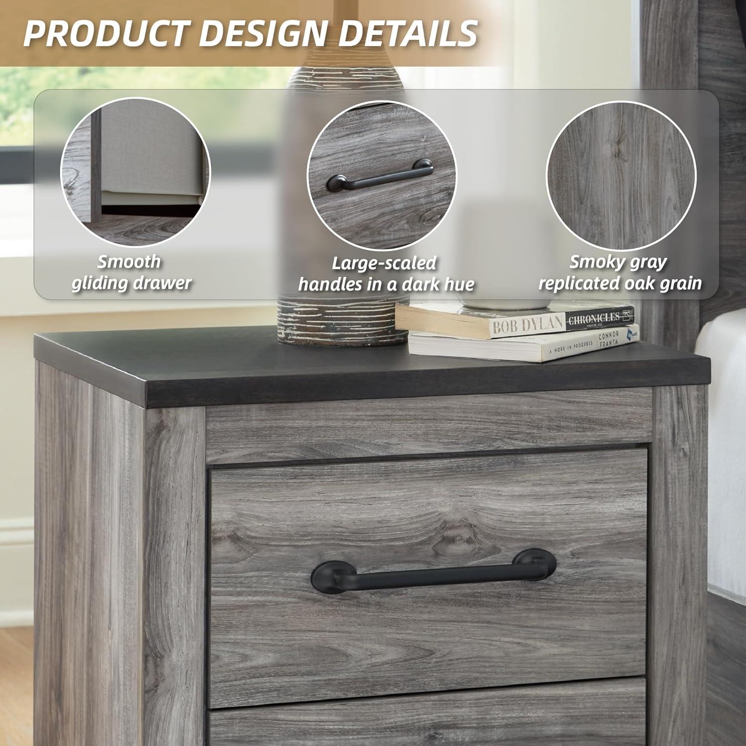 Signature Design by Ashley Bronyan Rustic 2 Drawer Nightstand, 24.72″ Tall, Gray(Gray Plank)