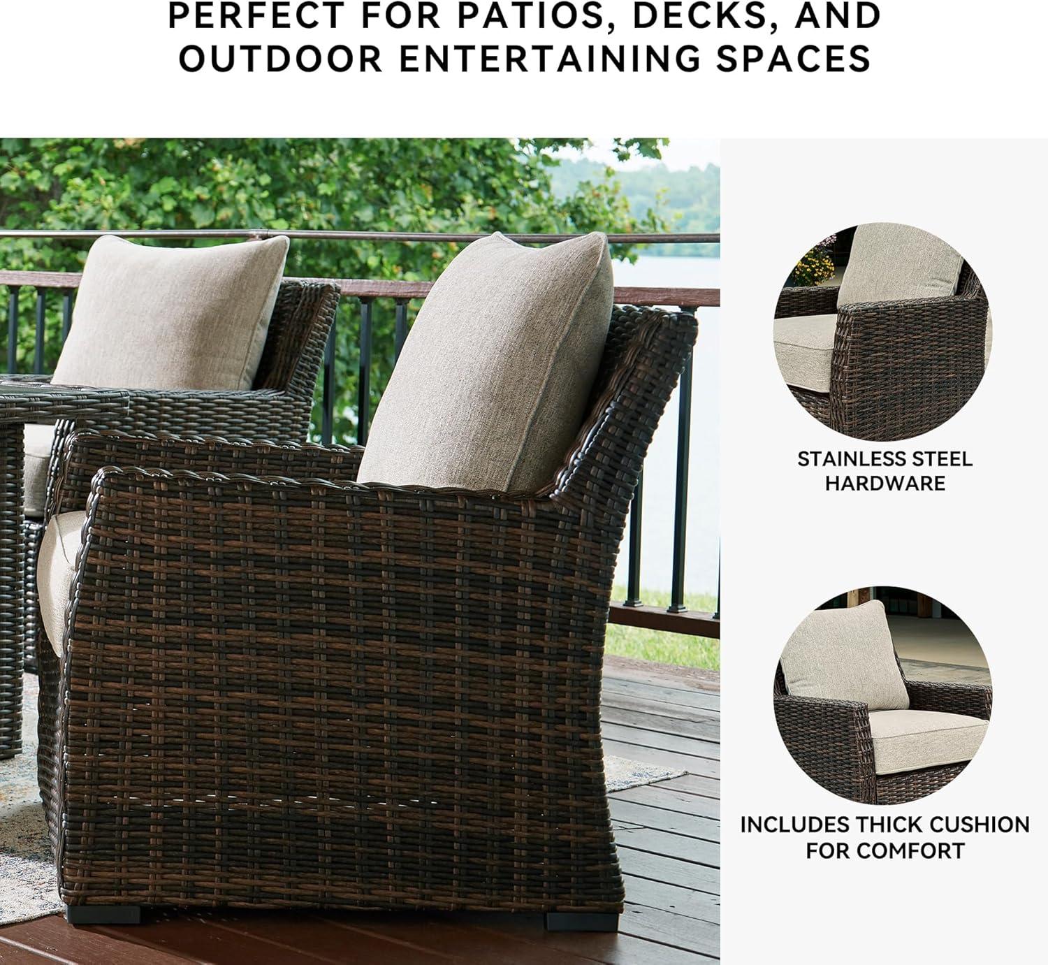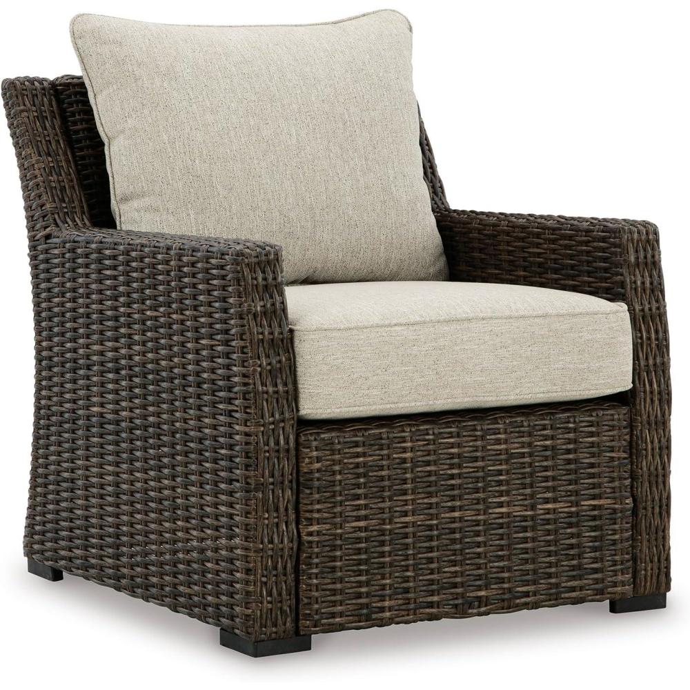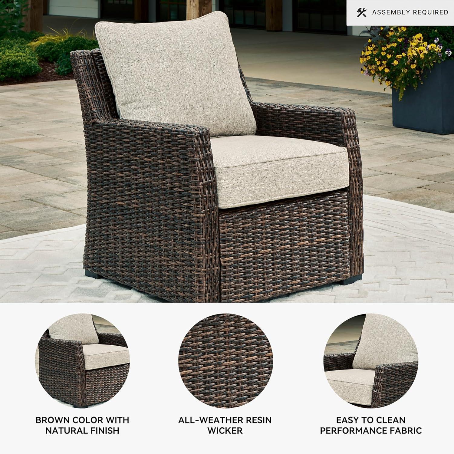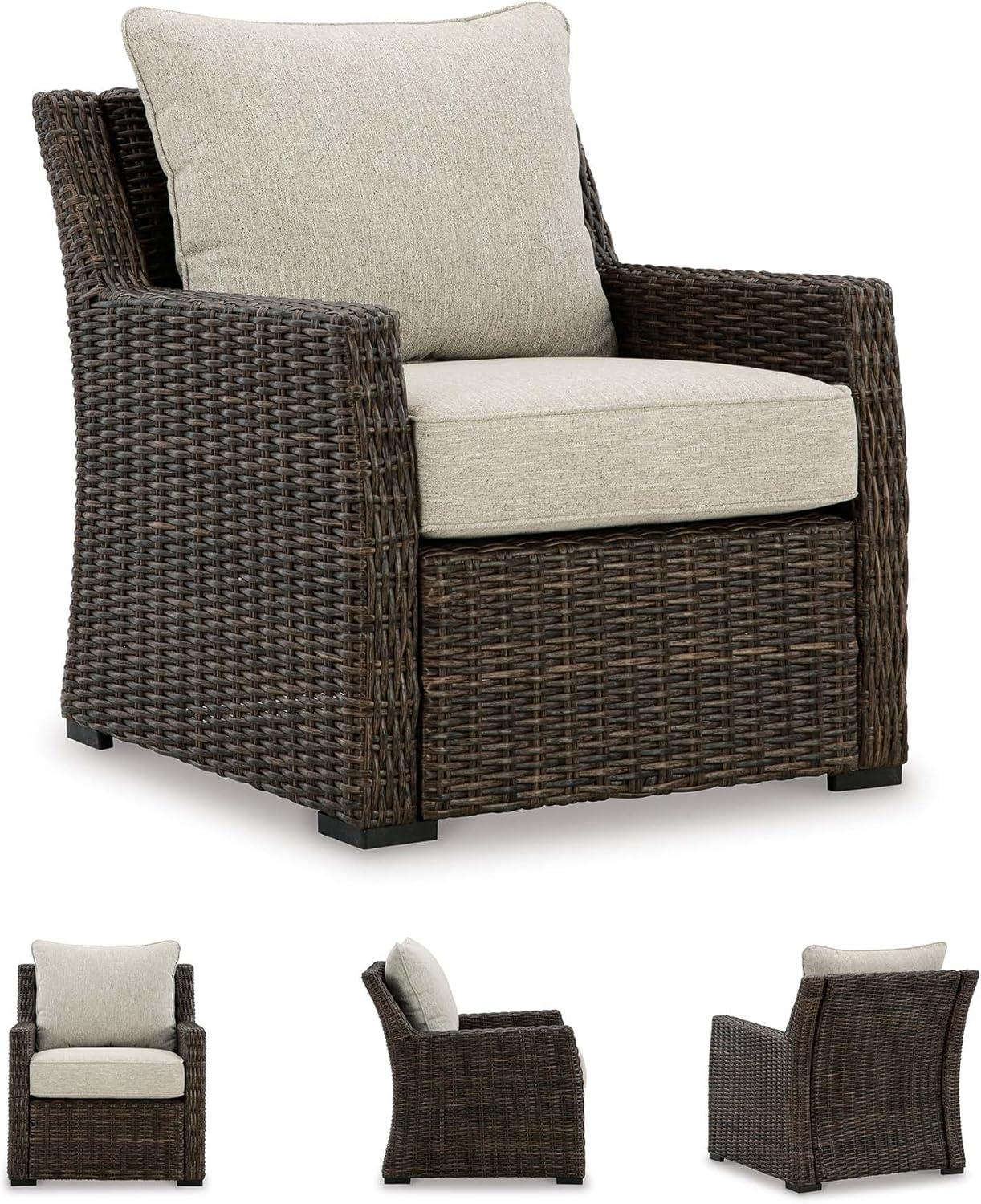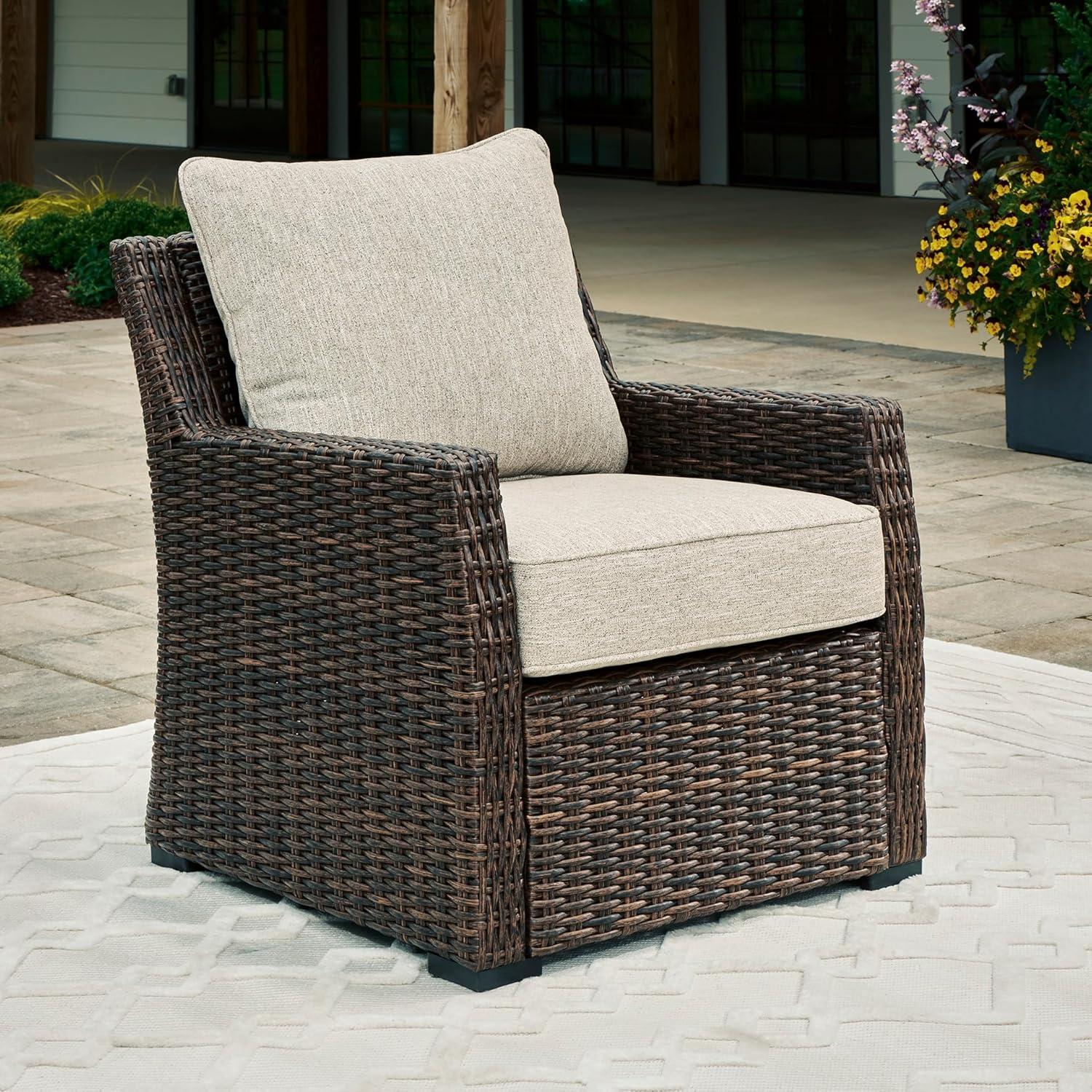 Signature Design by Ashley Brook Ranch Casual Nuvella Weather Resistant Fabric Outdoor Lounge Chair with Cushion, Dark Brown & Beige