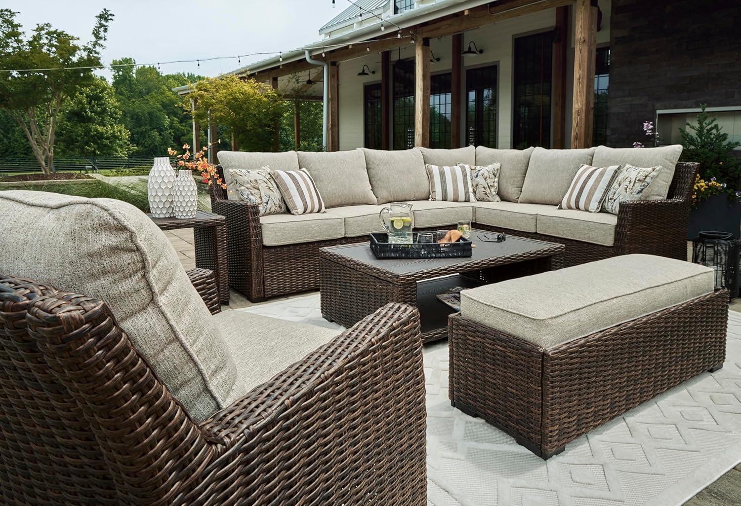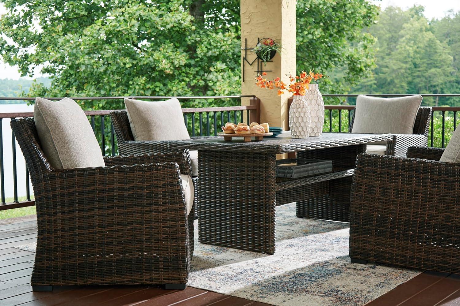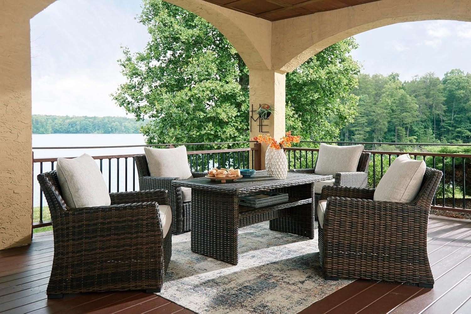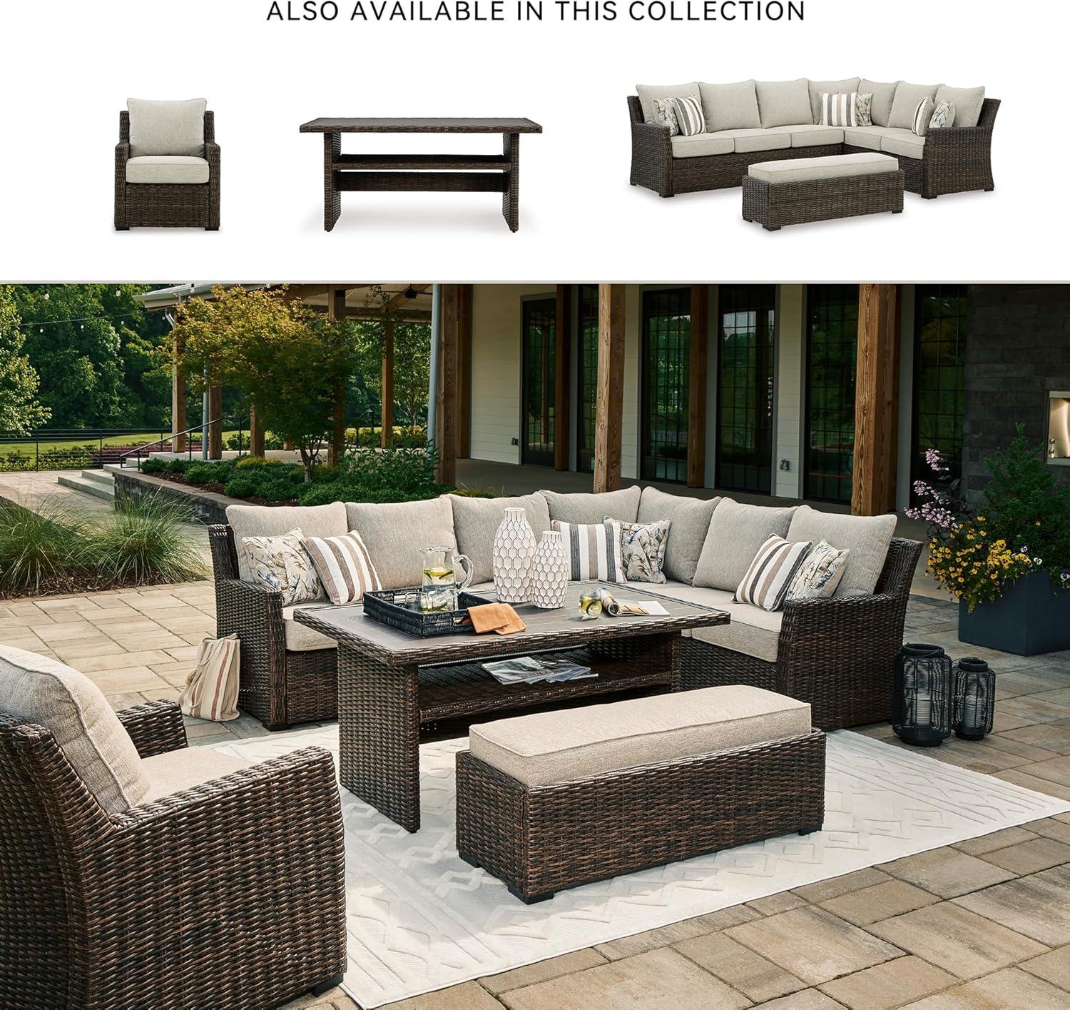 Signature Design by Ashley Brook Ranch Casual Nuvella Weather Resistant Fabric Outdoor Lounge Chair with Cushion, Dark Brown & Beige