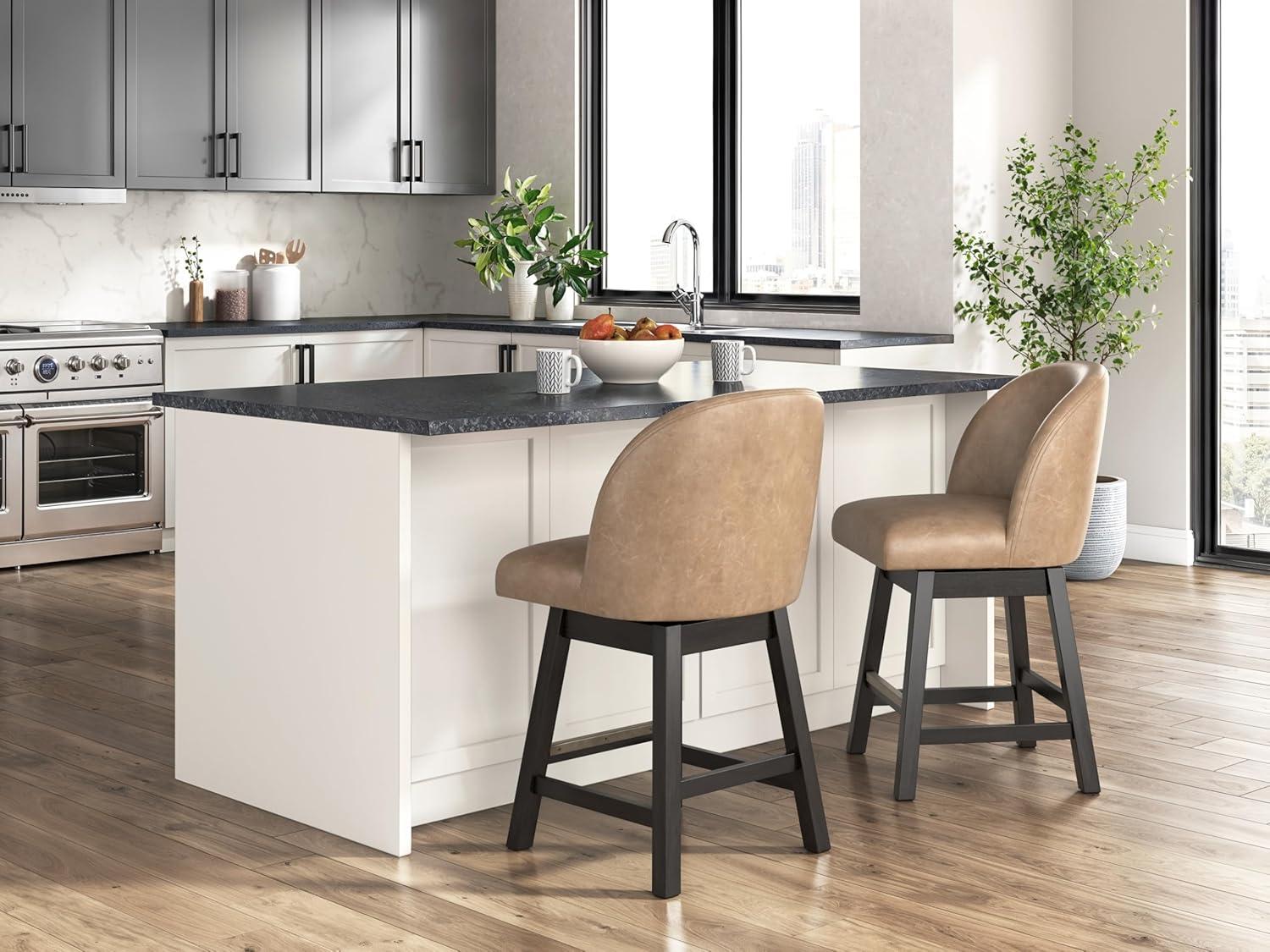 The Cabalynn counter height bar stool blends modern lodge warmth with farmhouse charm, creating a welcoming spot for kitchen islands or casual dining gatherings. The solid wood frame in a light brown glazed finish pairs with a hickory veneer backrest for natural texture that complements neutral palettes, woven rugs or layered textiles in your space. A foam-cushioned polyester-upholstered seat with webbed foundation offers plush comfort for extended meals, family chats or morning coffee routines, encouraging everyone to linger without discomfort. As a farmhouse barstool, its architectural details and reliable construction make it practical for everyday use, whether mixed with other seating for an eclectic look or grouped for larger gatherings. Assembly required, it anchors your dining area with style and function that feels both poised and approachable.