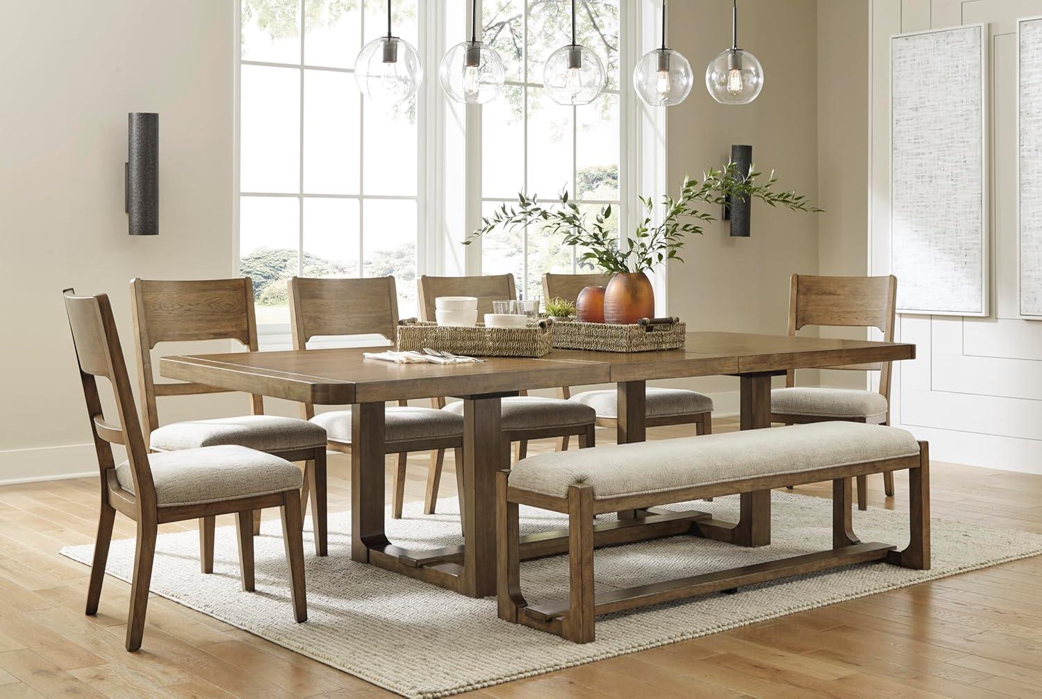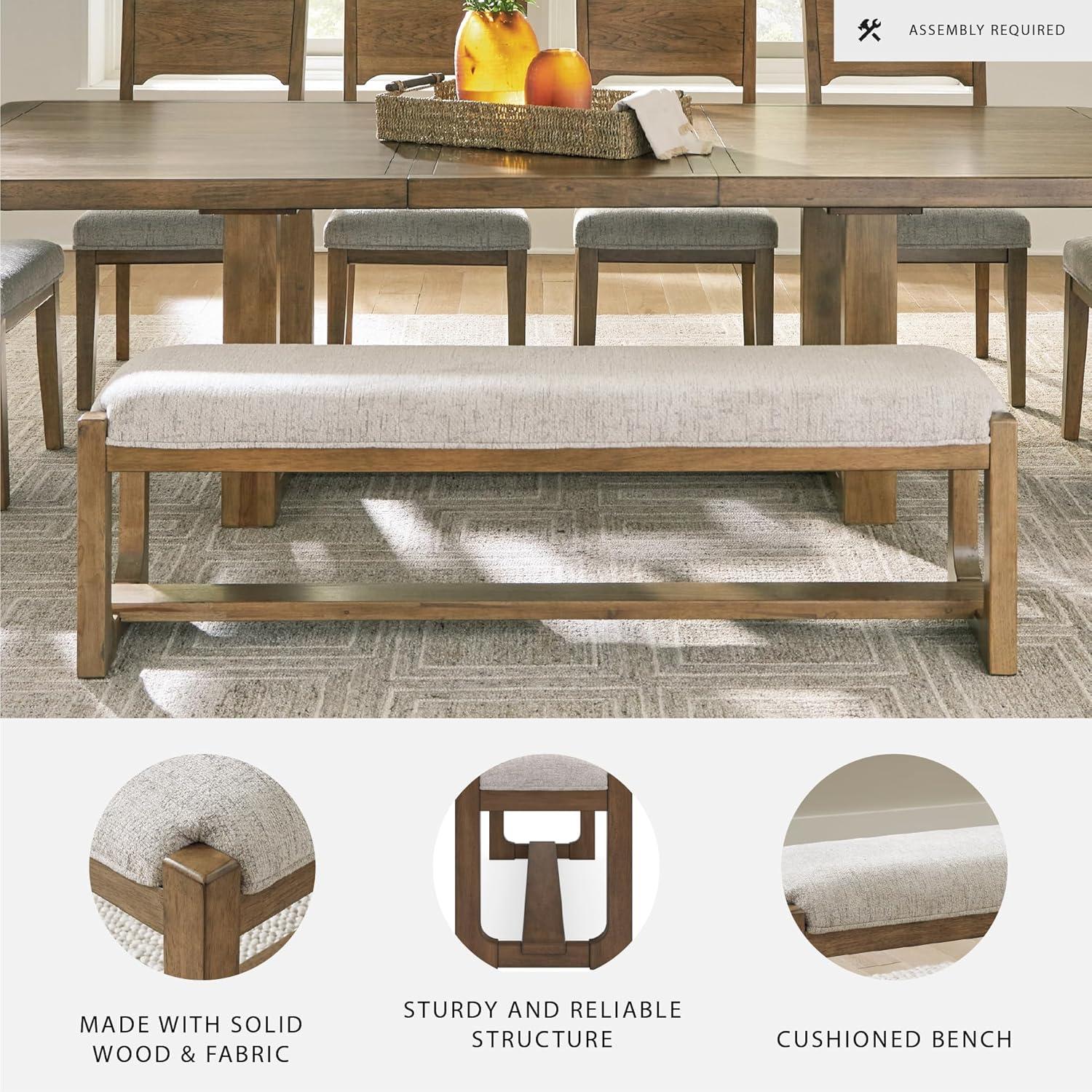 Signature Design by Ashley Cabalynn Farmhouse Upholstered 63″ Dining Bench, Beige & Light Brown