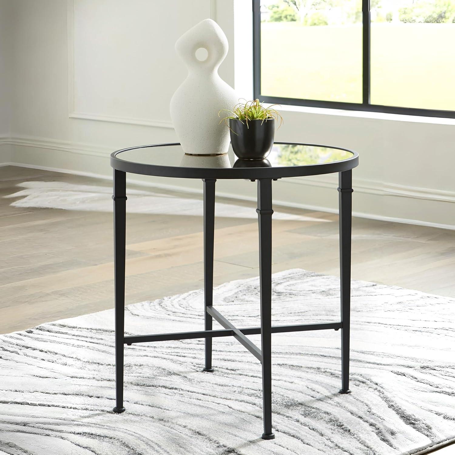 Signature Design by Ashley Cadeburg Industrial Mirrored-Tabletop Accent Table with Antiqued Finish, Black