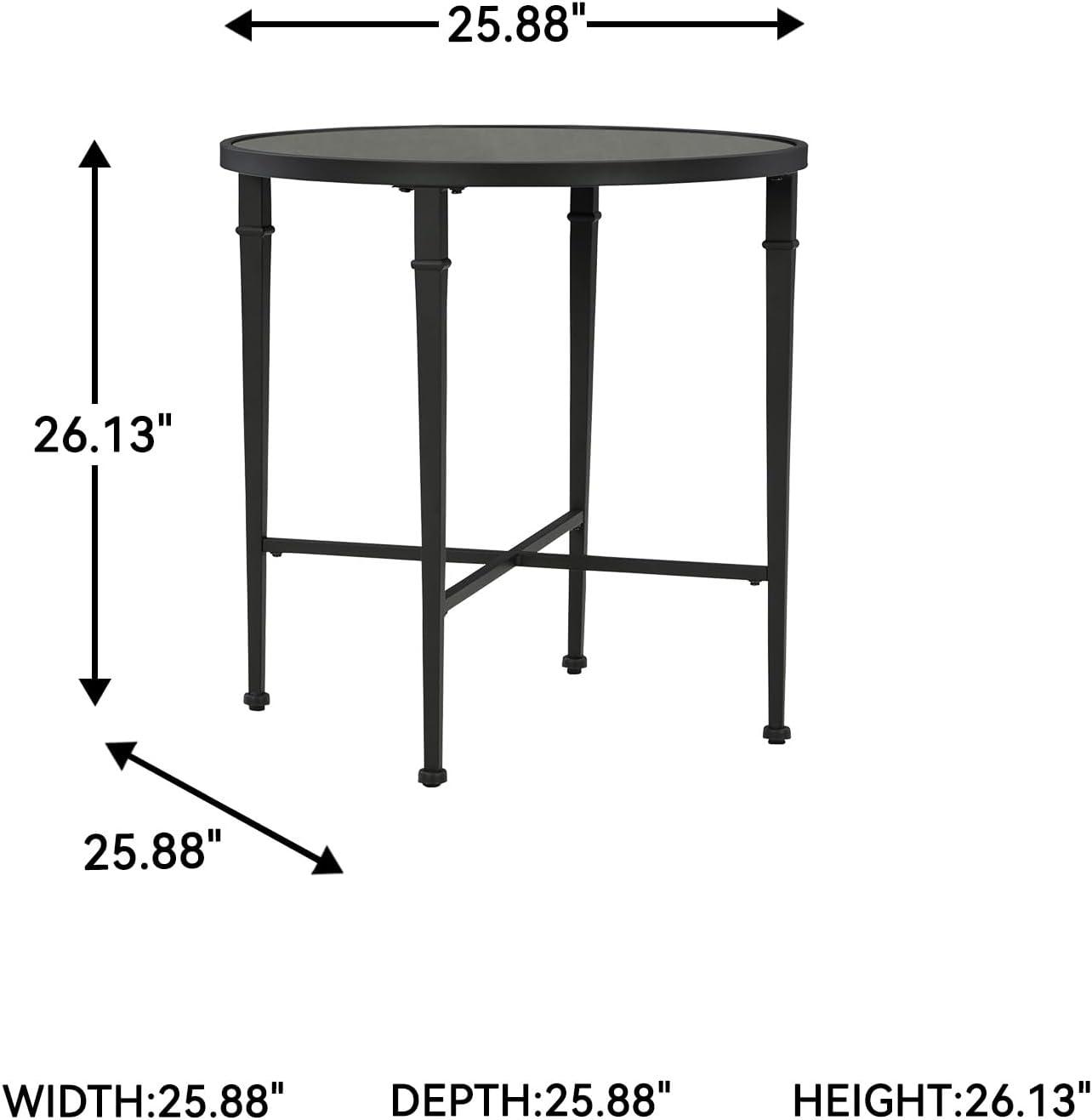 QUALITY CRAFTED: Frame made of metal with black finish. Mirrored tabletop with antiqued finish