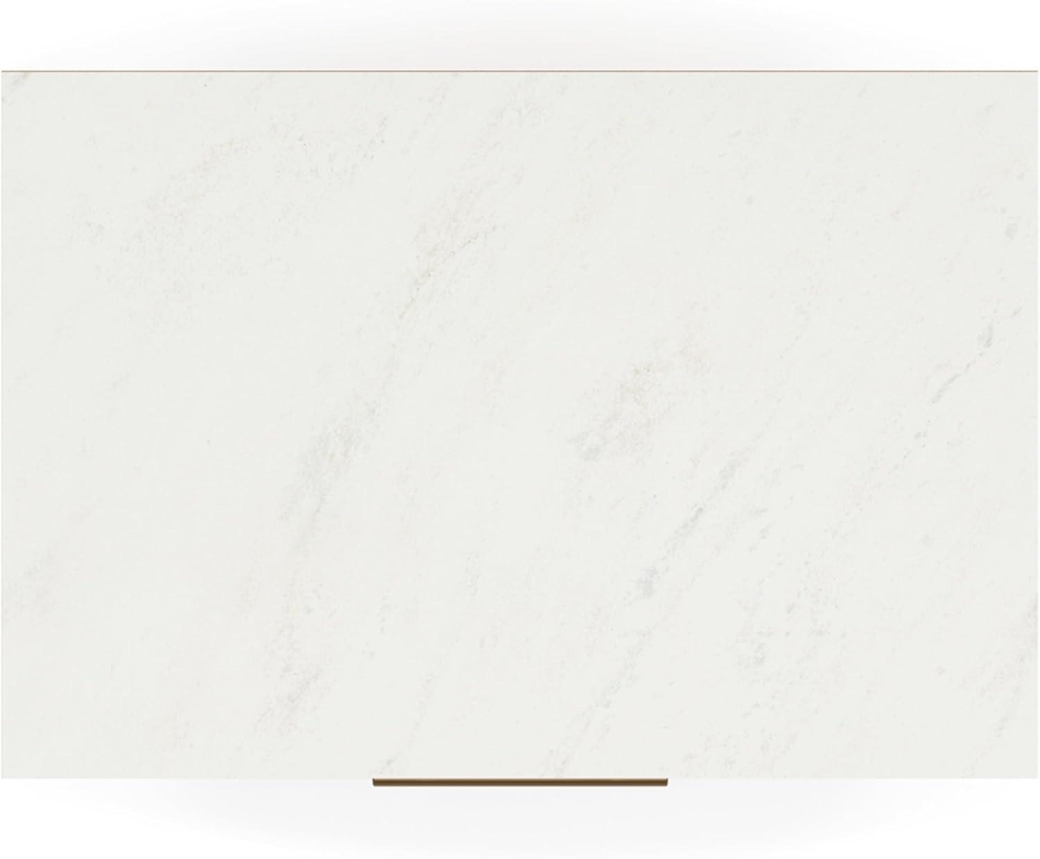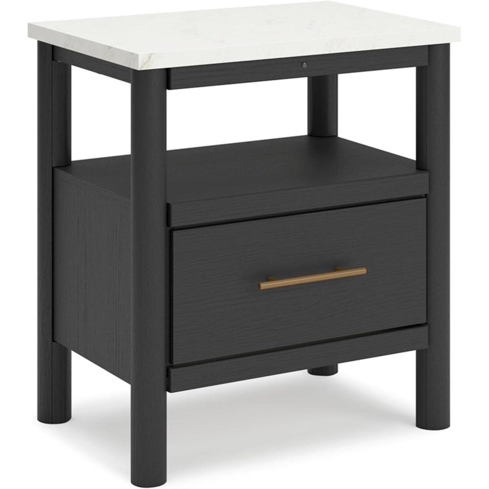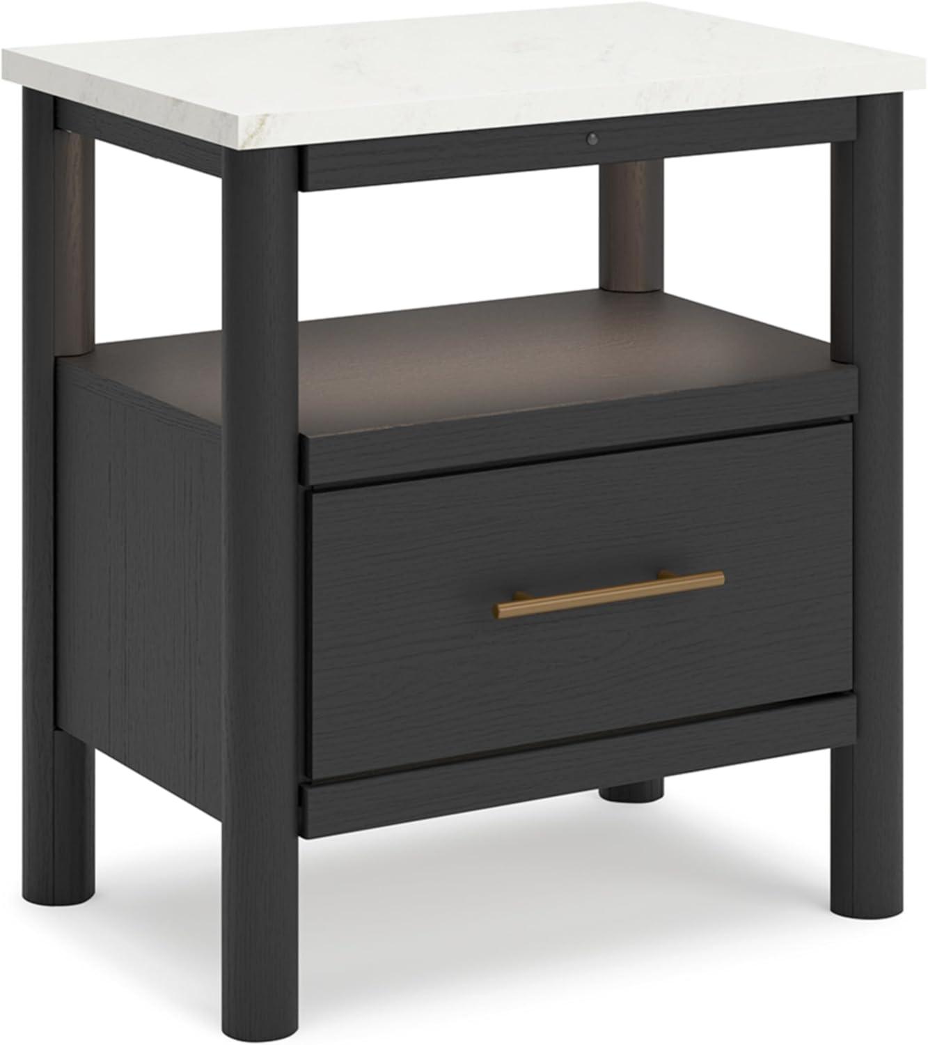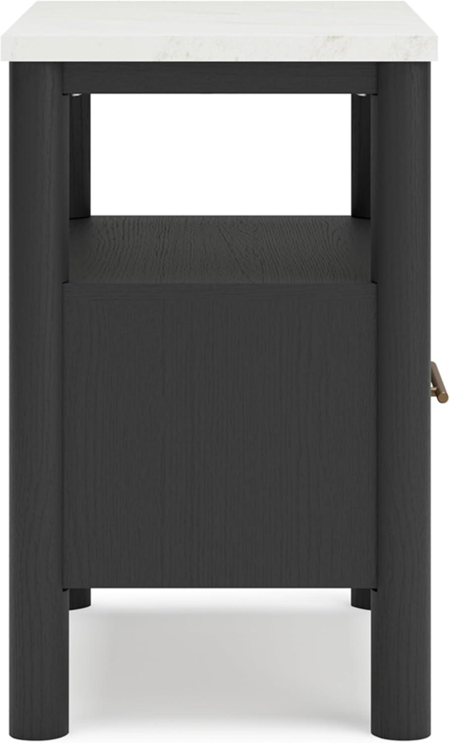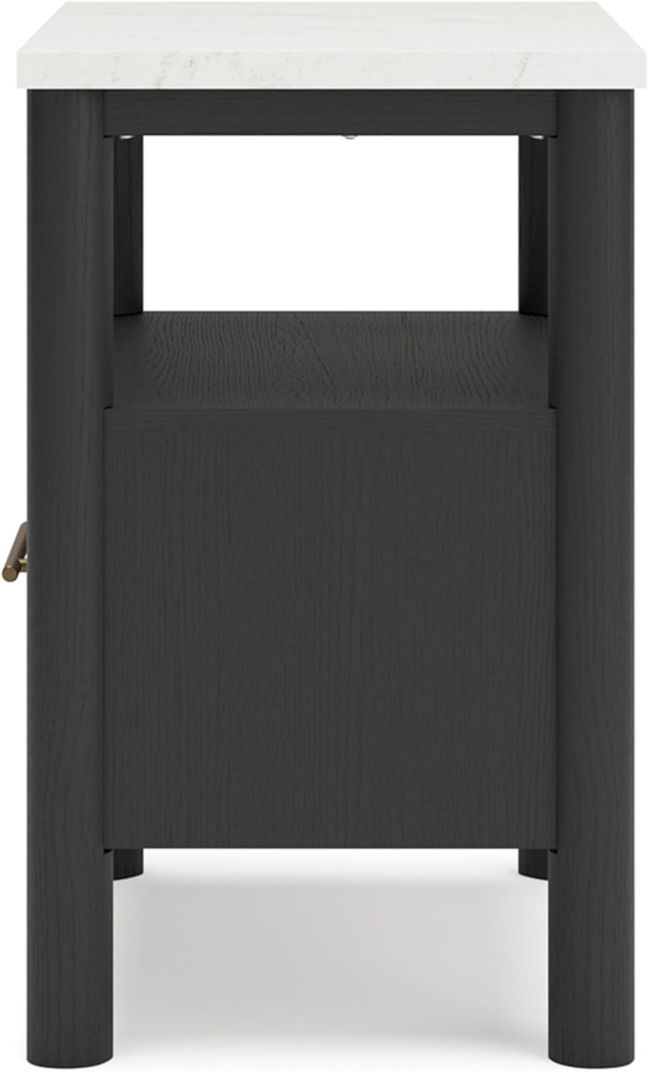 Signature Design by Ashley Cadmori Casual Faux Marble Tabletop 1 Drawer Nightstand with Open Shelf, Ambient Lights, Wireless Charging and USB-C Ports, 26.57″ Tall, Light Brown & White(Black & White)