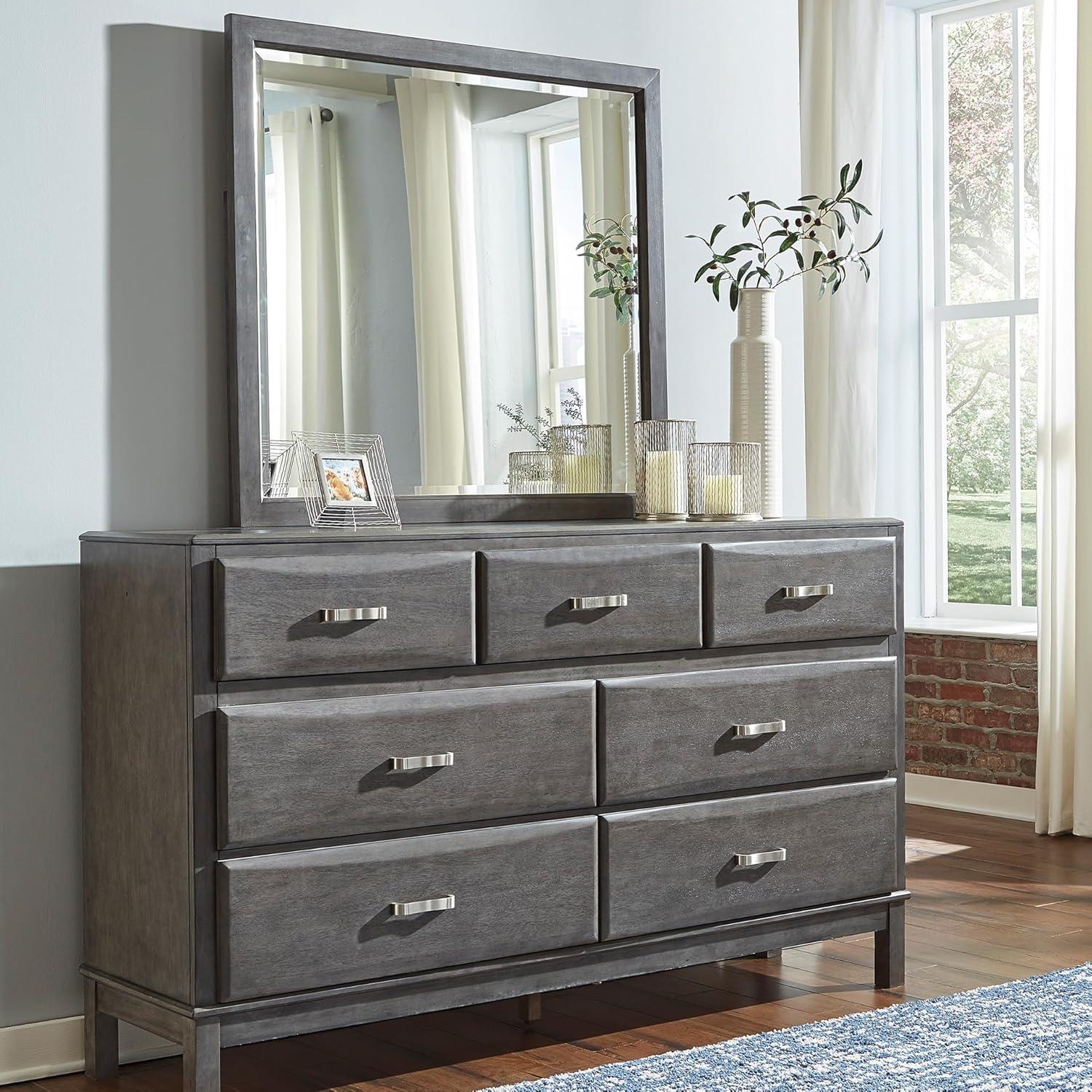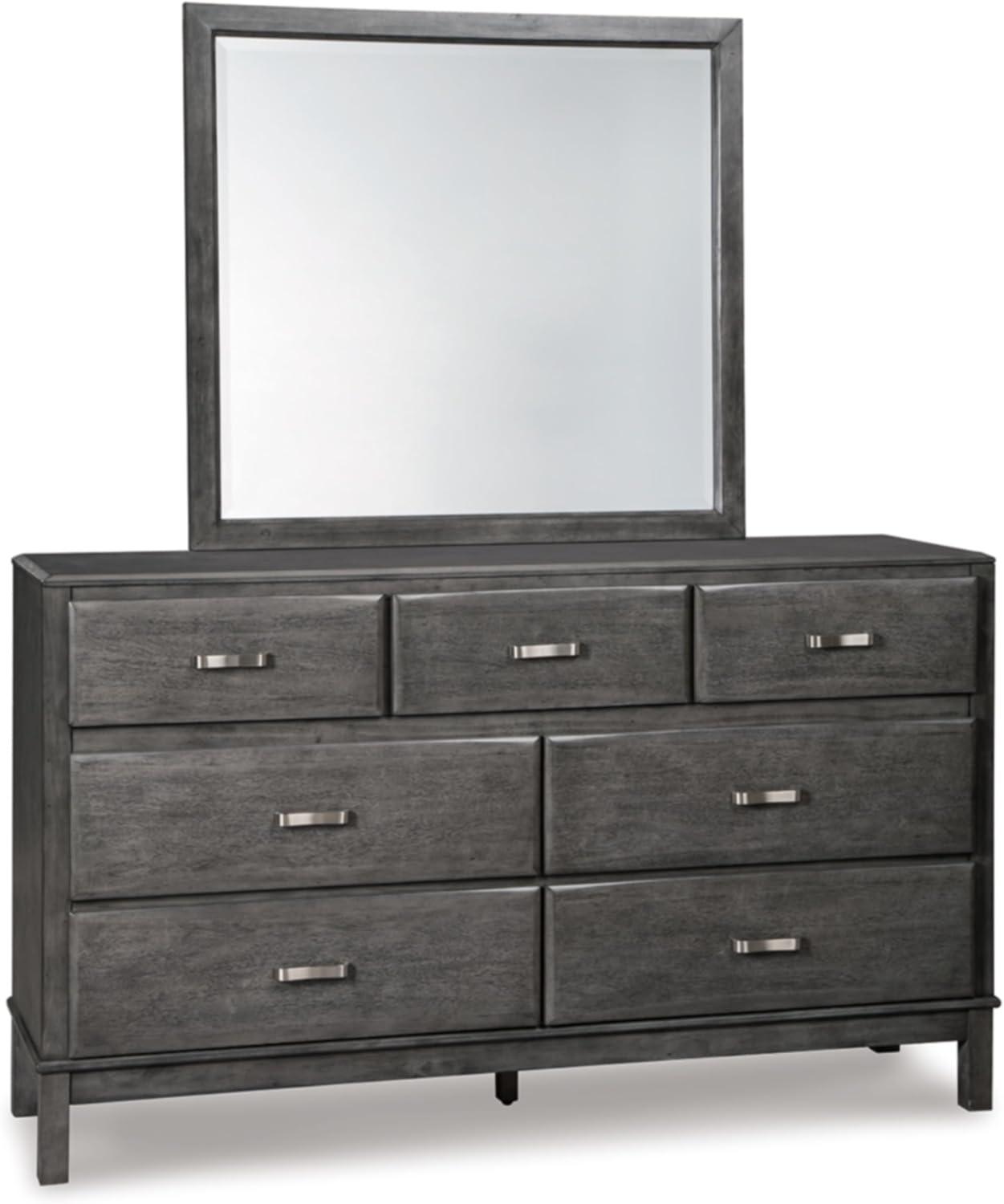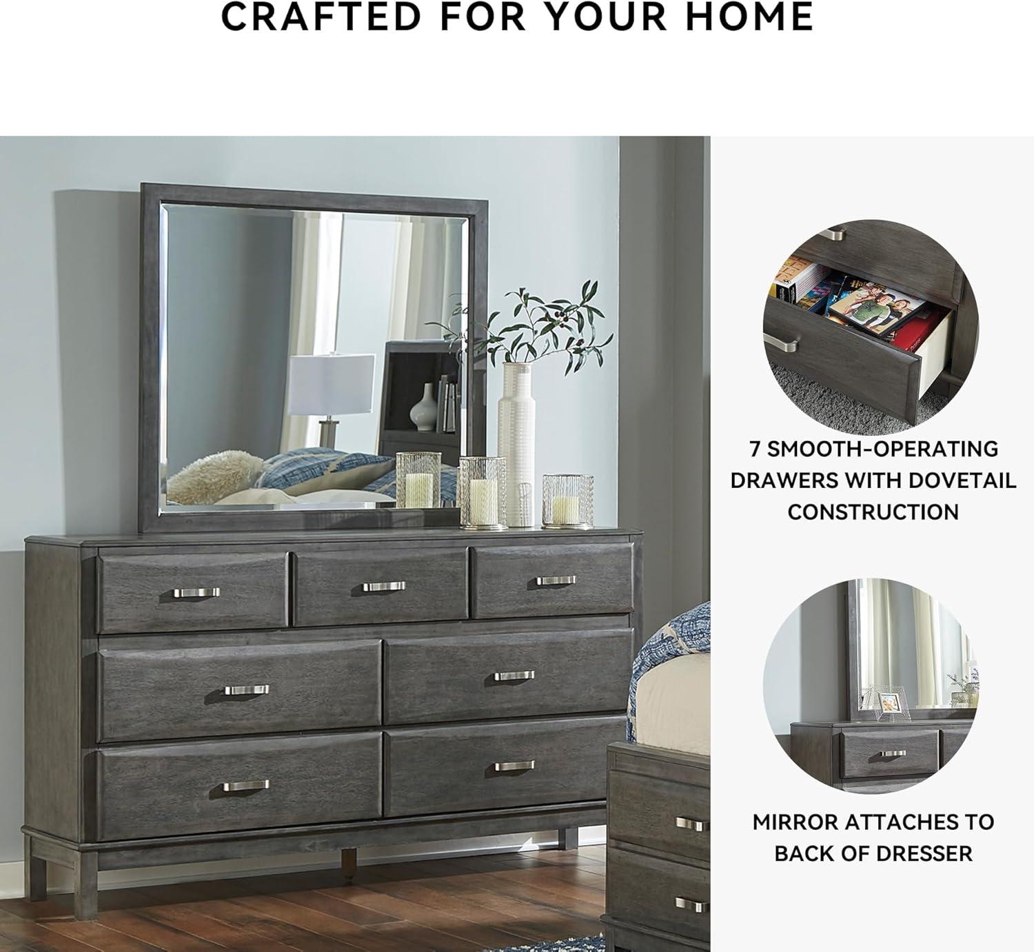 Signature Design by Ashley Caitbrook Contemporary Smooth-Gliding 7-Drawer Dresser and Mirror with Safety Stop and Felt-Lined Top Drawers, Gray(Grey)