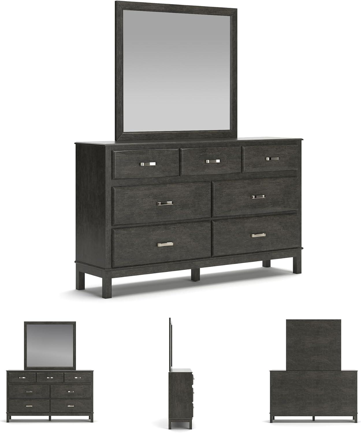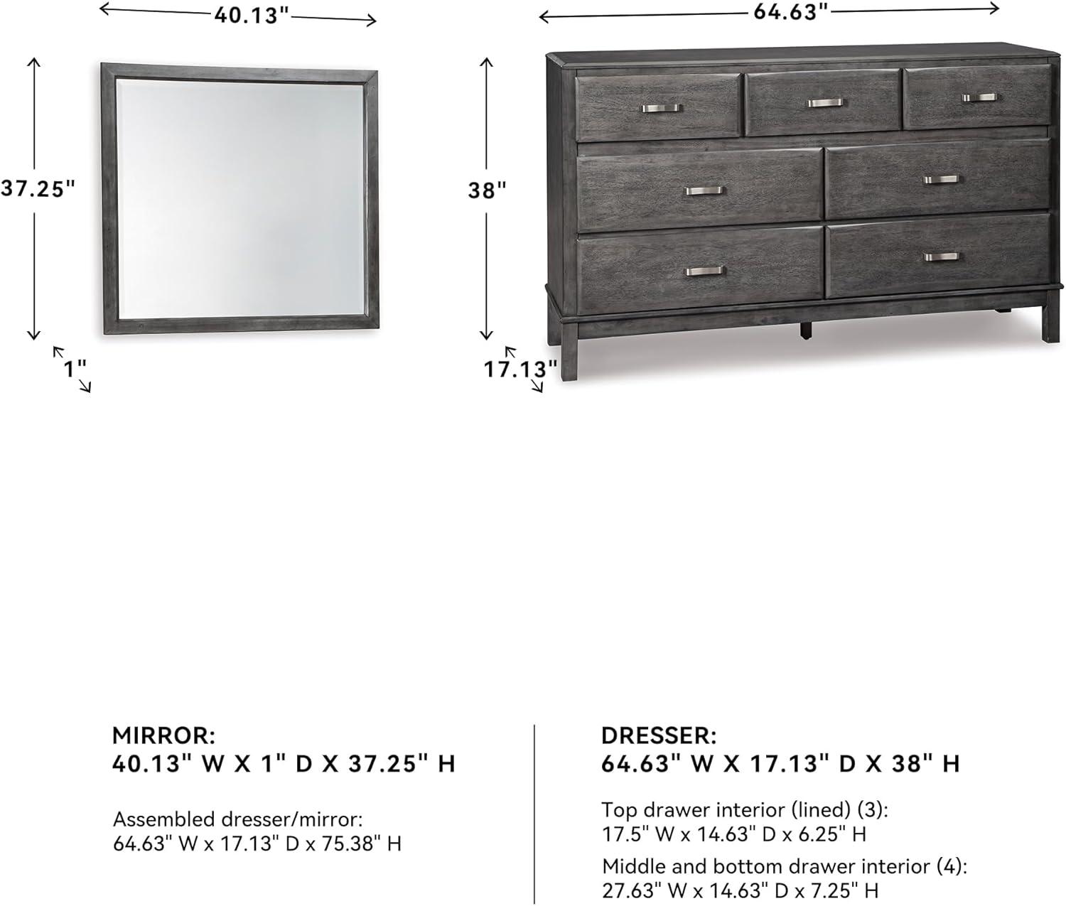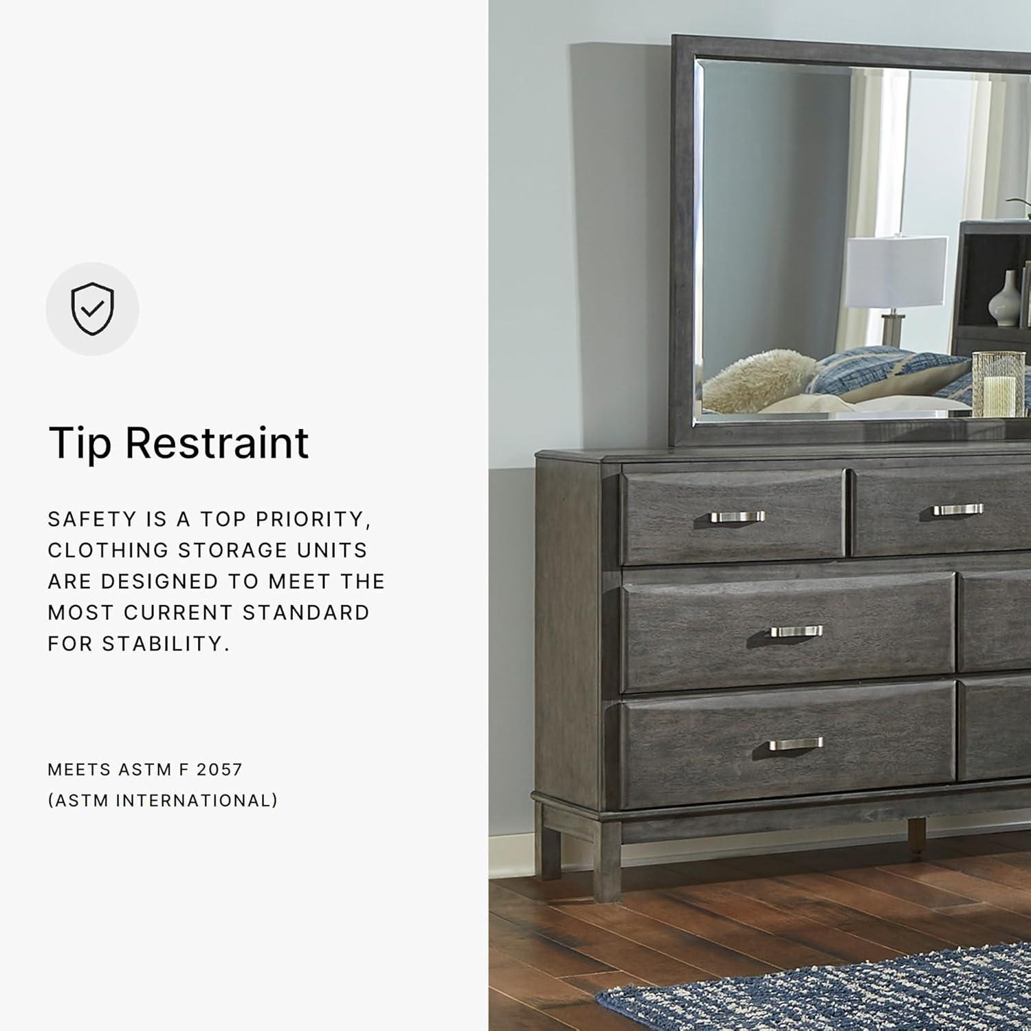 Signature Design by Ashley Caitbrook Contemporary Smooth-Gliding 7-Drawer Dresser and Mirror with Safety Stop and Felt-Lined Top Drawers, Gray(Grey)