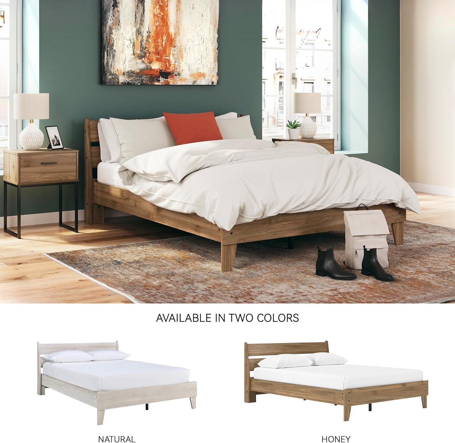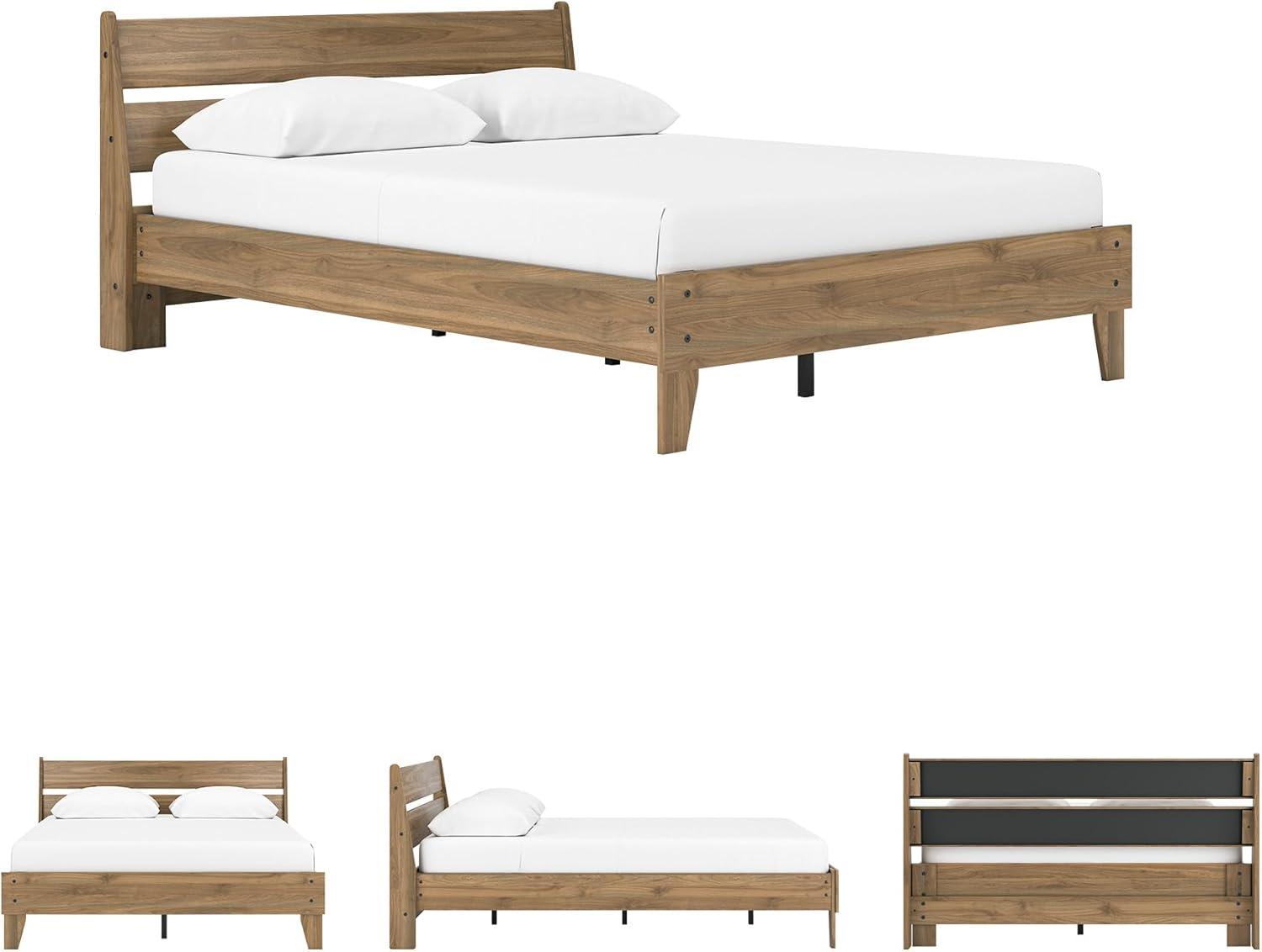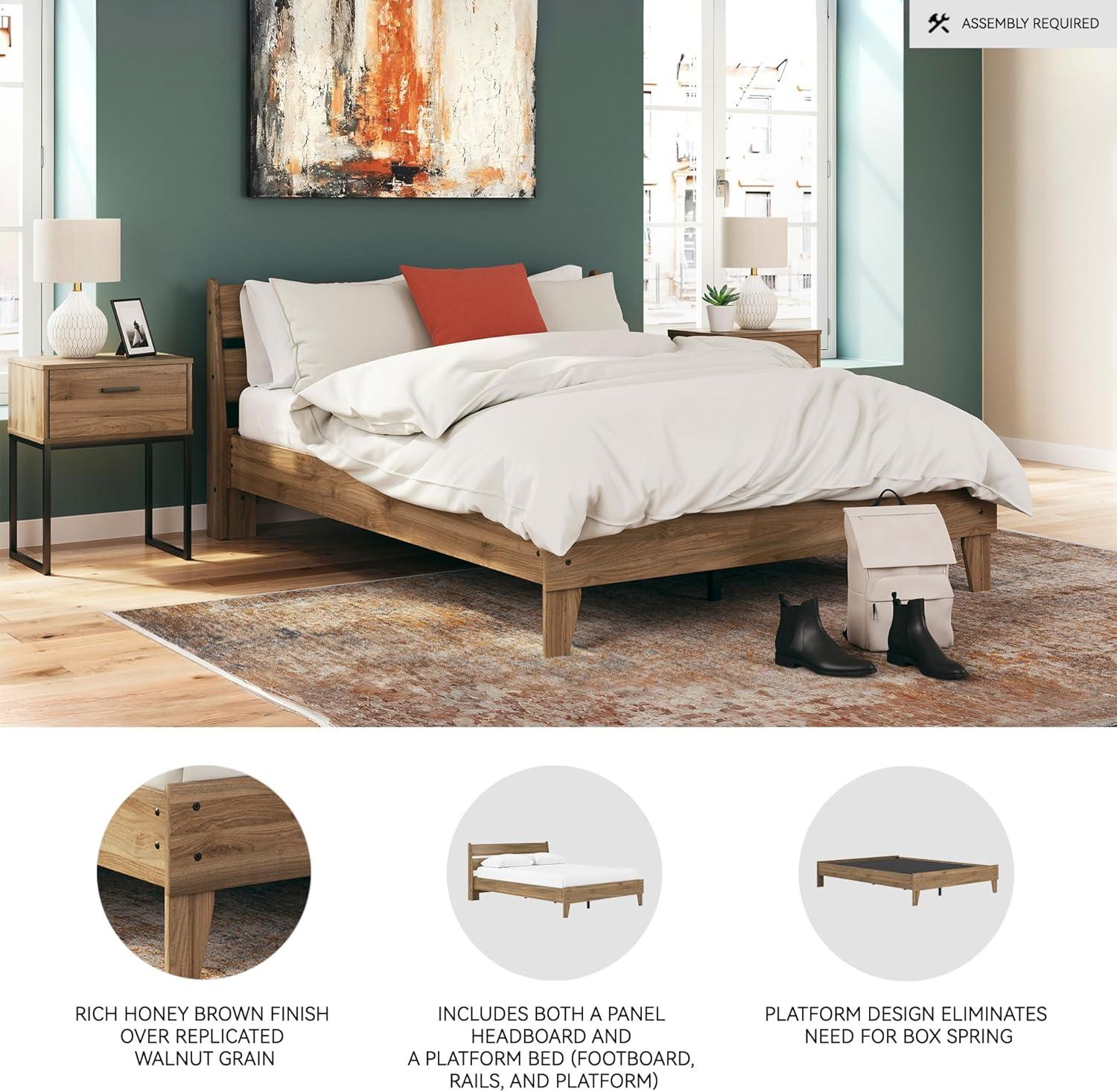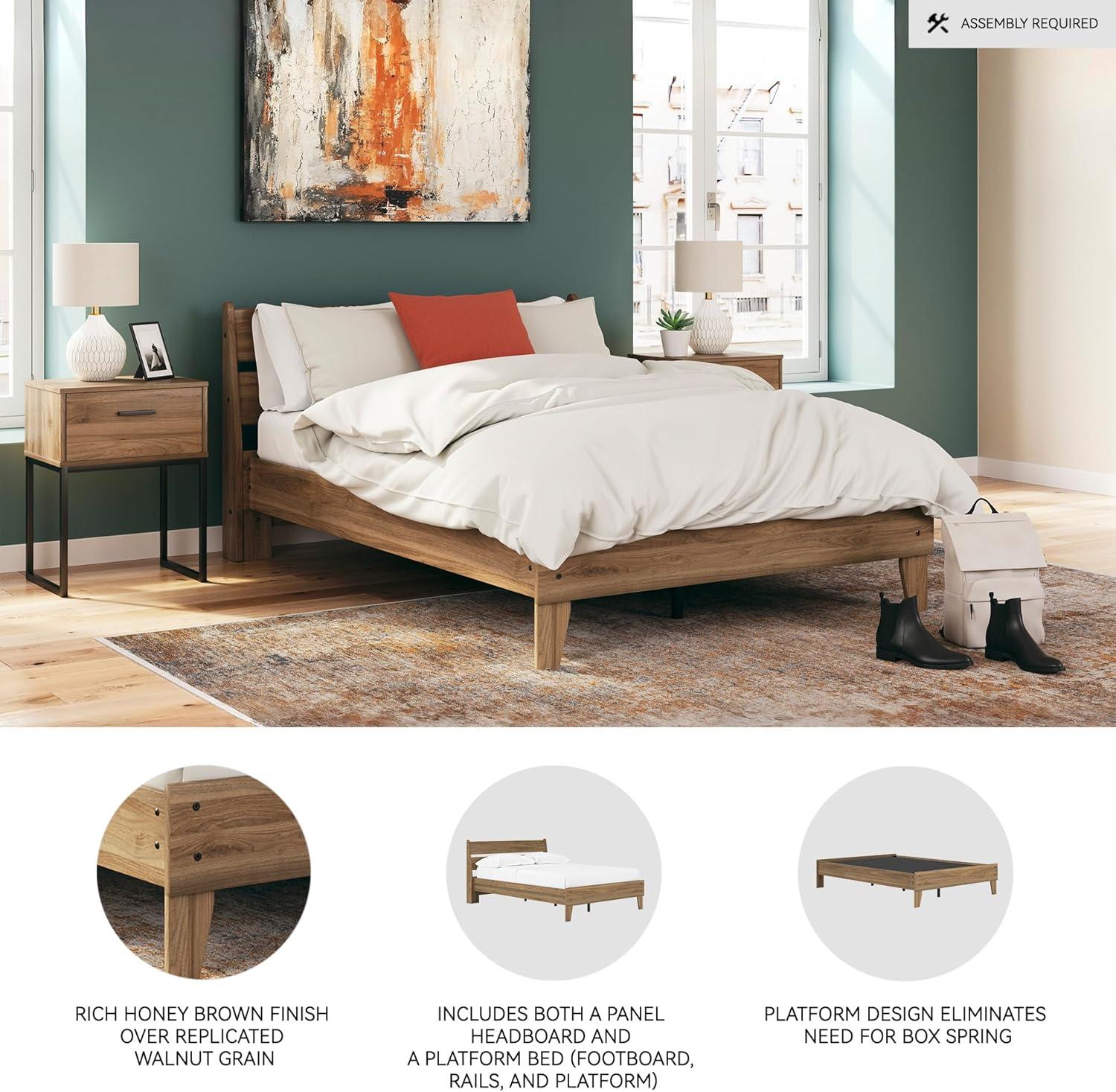 Signature Design by Ashley Calverson Modern Platform Bed, Foundation or Box Spring Not Needed, King, Dark Brown(Honey Brown)