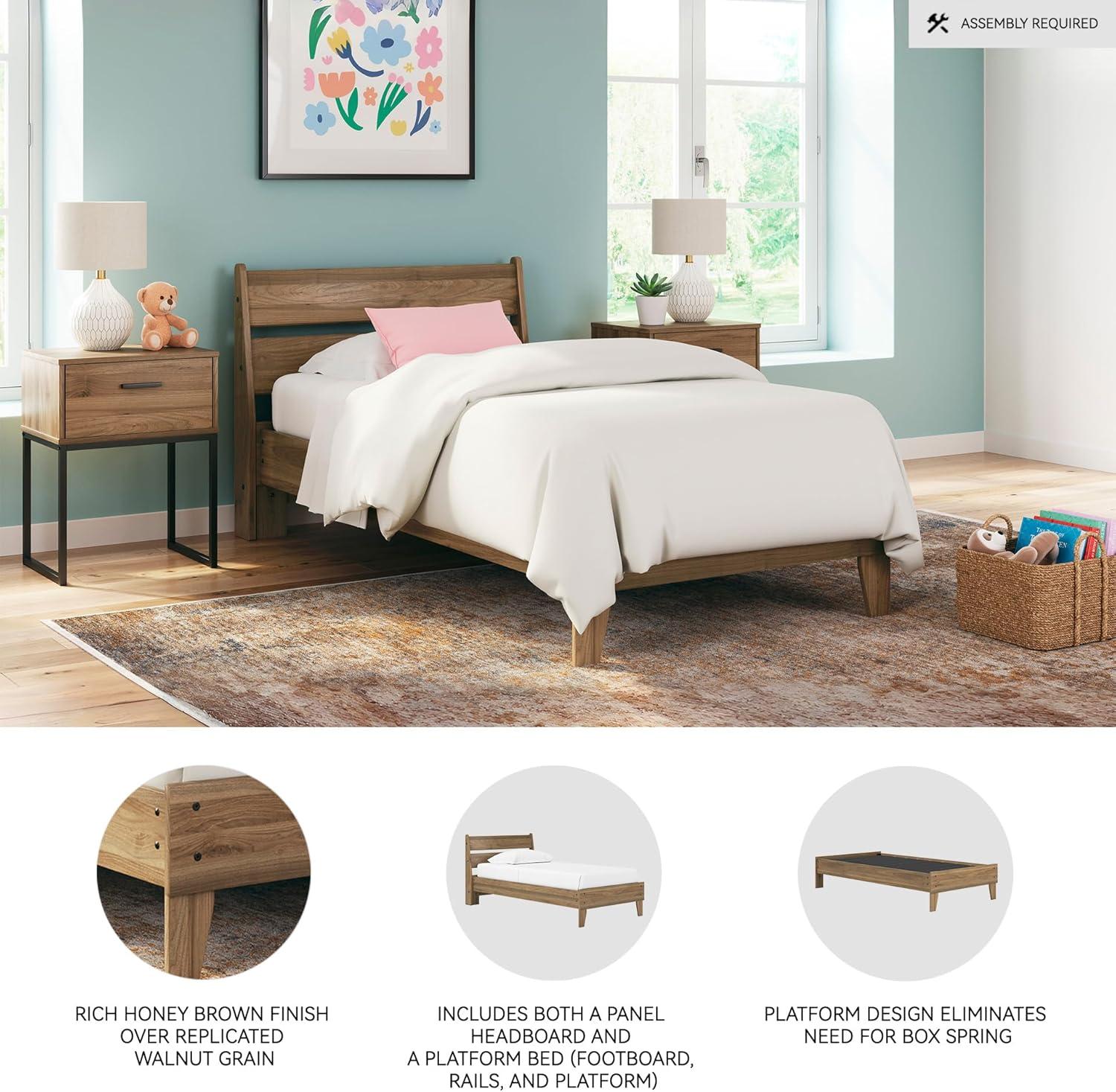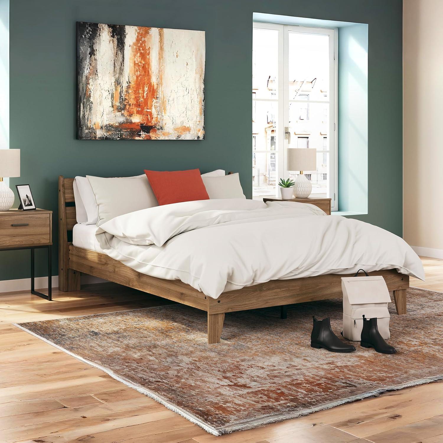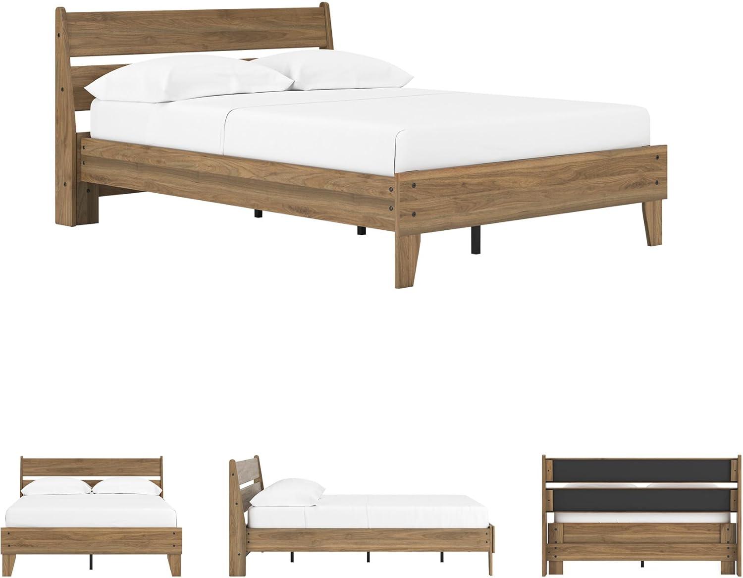 Signature Design by Ashley Calverson Modern Platform Bed, Foundation or Box Spring Not Needed, King, Dark Brown(Honey Brown)